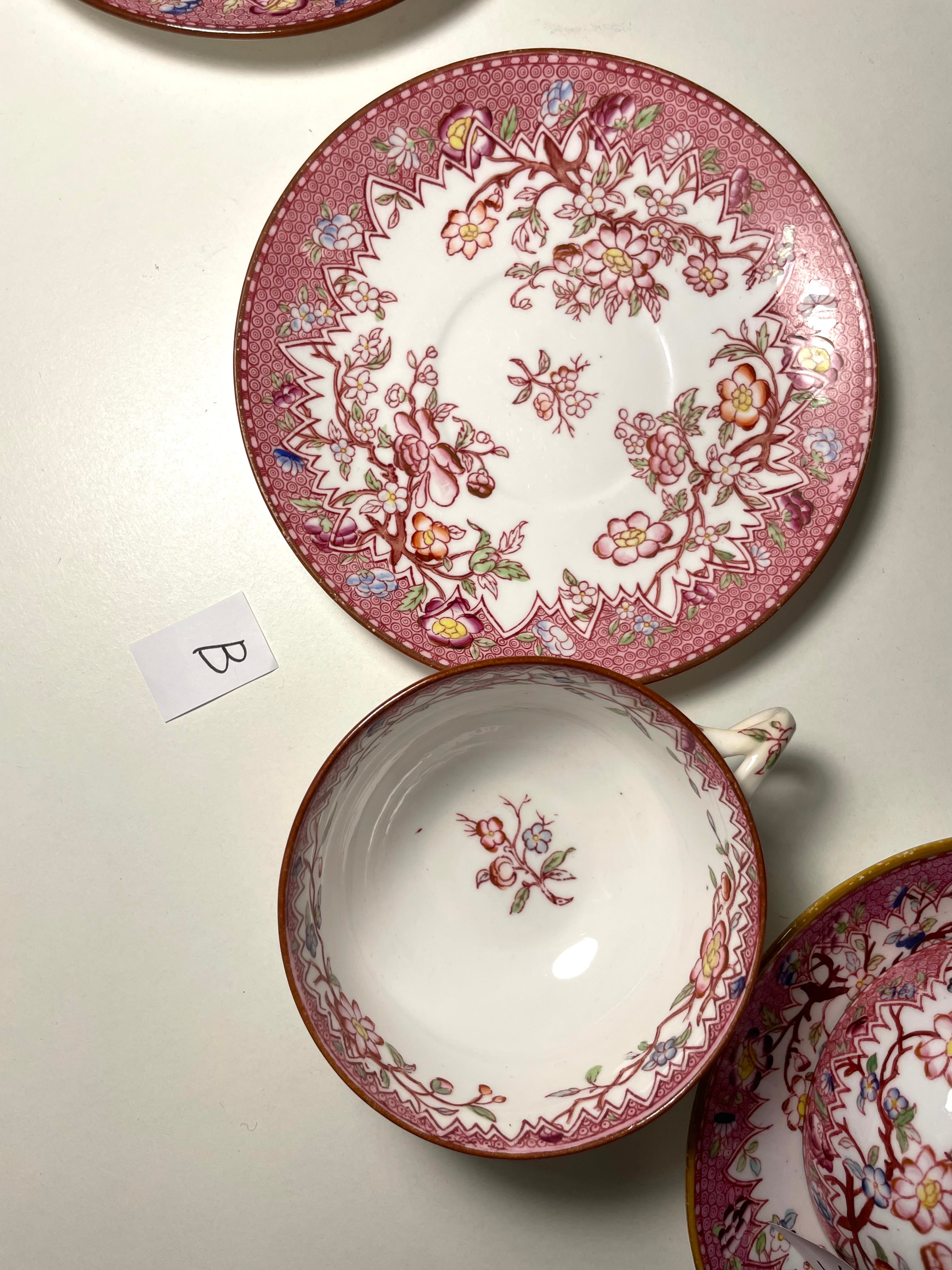 B ソーサーは絵付けが他に比べるとやや薄い様です。ヒビや欠け、使用感のない艶やかな、非常に良い状態です。カップ持ち手部分が、ごく薄く変色している様です。