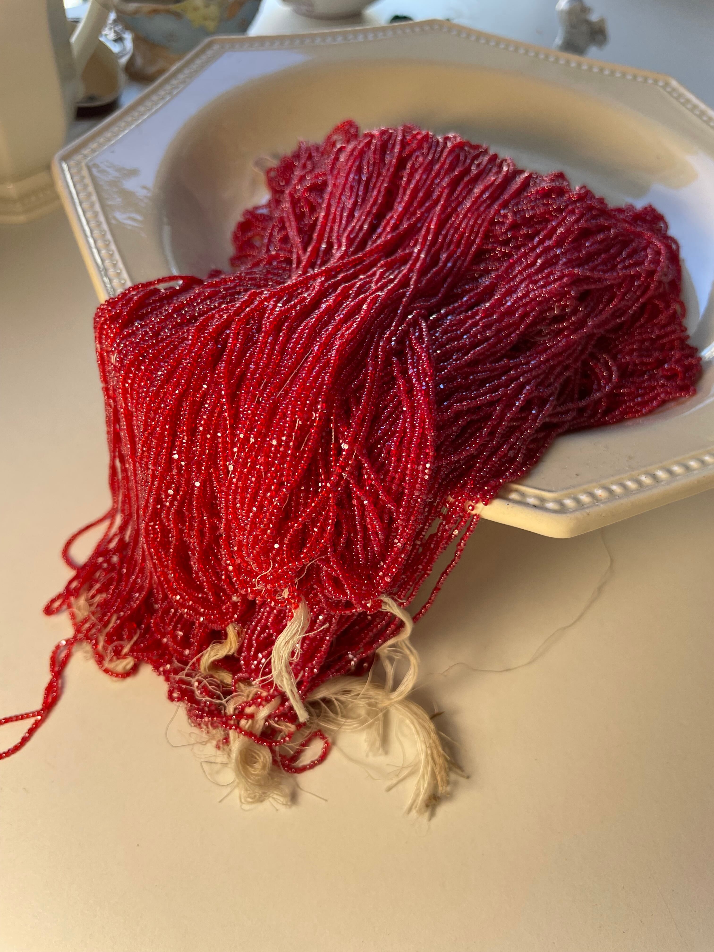 ビーズはその時のデッドストックということです。何十年も倉庫に眠っていたものとの事です。