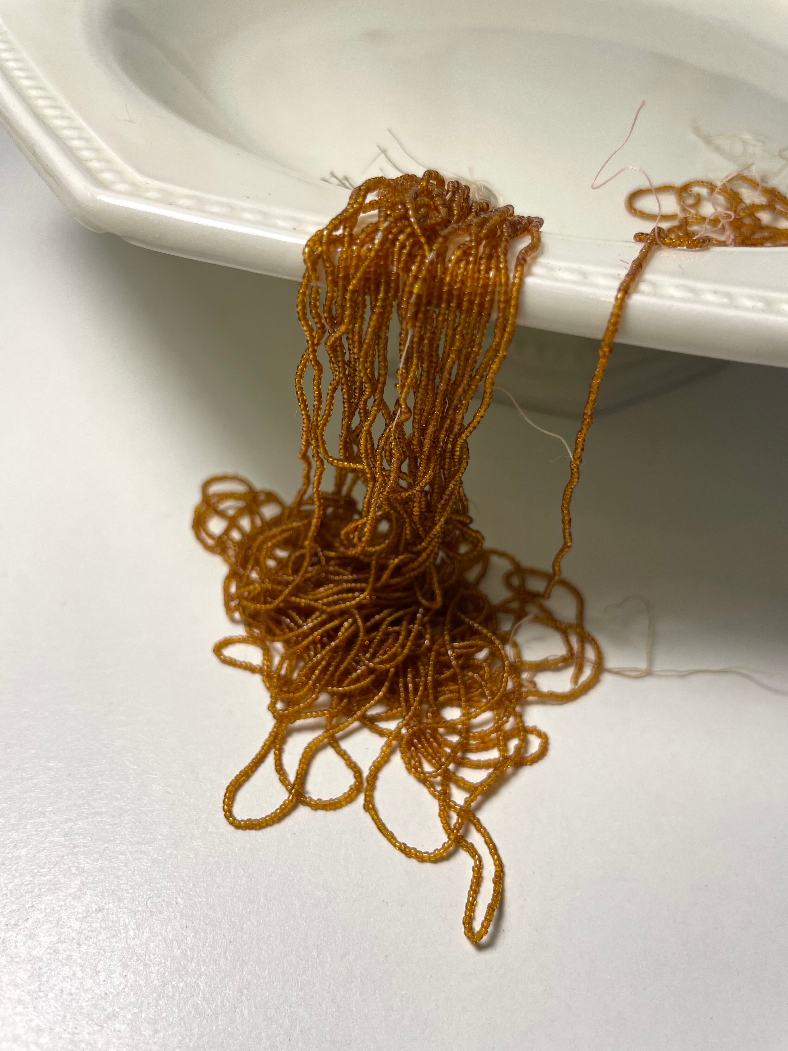 ビーズはその時のデッドストックということです。何十年も倉庫に眠っていたものとの事です。