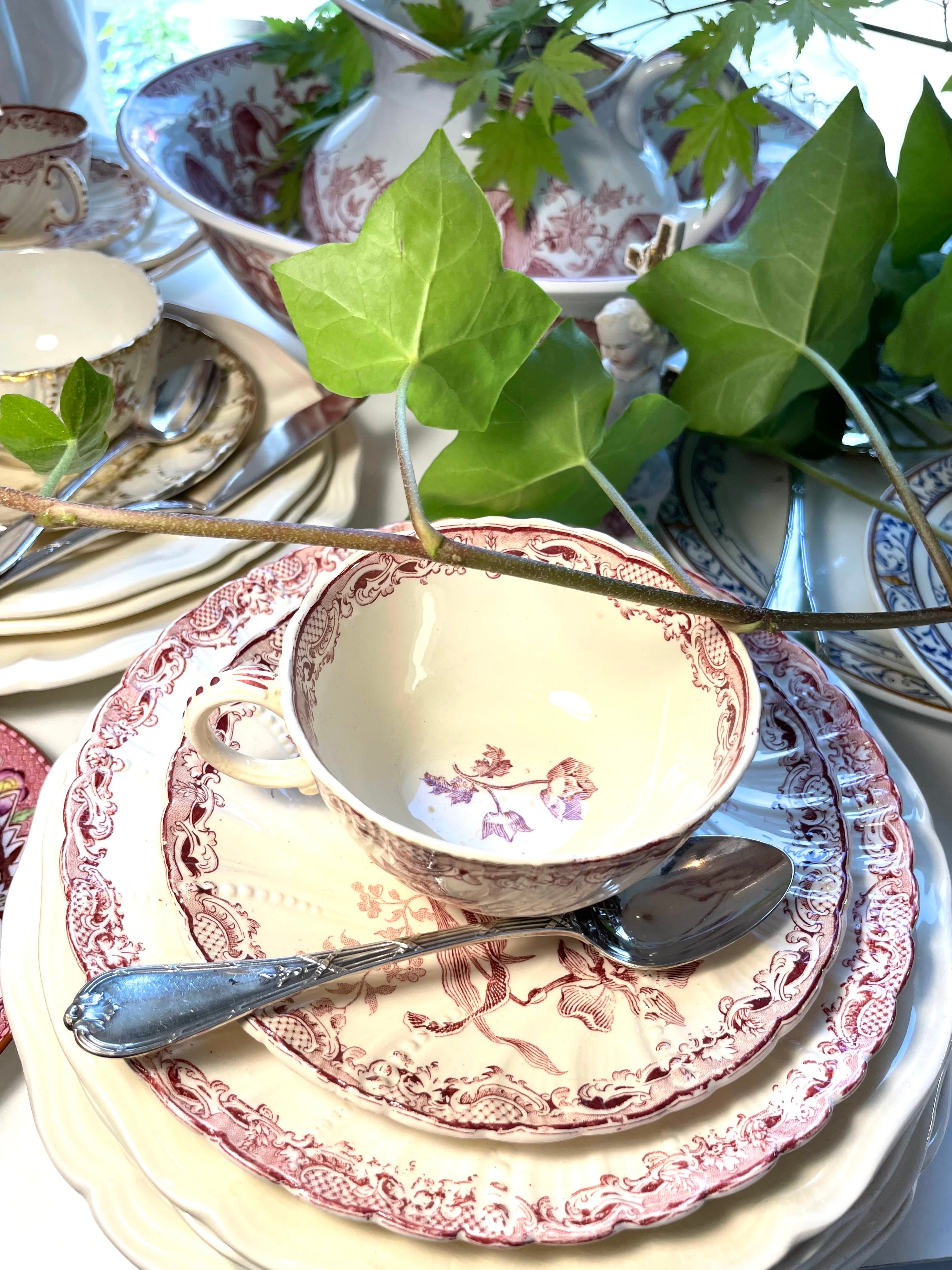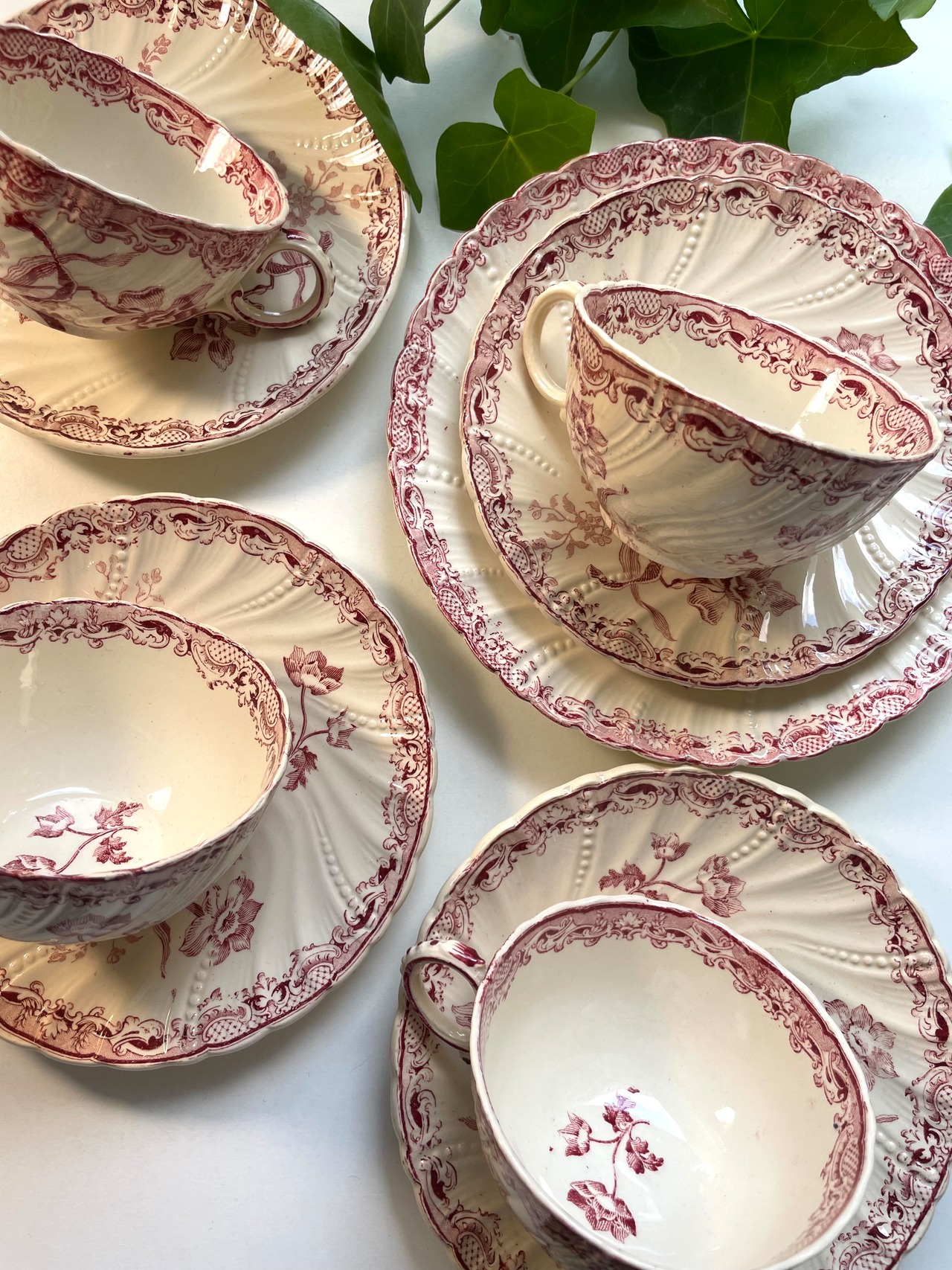 サルグミンヌ製「FONTANGES」シリーズのアンティークティーカップとソーサーセット3客の入荷です。