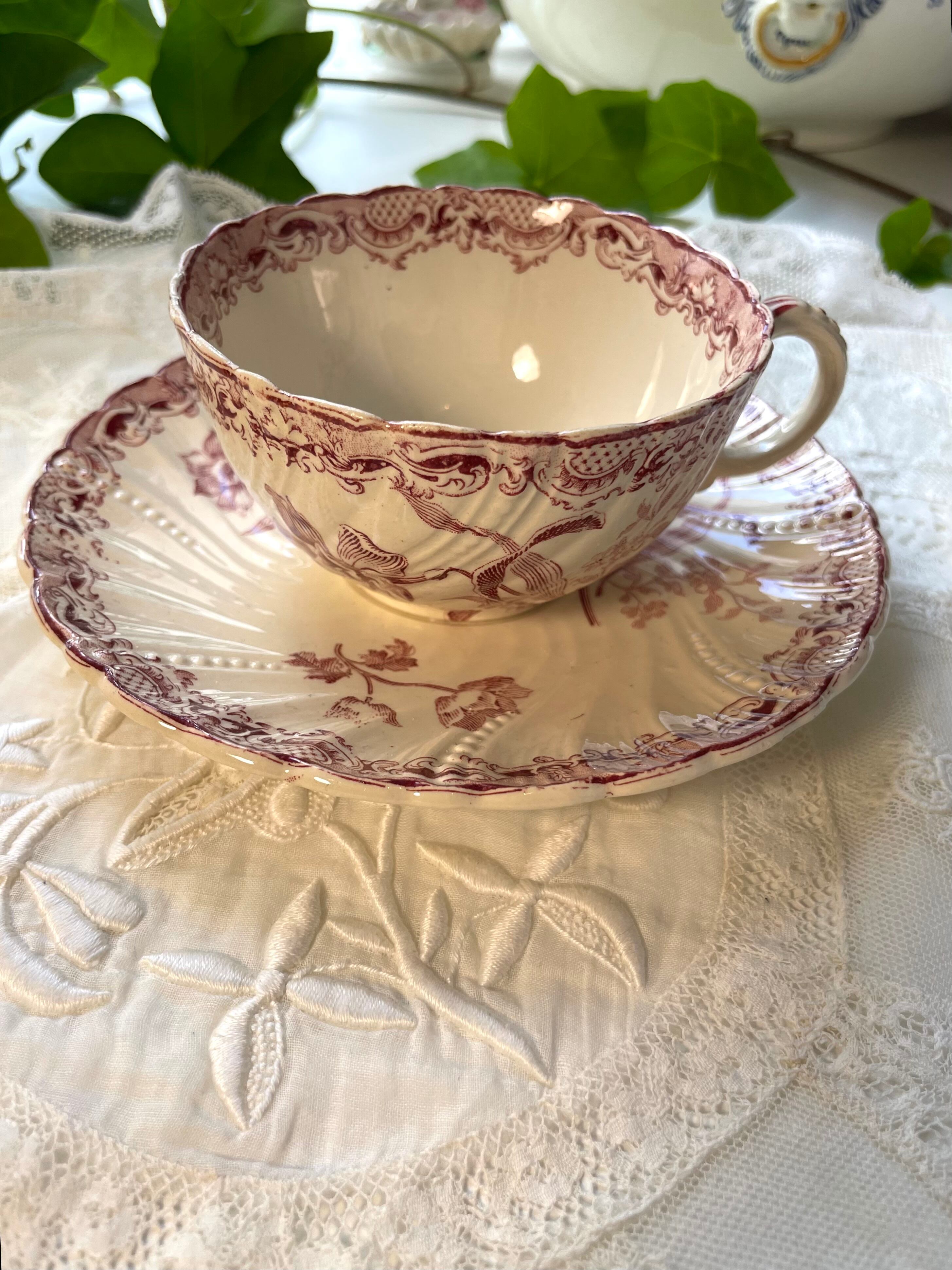 ref : 2134 アンティーク・ティーカップ&ソーサー Sarreguemines FONTANGES