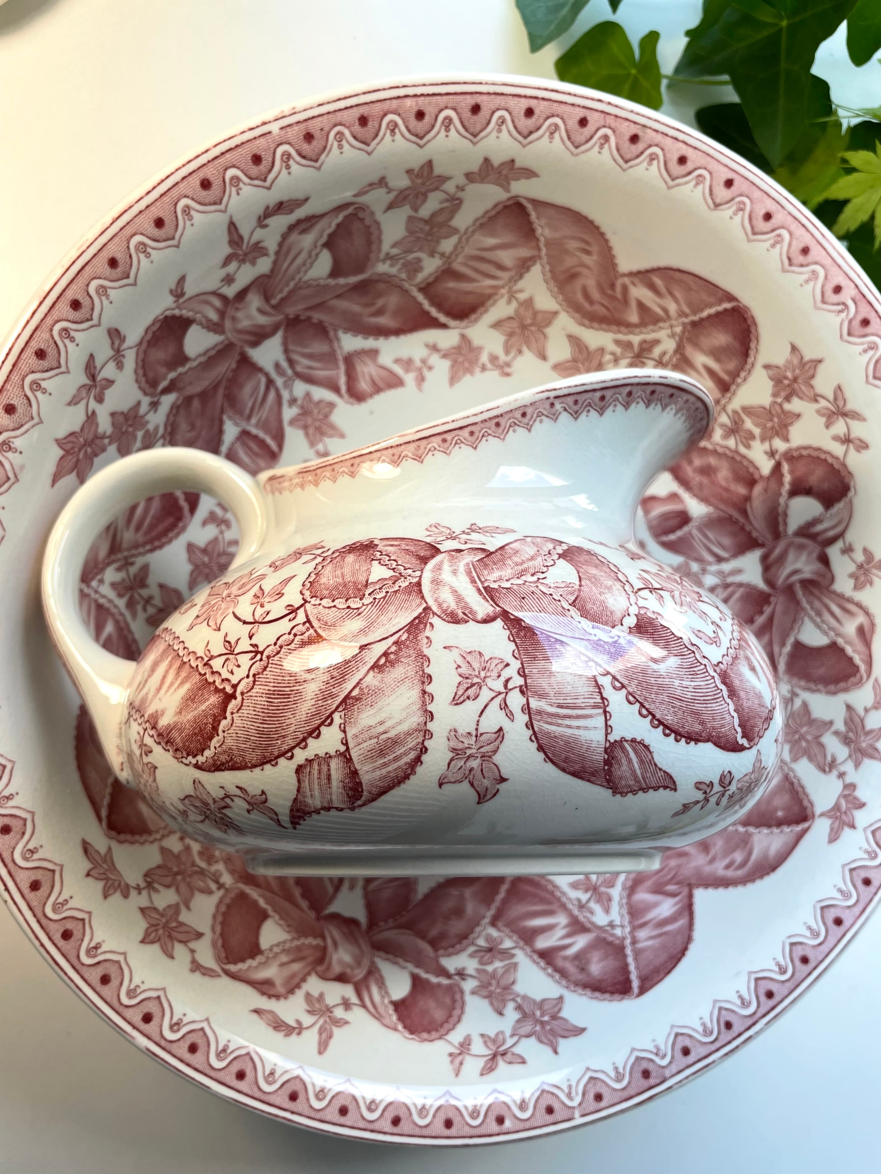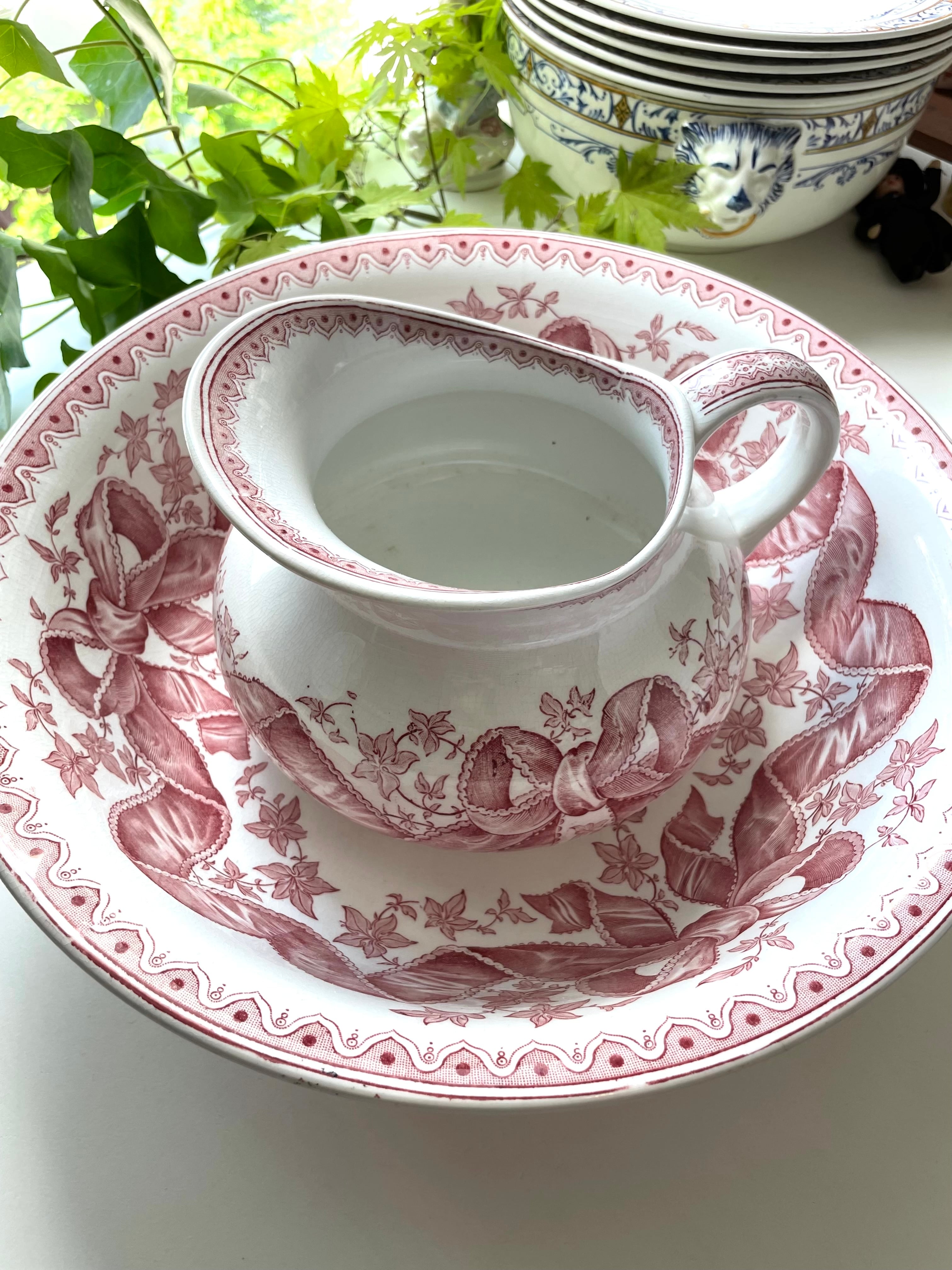 ref : 2136 アンティーク・Sarreguemines ROSETTE ピシェとベイスンセット