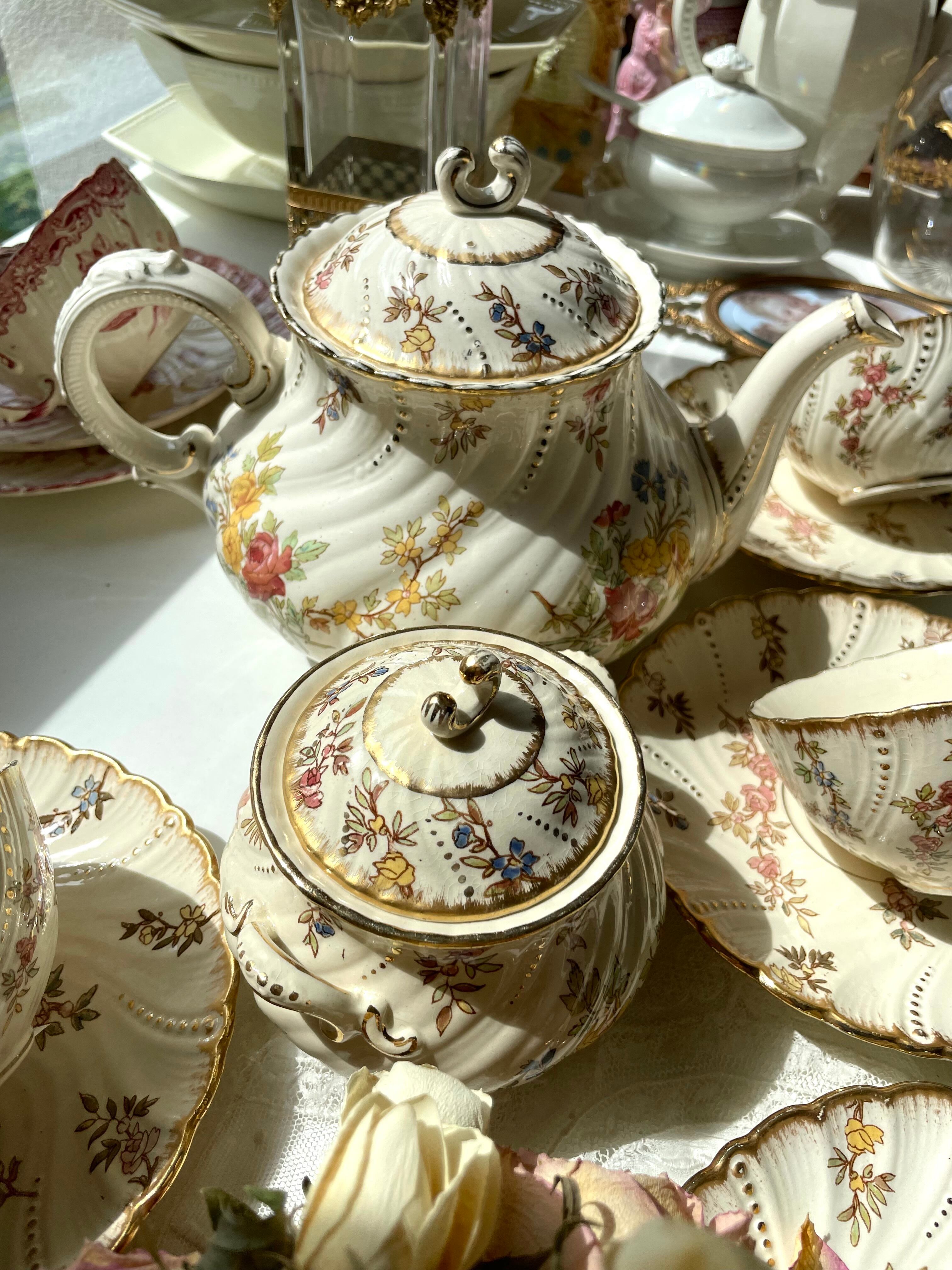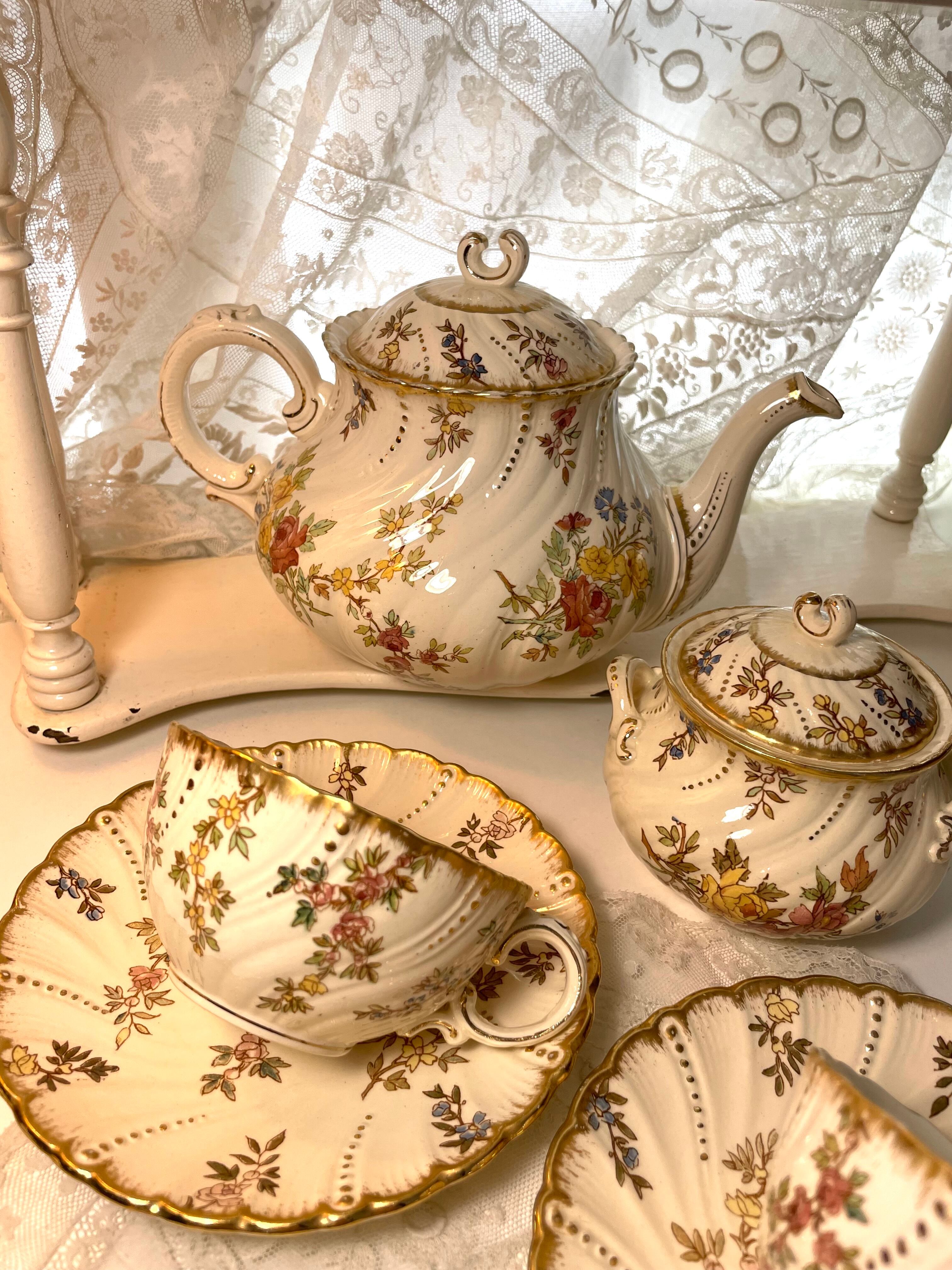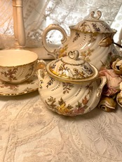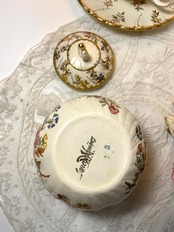 金色の縁取りが煌びやかで、またレリーフも繊細で美しい逸品です。色使いもあたたかで、淡いパステルカラーが多用された"ロココ"スタイルを表しています。可愛らしく女性的で繊細優美な雰囲気は、フランスの貴婦人たちに愛されたルイ15世のスタイルです。