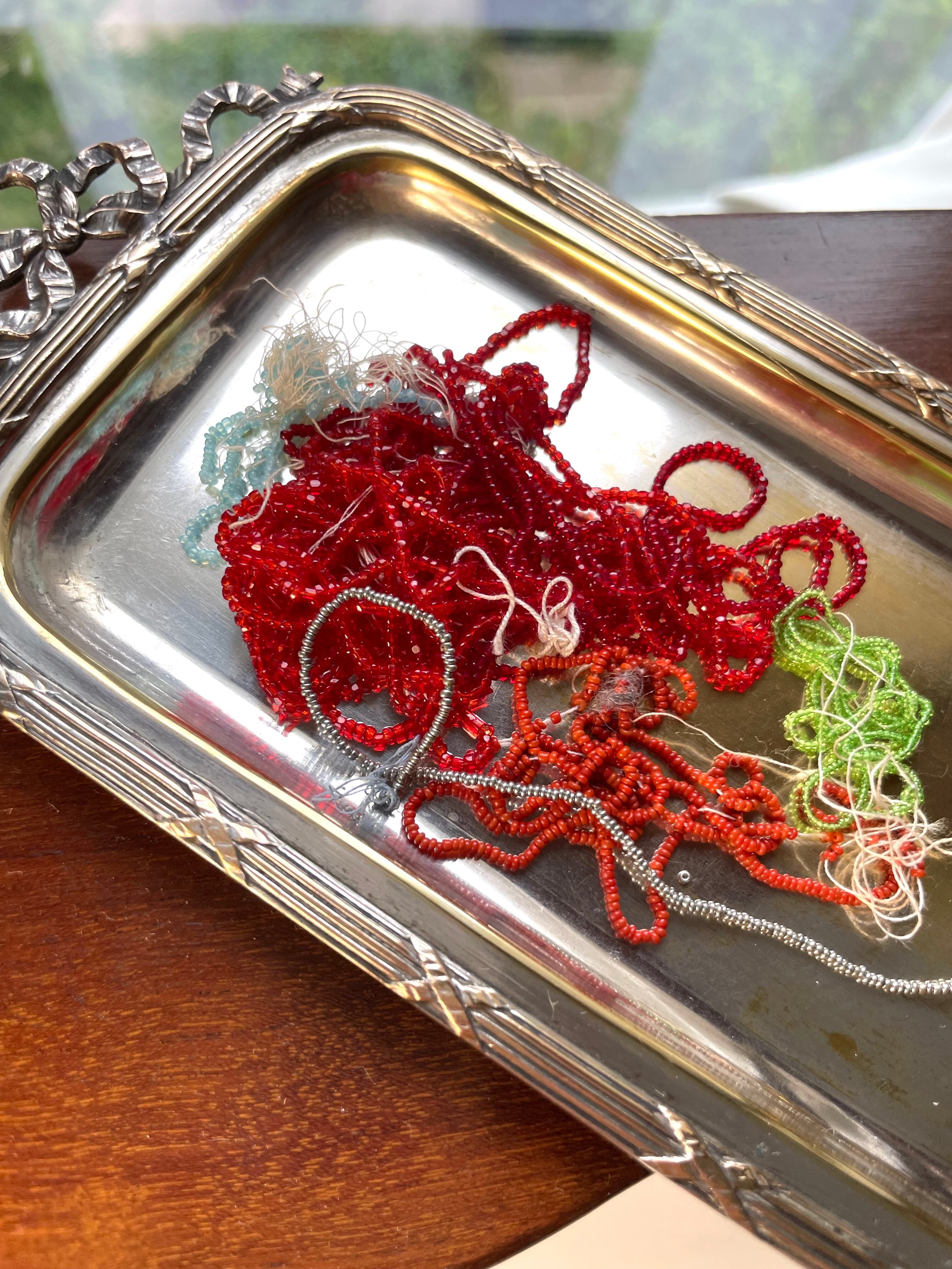 ビーズはその時のデッドストックということです。何十年も倉庫に眠っていたものとの事です。