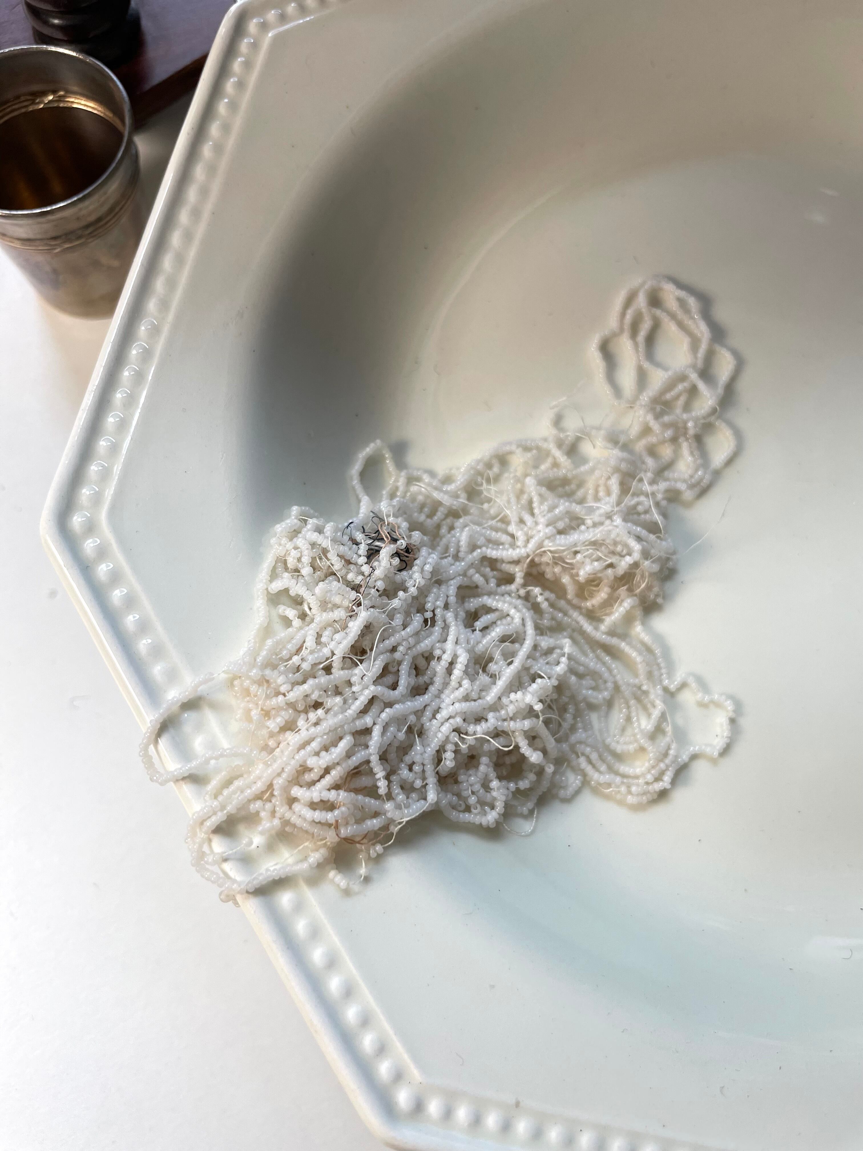 ビーズはその時のデッドストックということです。何十年も倉庫に眠っていたものとの事です。