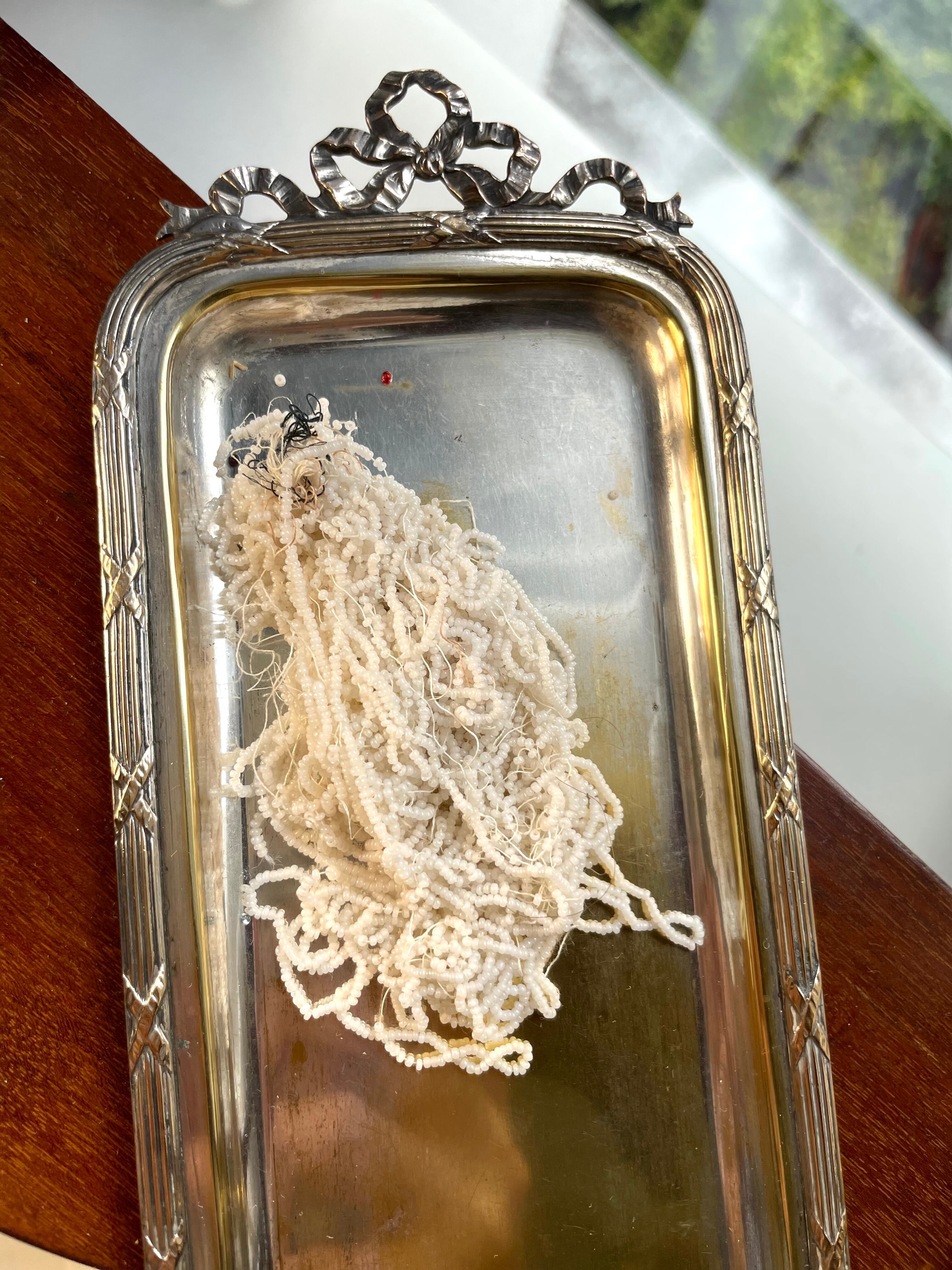 当時、マダムの叔母様が当時ガラスシードビーズを使用した刺繍装飾バッグの