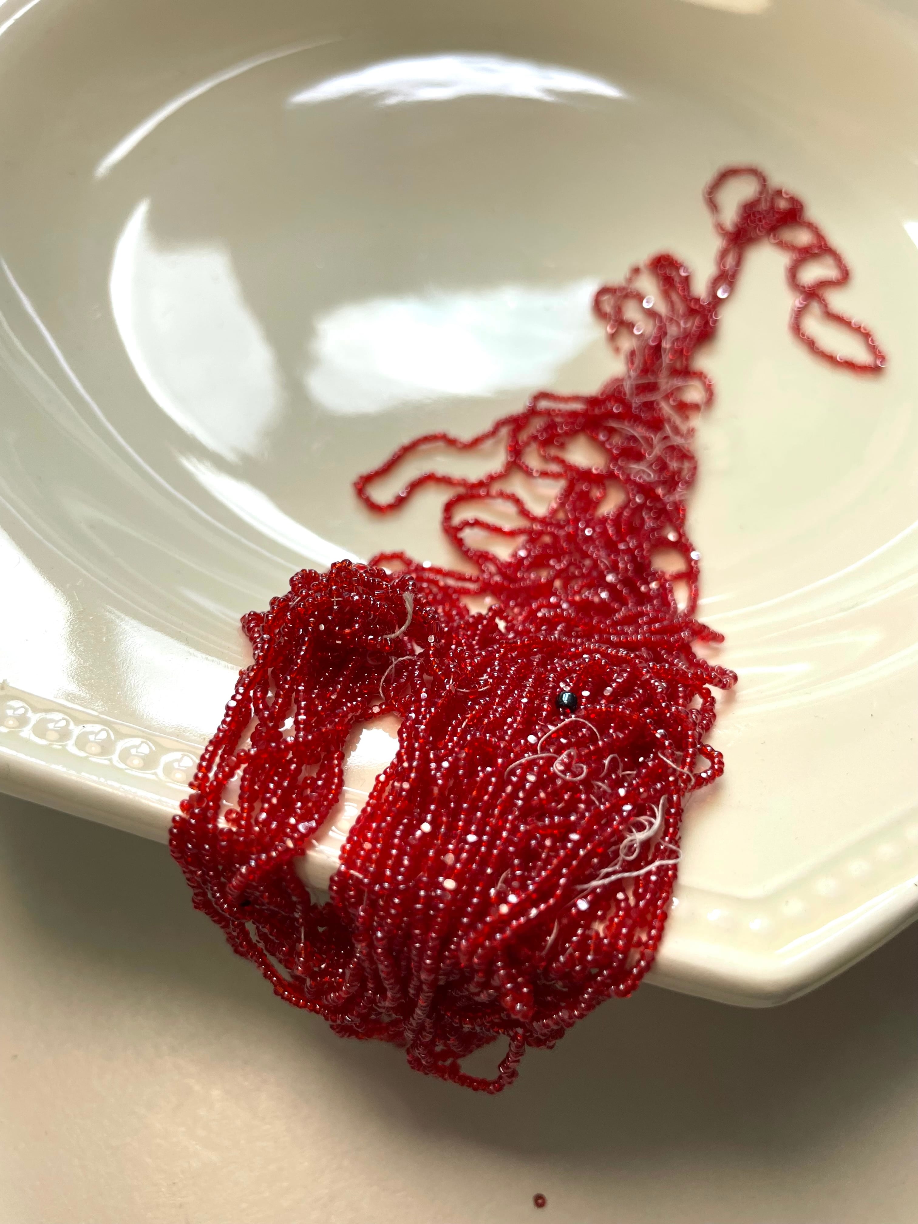 ビーズはその時のデッドストックということです。何十年も倉庫に眠っていたものとの事です。