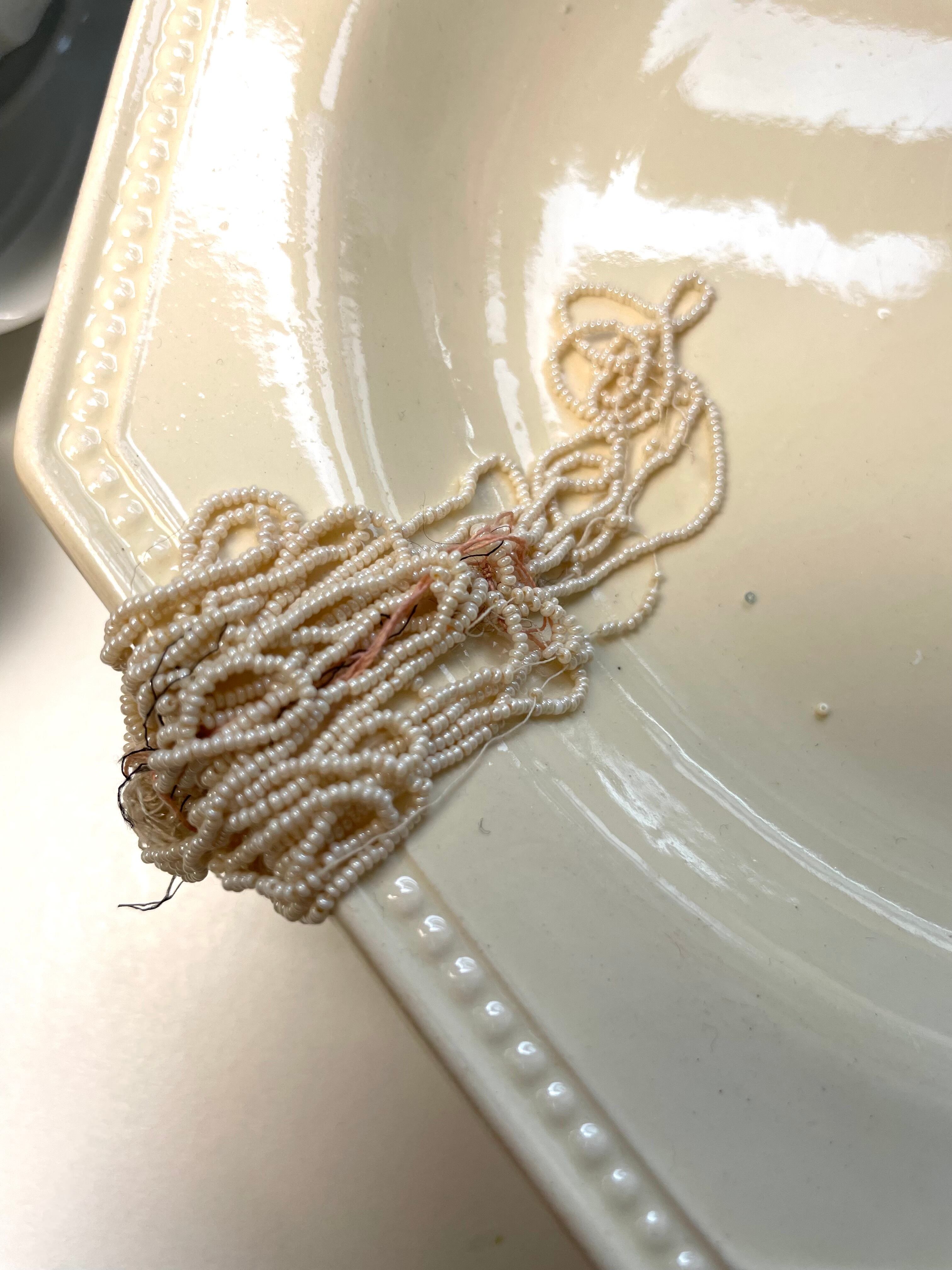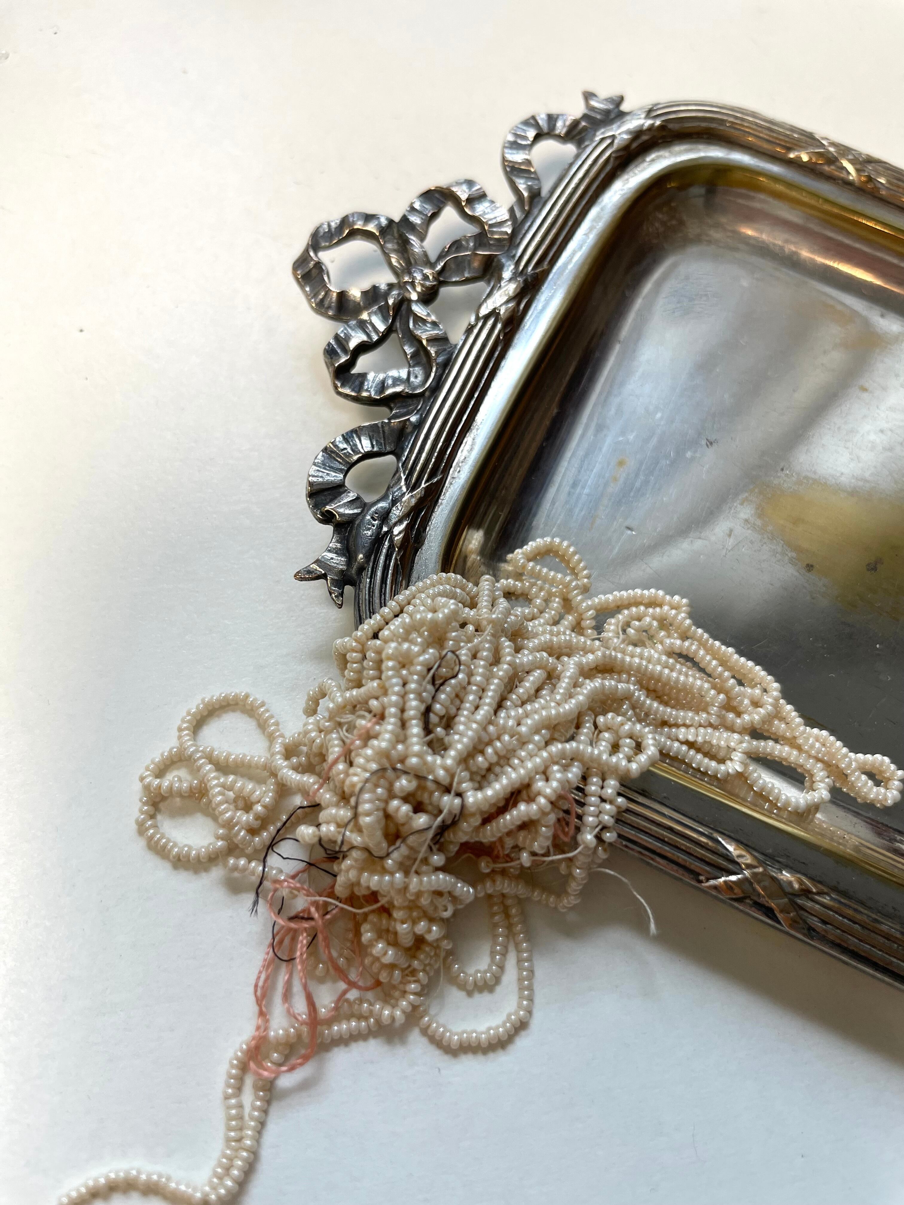 当時、マダムの叔母様が当時ガラスシードビーズを使用した刺繍装飾バッグの