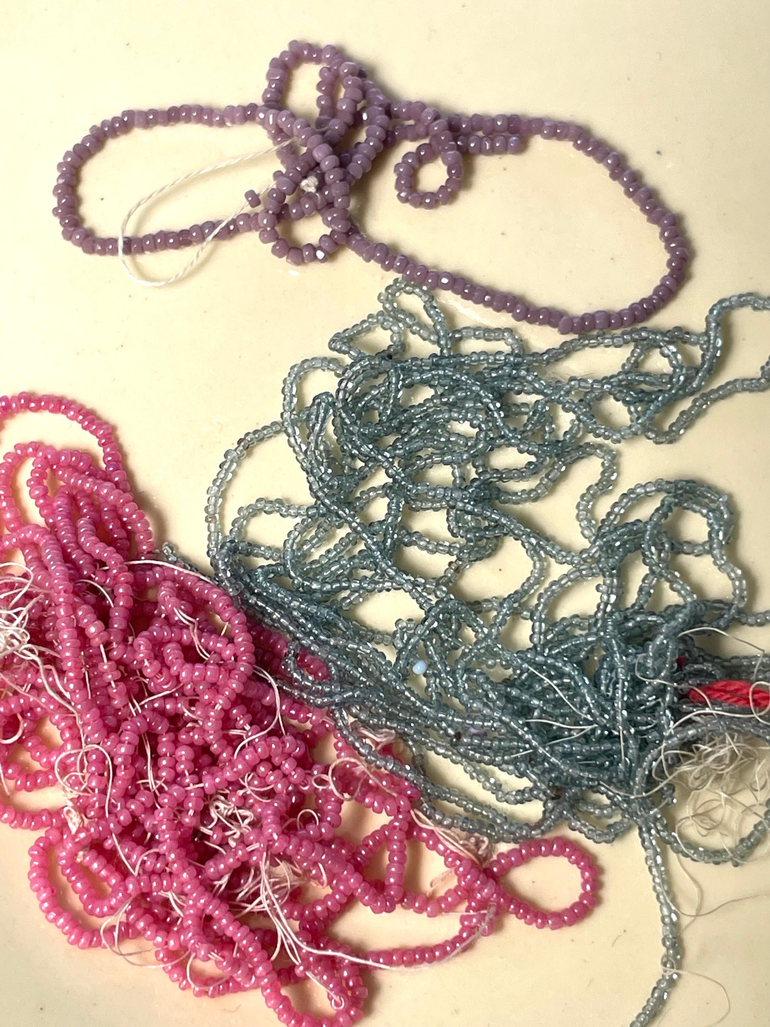 ビーズはその時のデッドストックということです。何十年も倉庫に眠っていたものとの事です。
