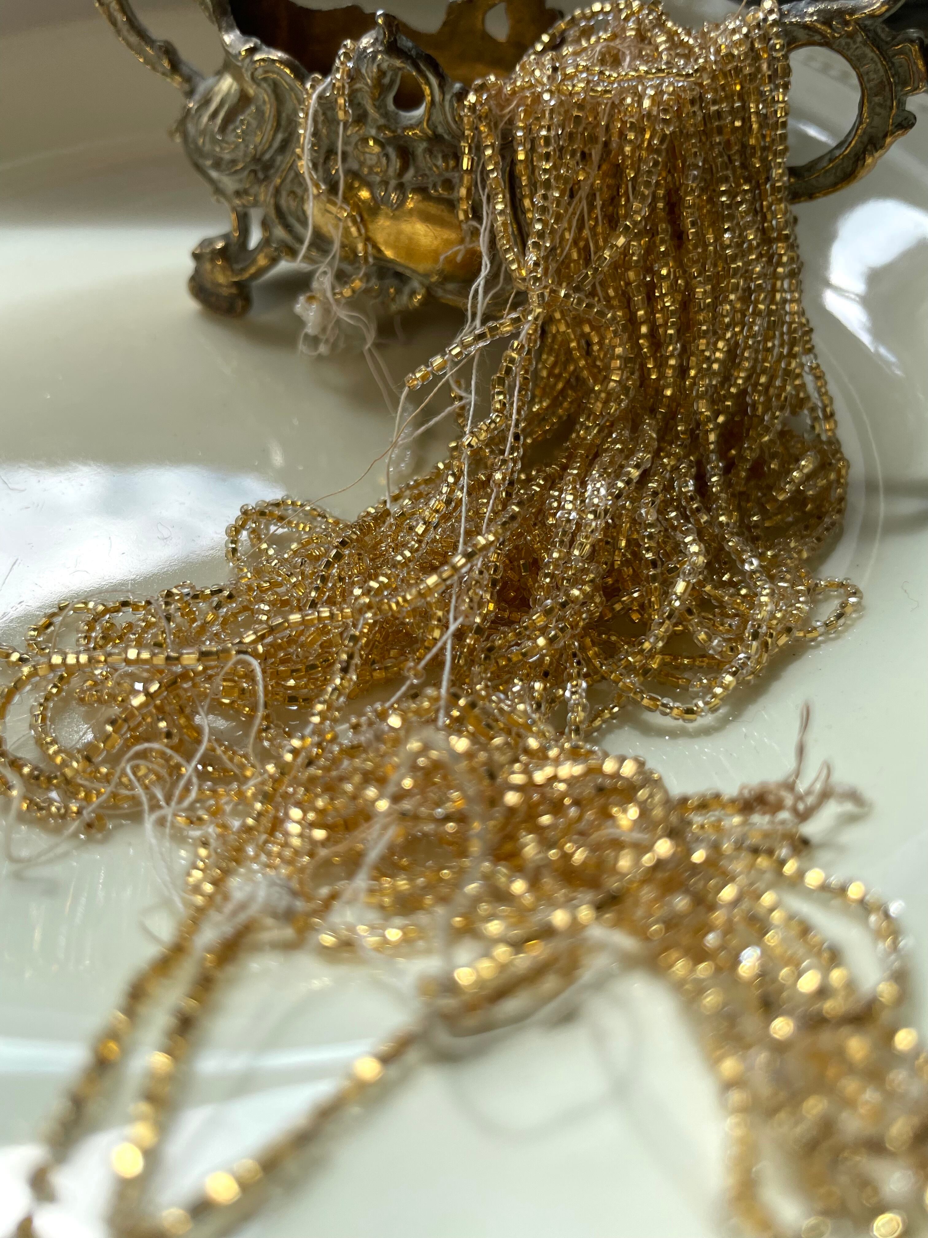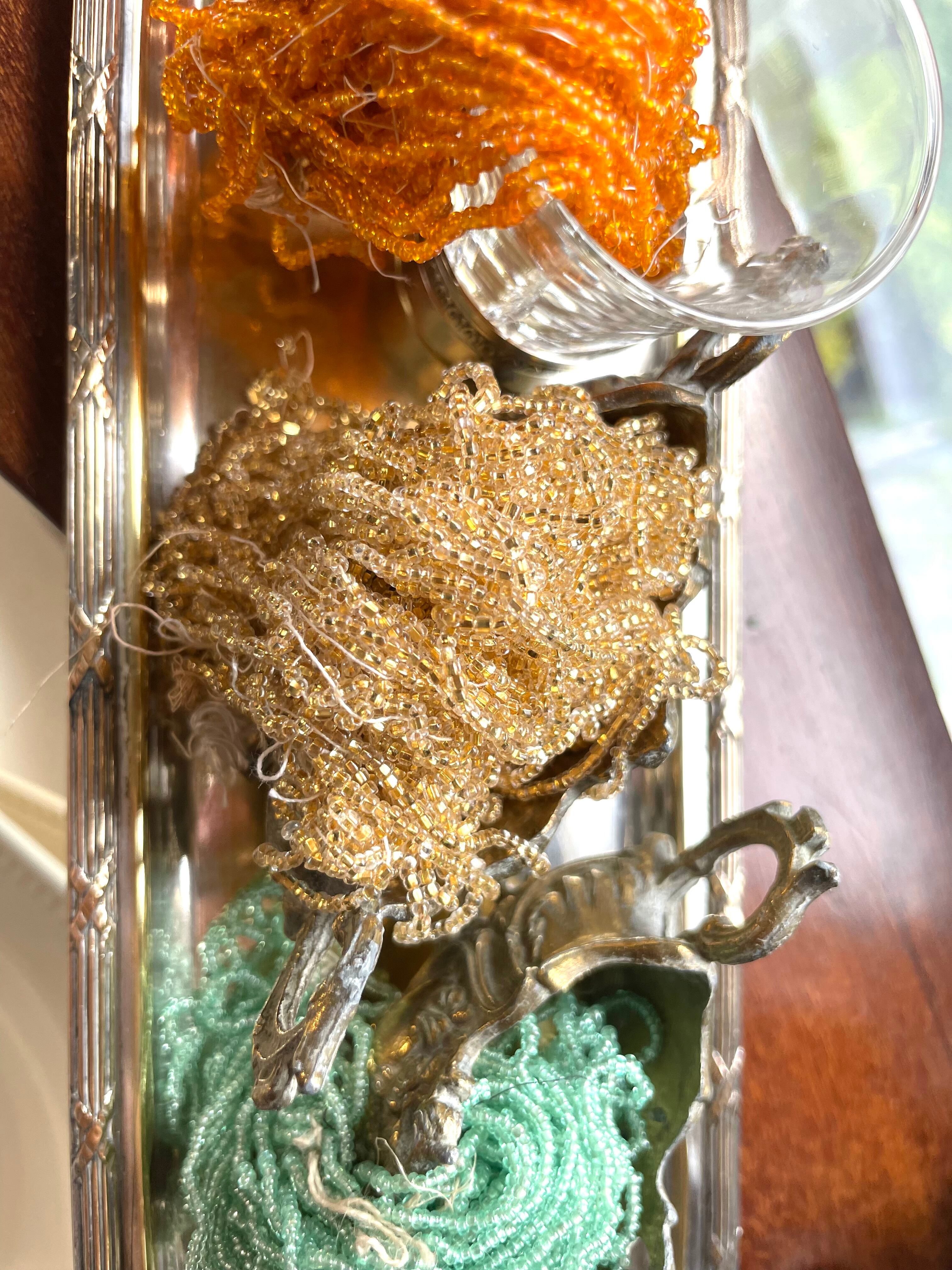 ビーズはその時のデッドストックということです。何十年も倉庫に眠っていたものとの事です。