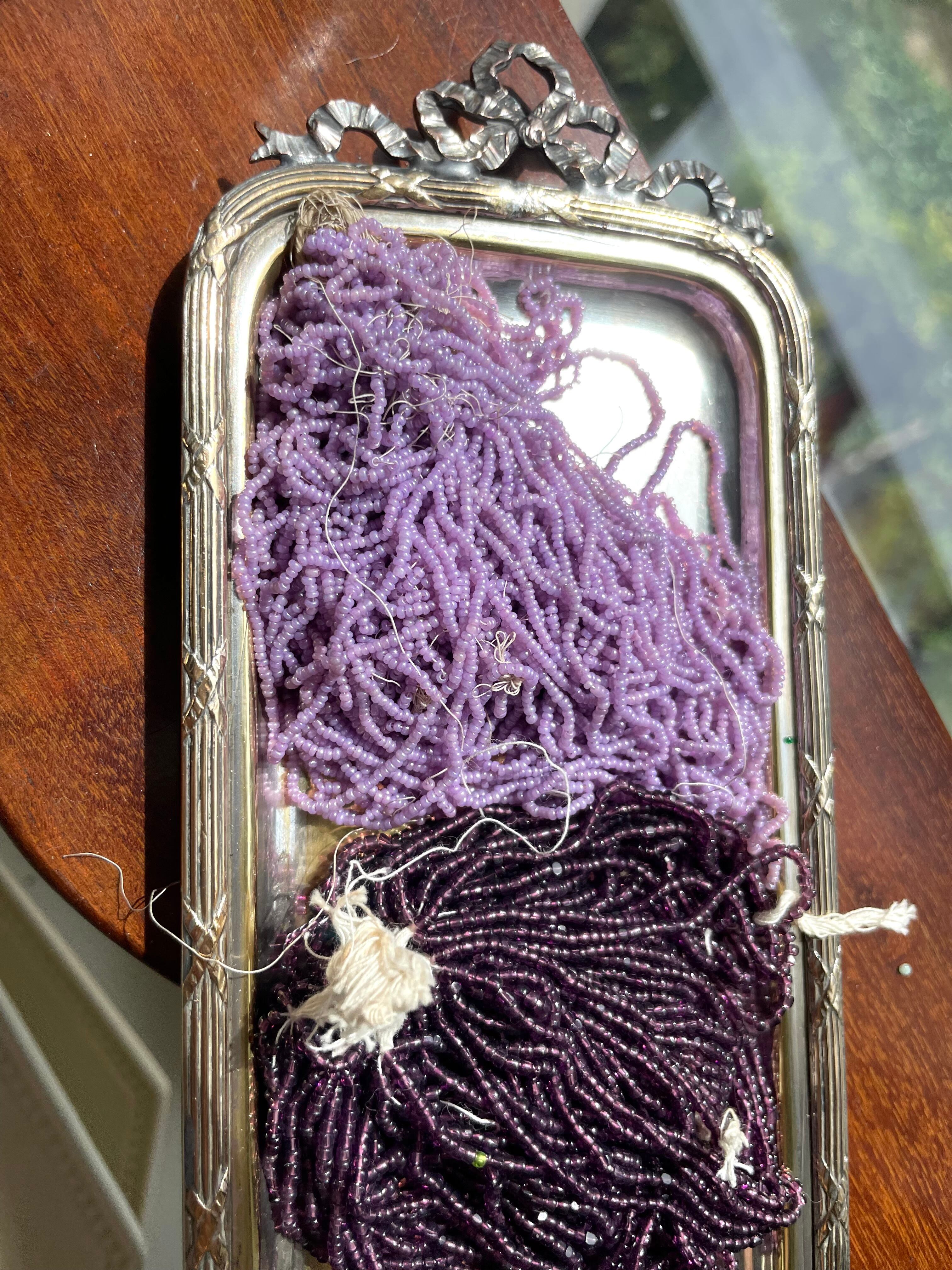 当時、マダムの叔母様が当時ガラスシードビーズを使用した刺繍装飾バッグの