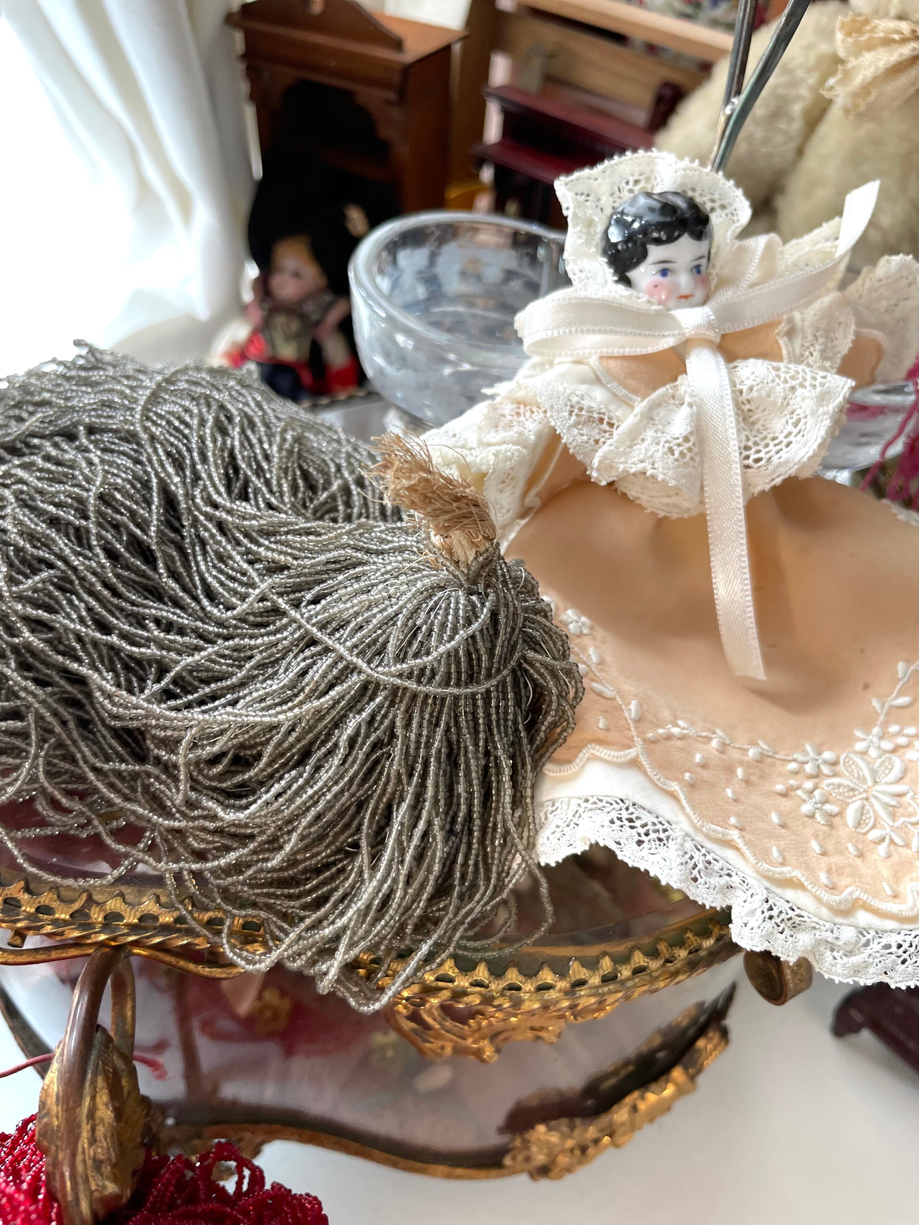 当時、マダムの叔母様が当時ガラスシードビーズを使用した刺繍装飾バッグの