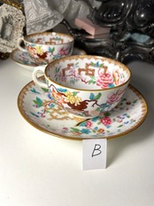 カラフルなエナメル彩で描かれた、東洋の花とカッコウ鳥のモチーフのシノワズリの花鳥図は、19世期半ばから受け継がれる伝統的な人気パターンです。