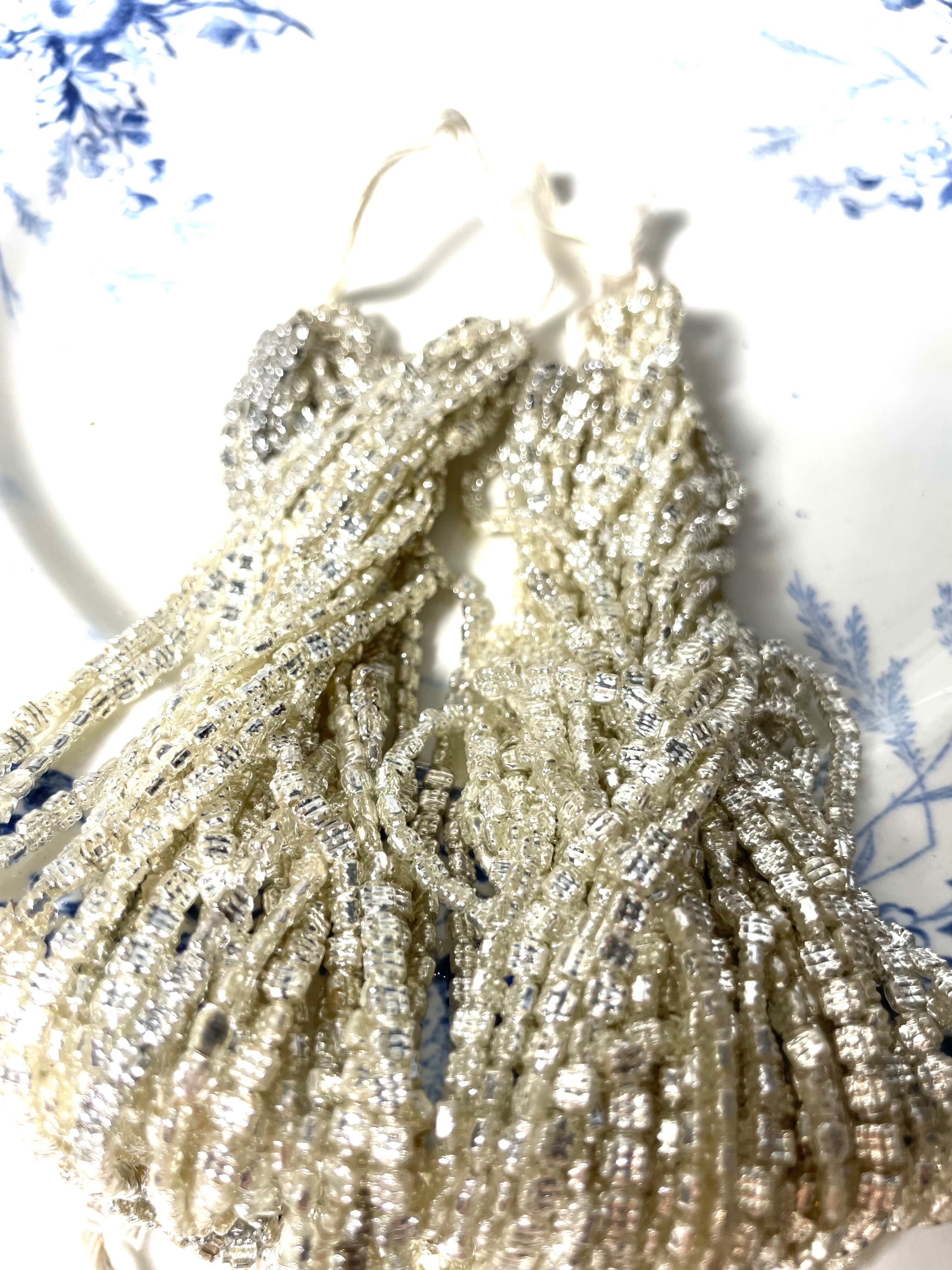 装飾品として用いられました。ガラススフレビーズが軽いので、ビーズをたくさん使ってもドレスや装飾品が重くならないということもあり、重宝されていました。