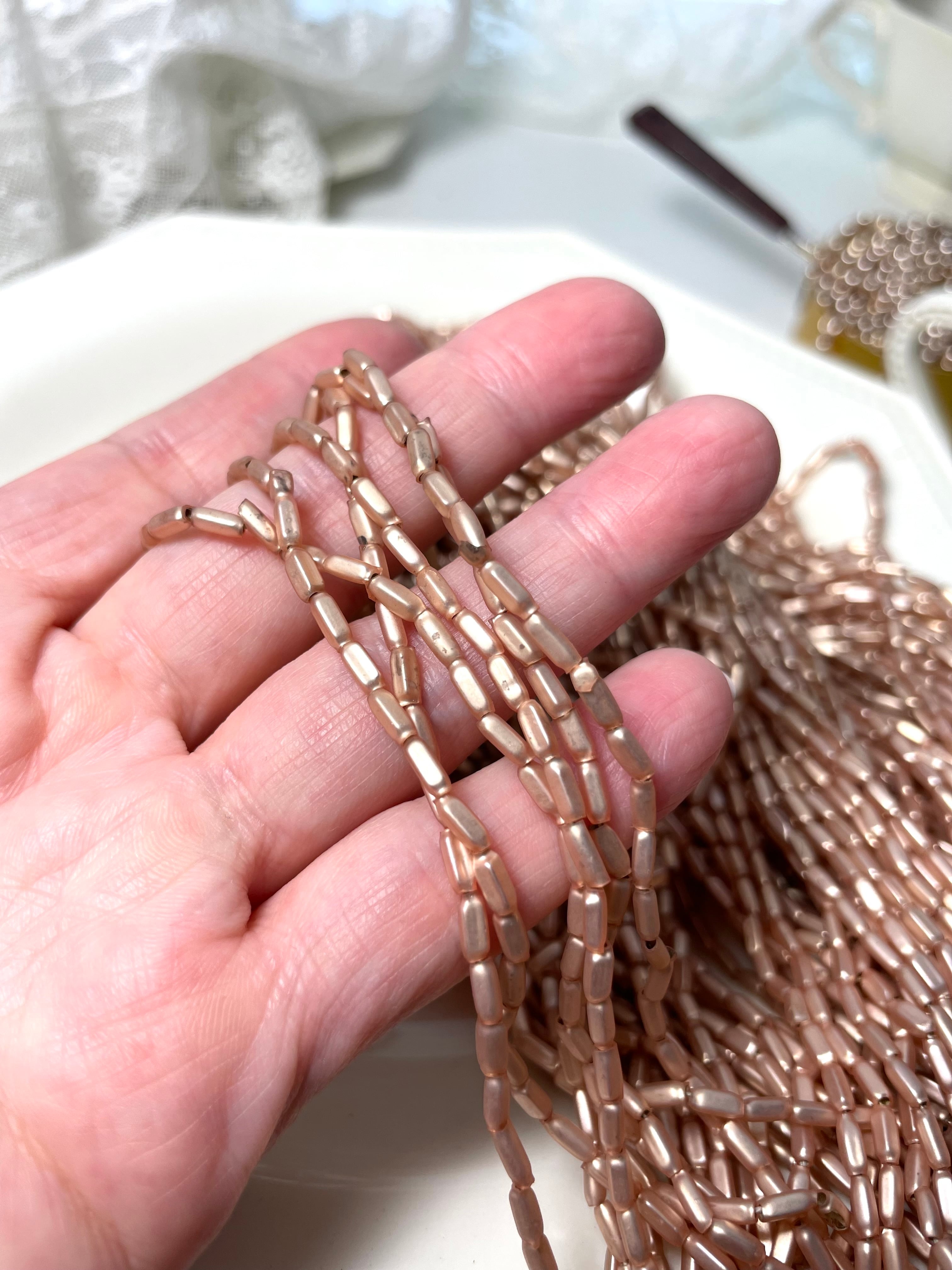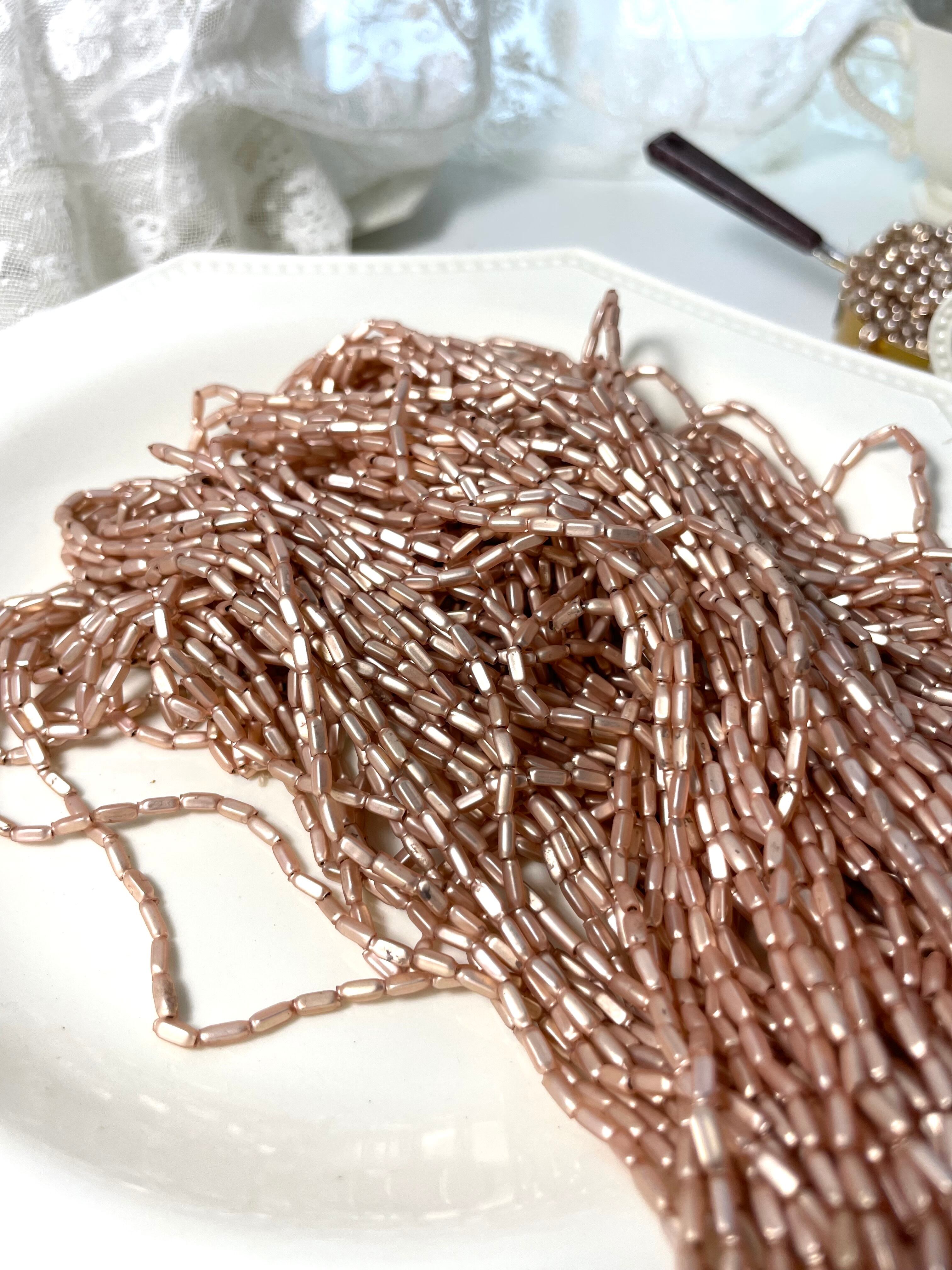 【送料込み表示】ref : Beads 923 アンティーク・スフレガラスビーズ・メタリックピンクゴールド
