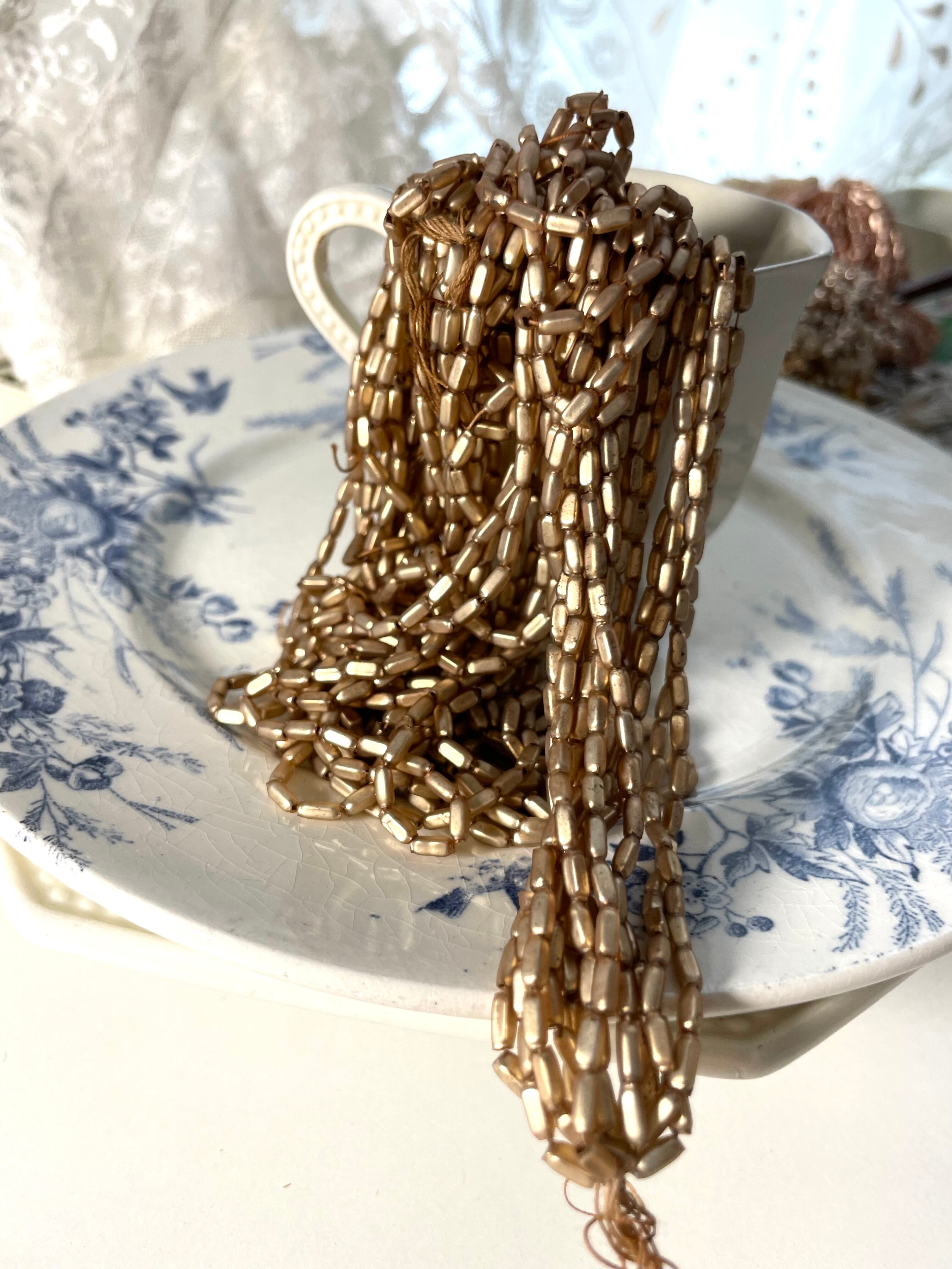装飾品として用いられました。ガラススフレビーズが軽いので、ビーズをたくさん使ってもドレスや装飾品が重くならないということが重宝されていました。