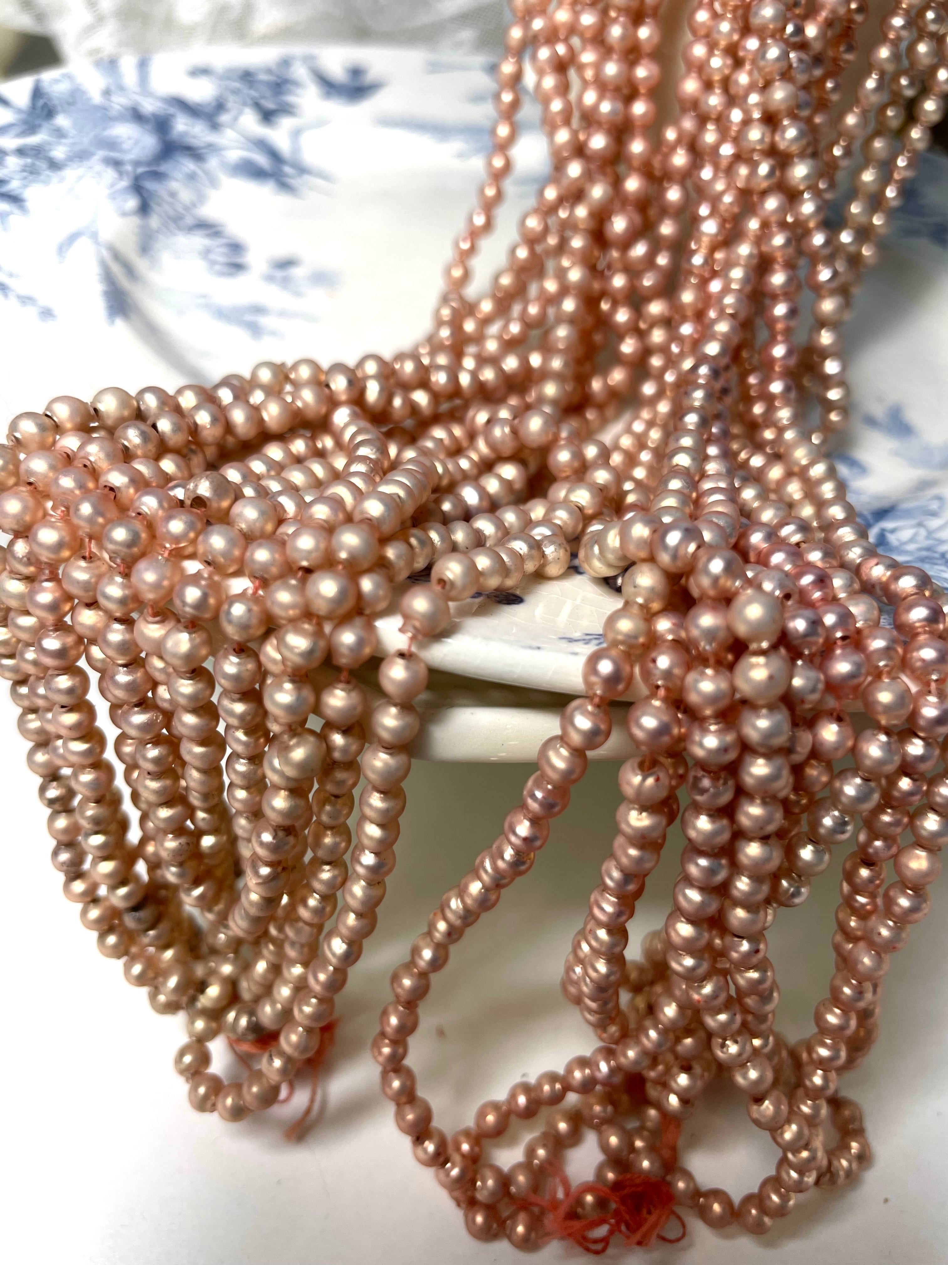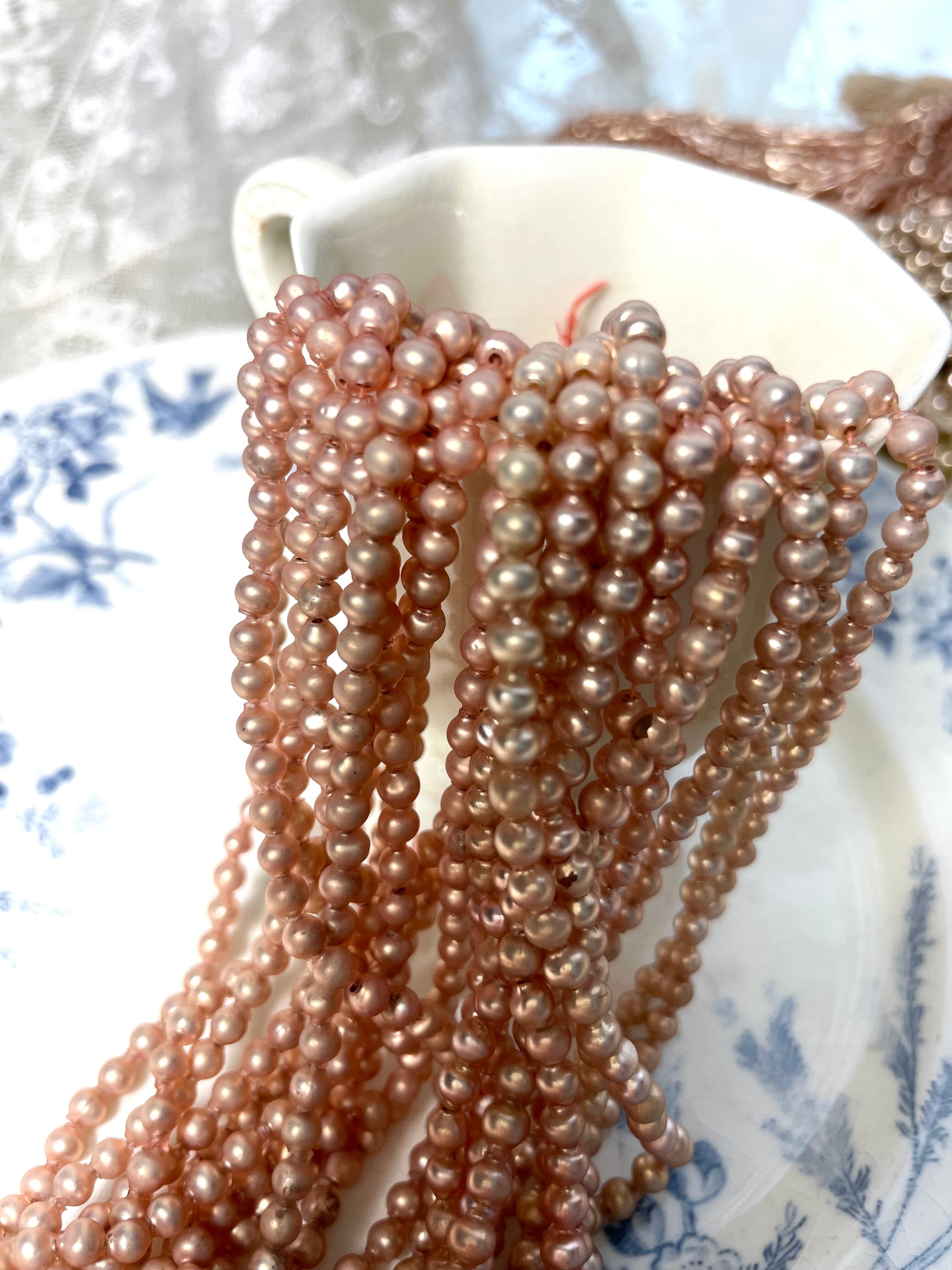 【送料込み表示】ref : Beads 919 アンティーク・スフレガラスビーズ・メタリックピンクゴールド