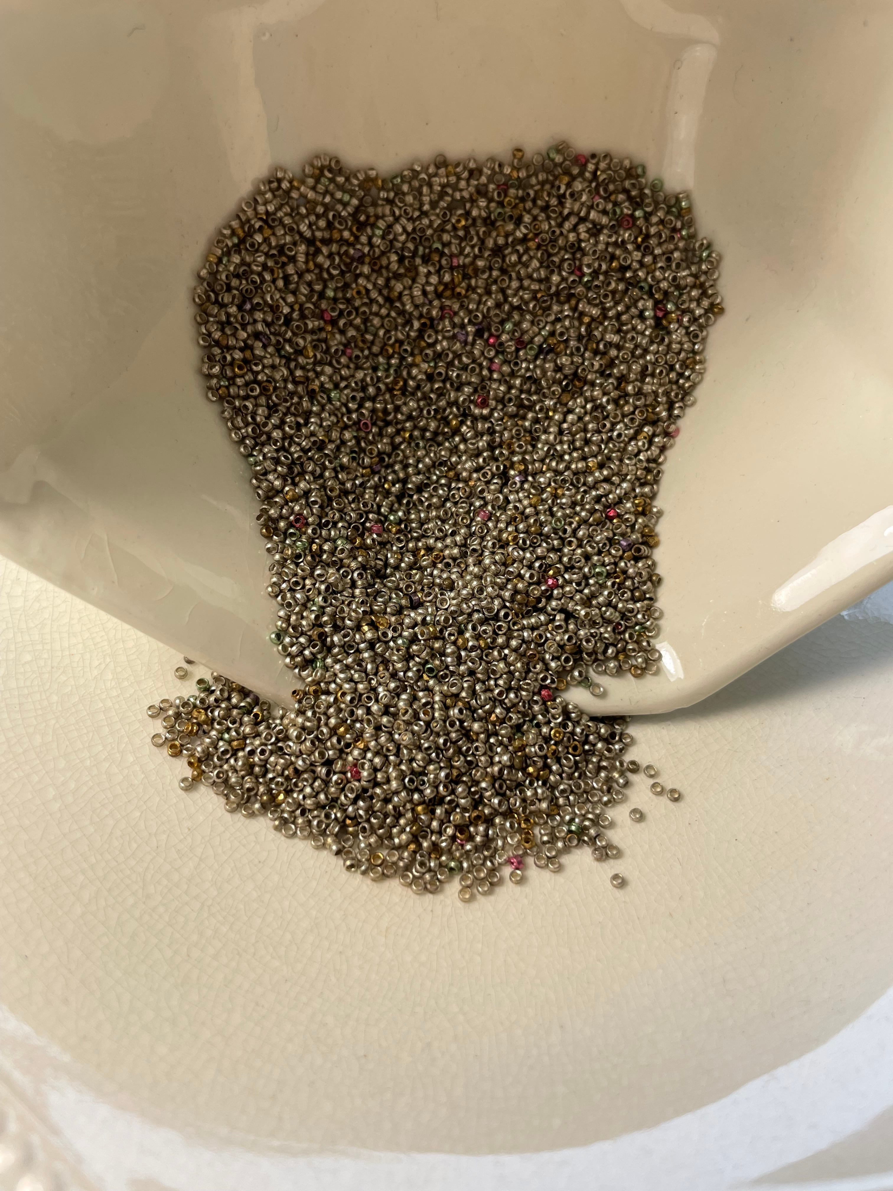 ビーズはその時のデッドストックということです。何十年も倉庫に眠っていたものとの事です。