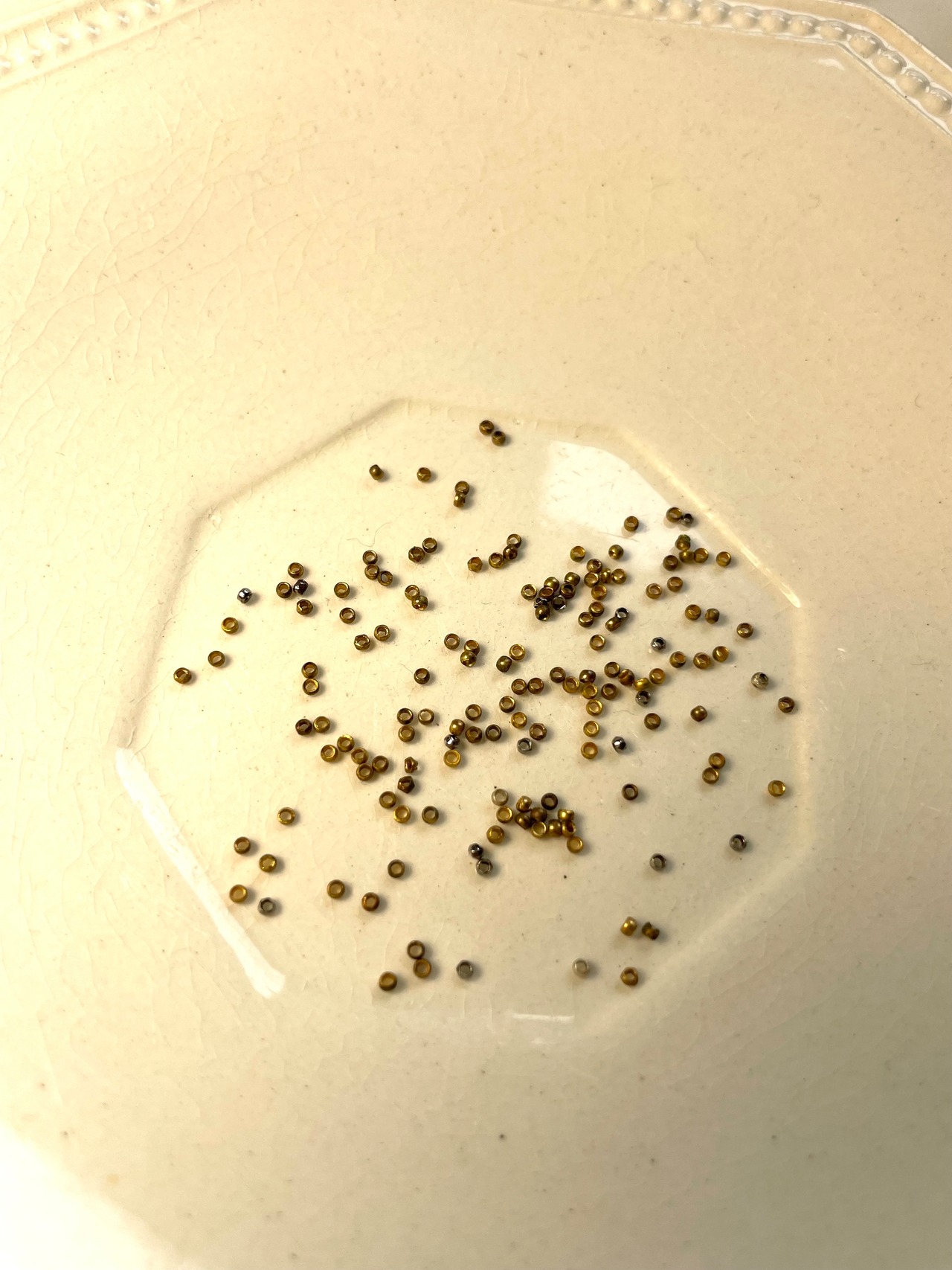 ビーズはその時のデッドストックということです。何十年も倉庫に眠っていたものとの事です。