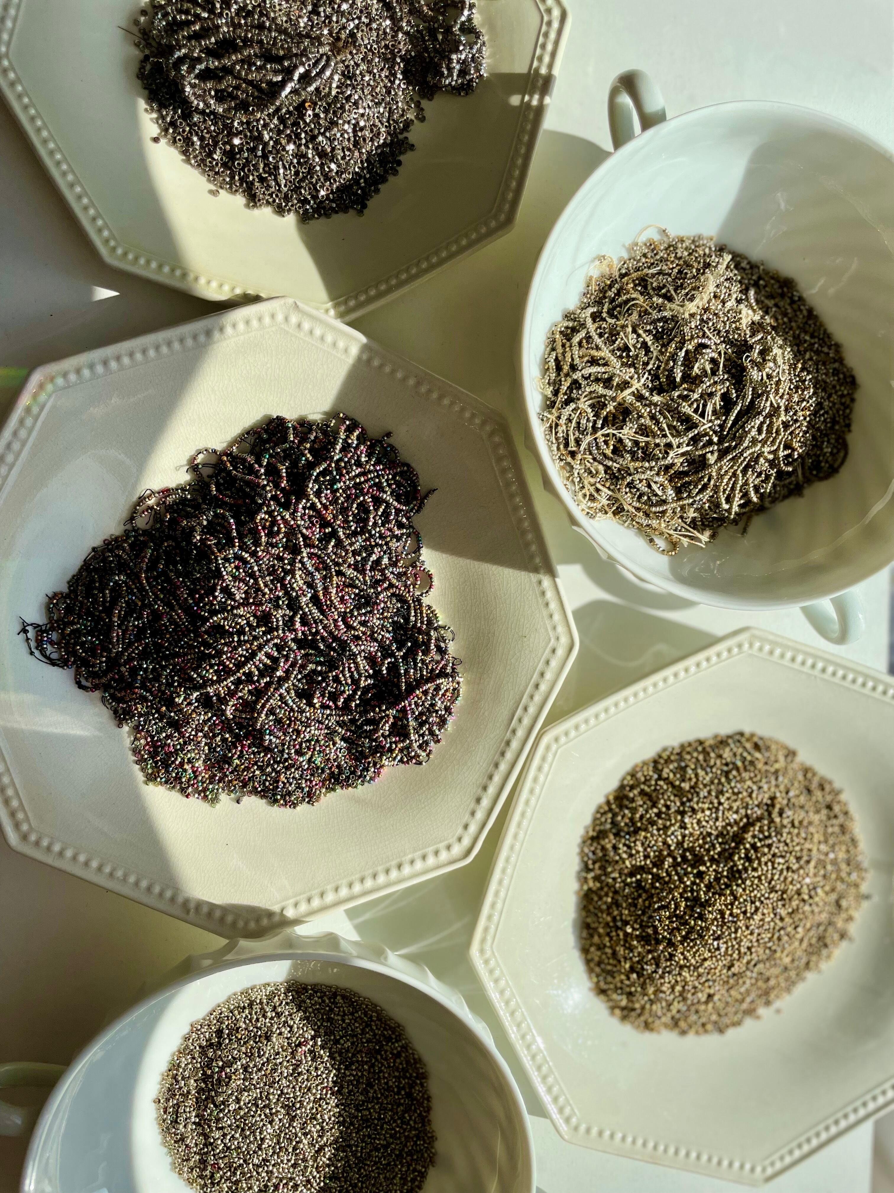 ビーズはその時のデッドストックということです。何十年も倉庫に眠っていたものとの事です。