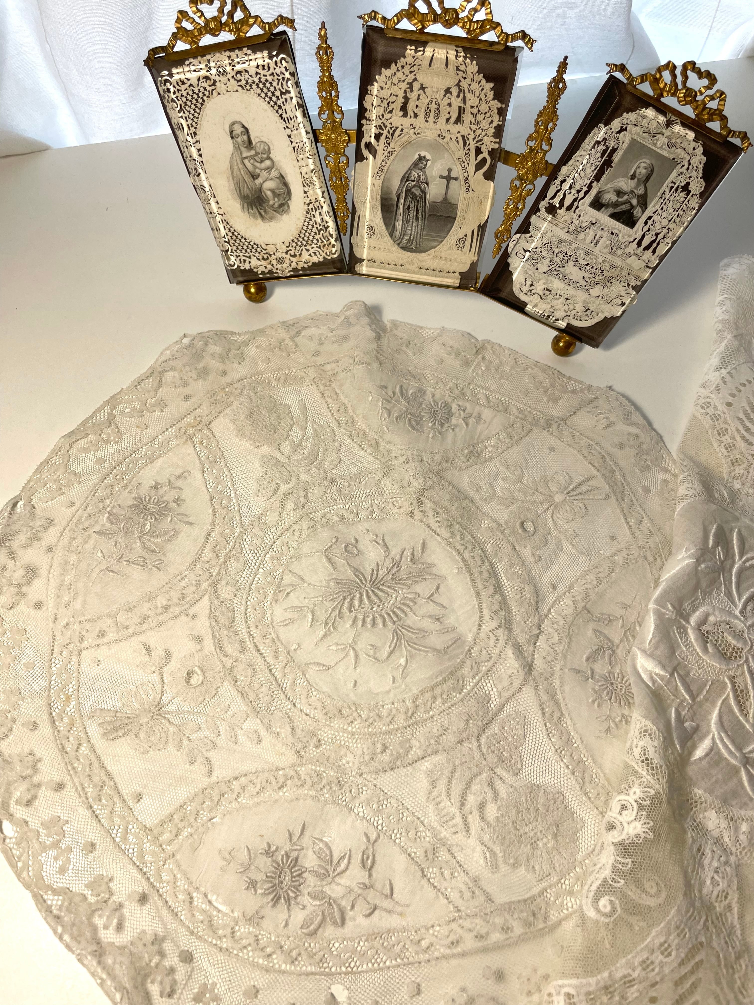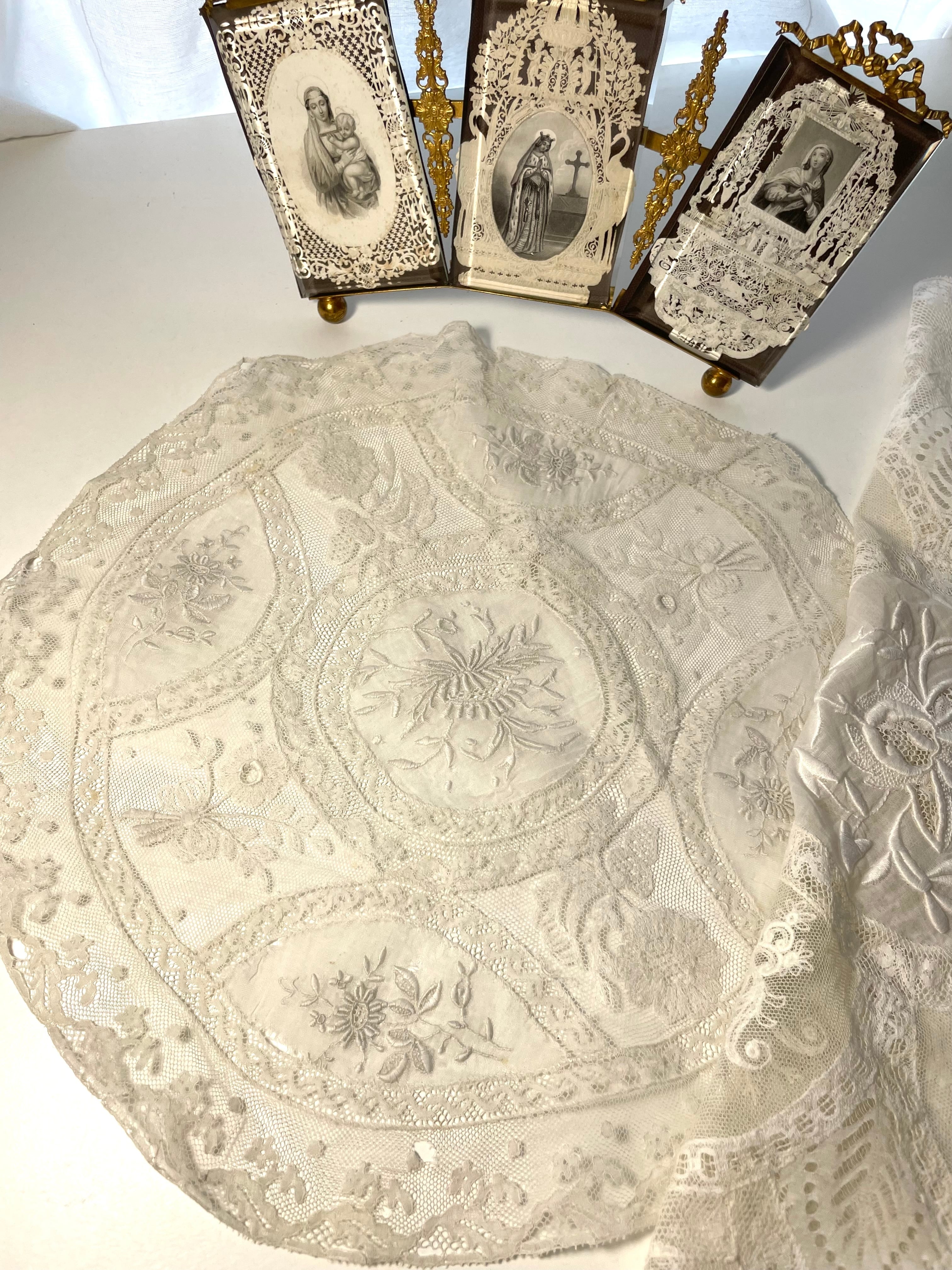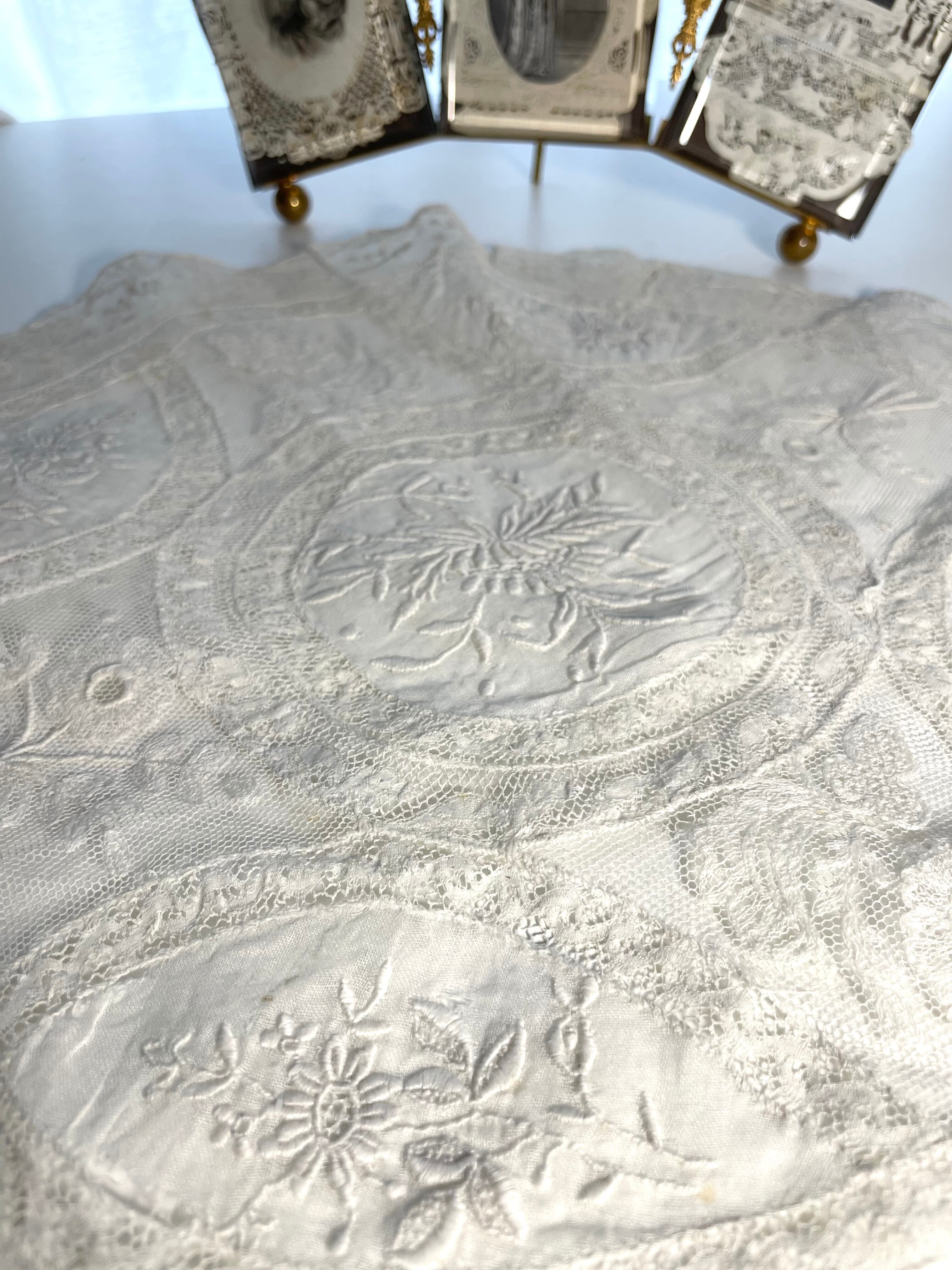 【送料込み表示】ref 2206 : アンティーク・ノルマンディーレース・白糸刺繍・33cm