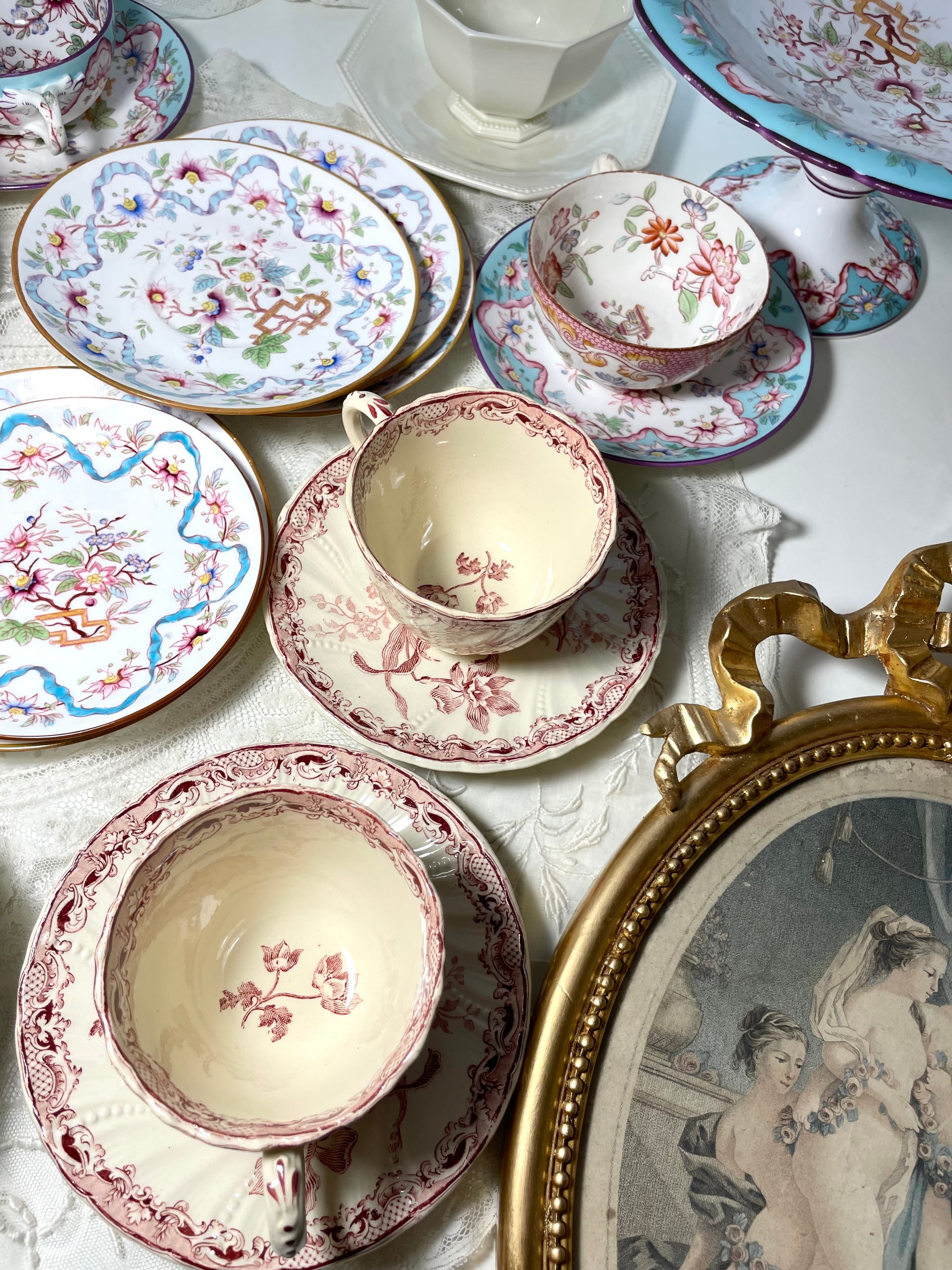 このリボンモチーフはミントンシリーズでも特に希少です。白磁に鮮やかな水色のリボンが