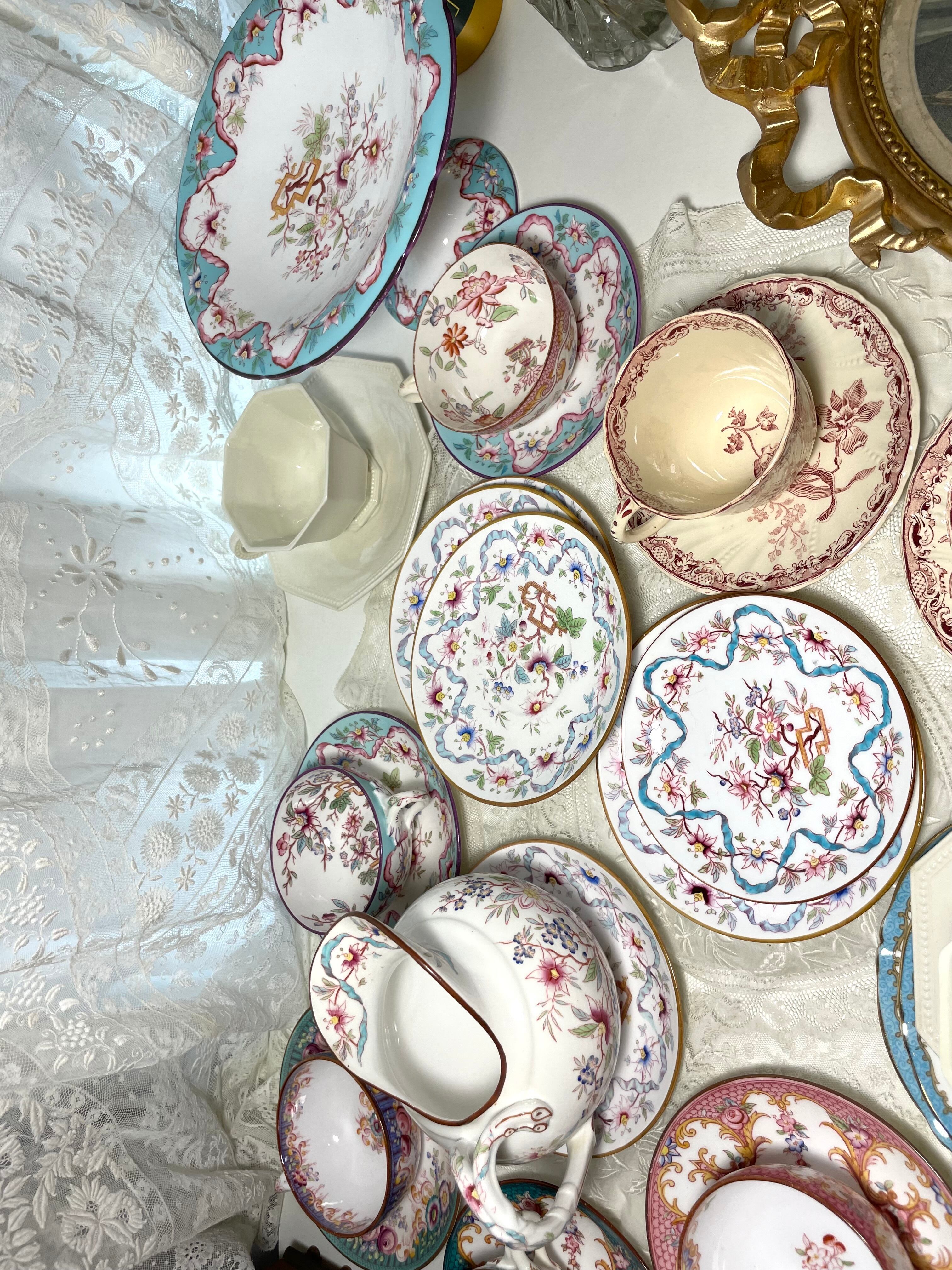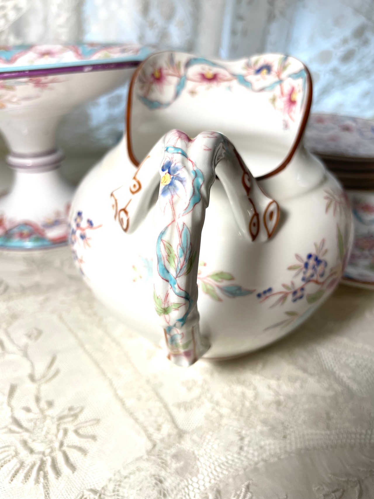 このリボンモチーフはミントンシリーズでも特に希少です。白磁に鮮やかな水色のリボンが