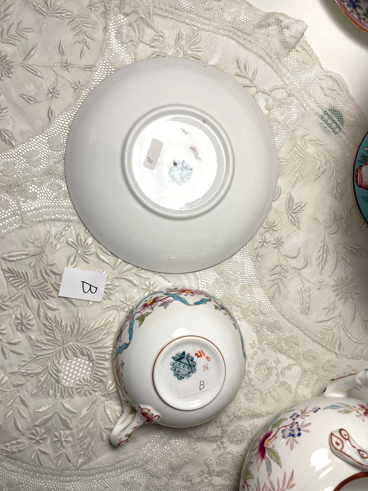 サレグミン製陶所による "ミントン "柄の美しい手描きのファイアンス製ティーカップ です。