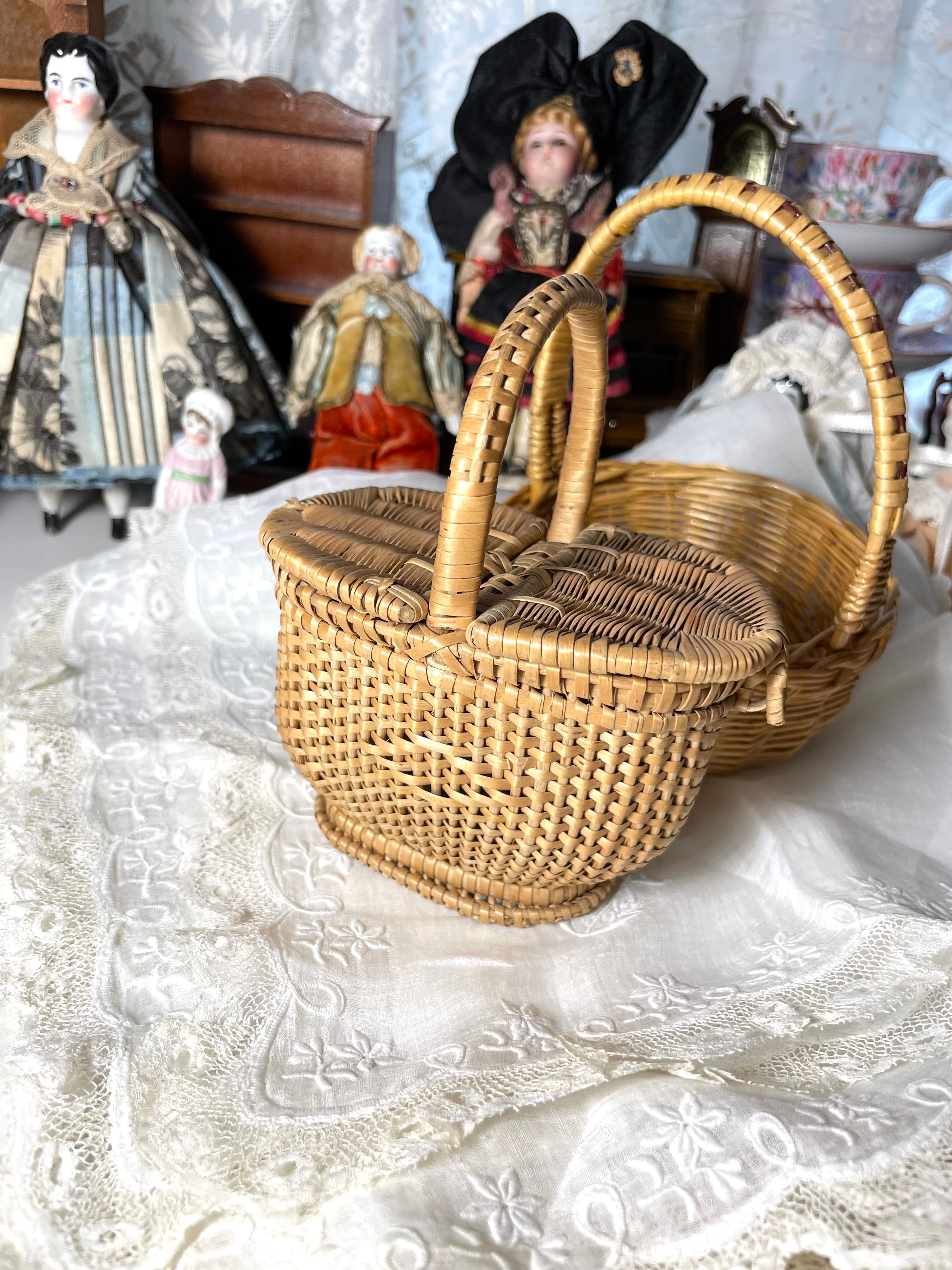 アンティークドールパニエの中でも希少な蓋付きのタイプです。