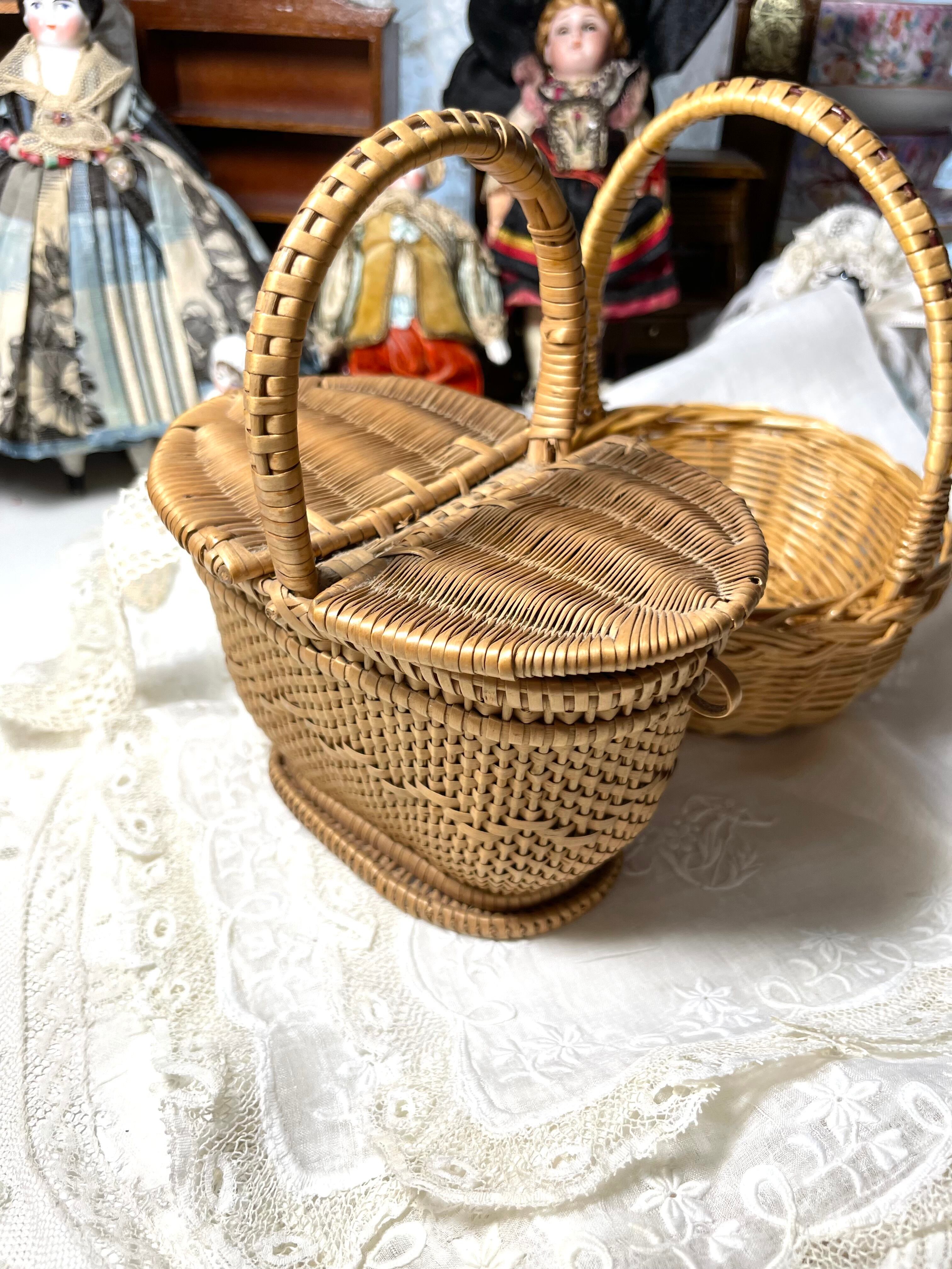 アンティークドールパニエの中でも希少な蓋付きのタイプです。