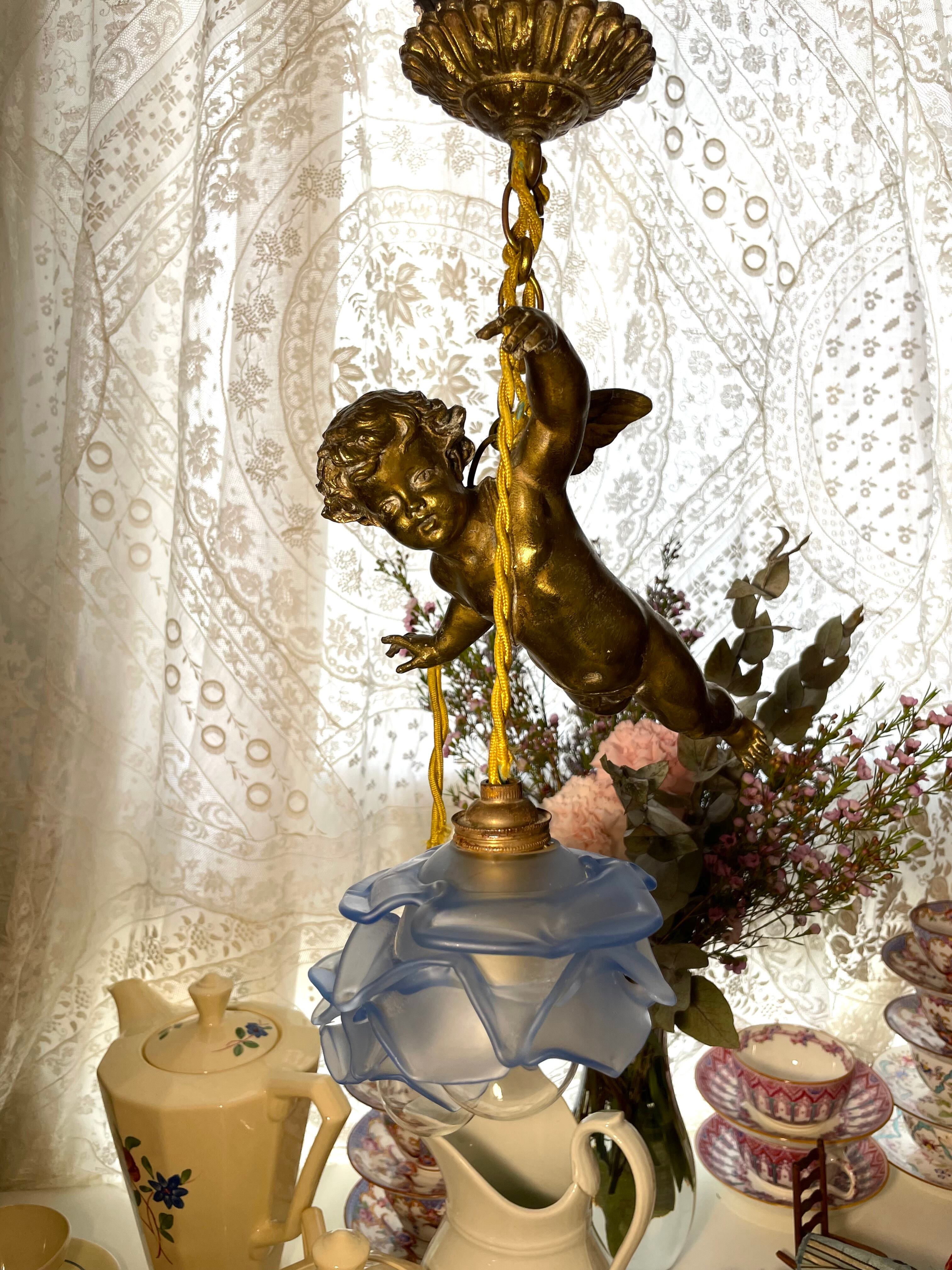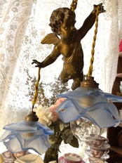 ルイ15世スタイルのエンジェル2灯シェードです。美しい表情の天使とシェードは