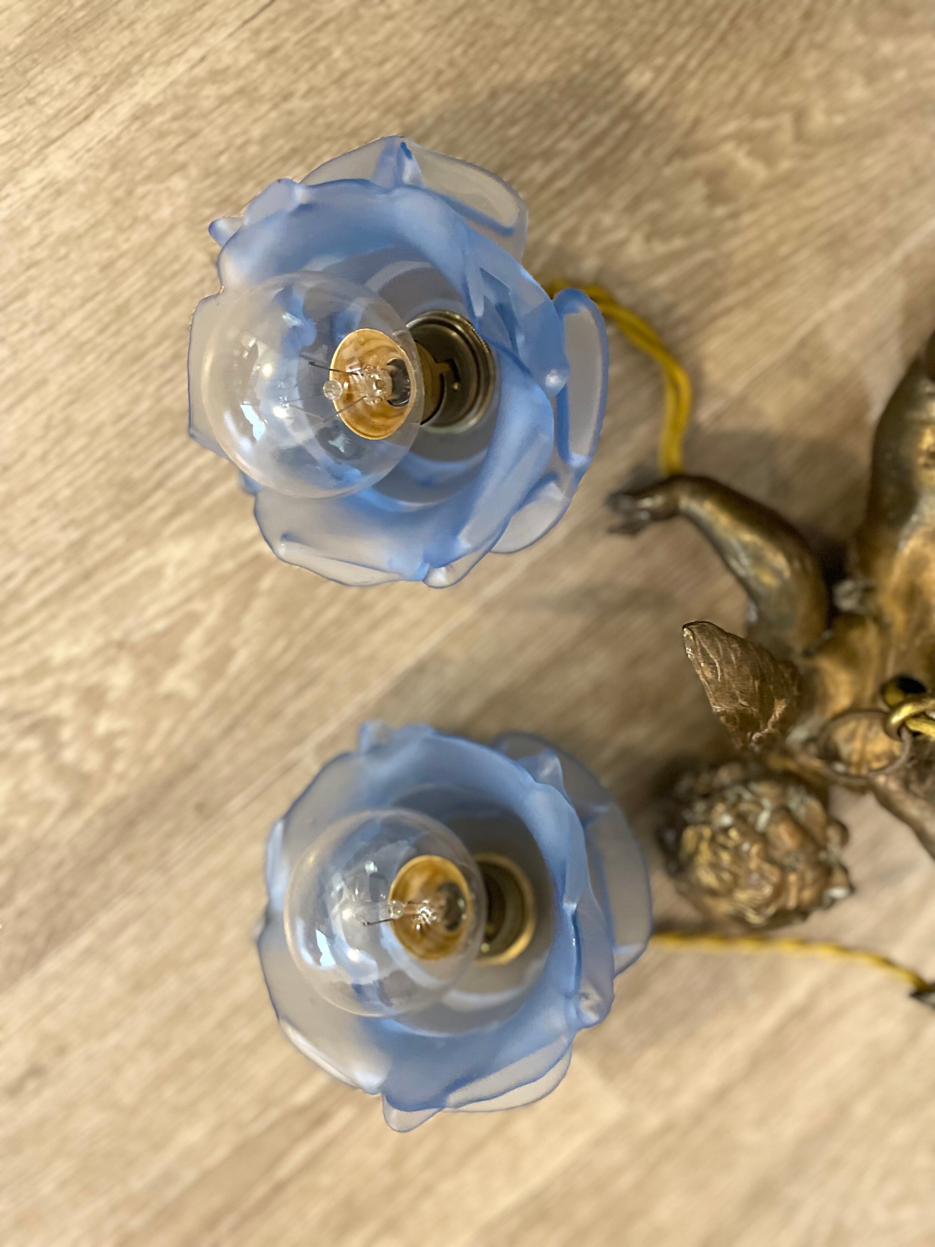 ref : 2176 アンティーク・ブルーのローズと天使の2灯シェード