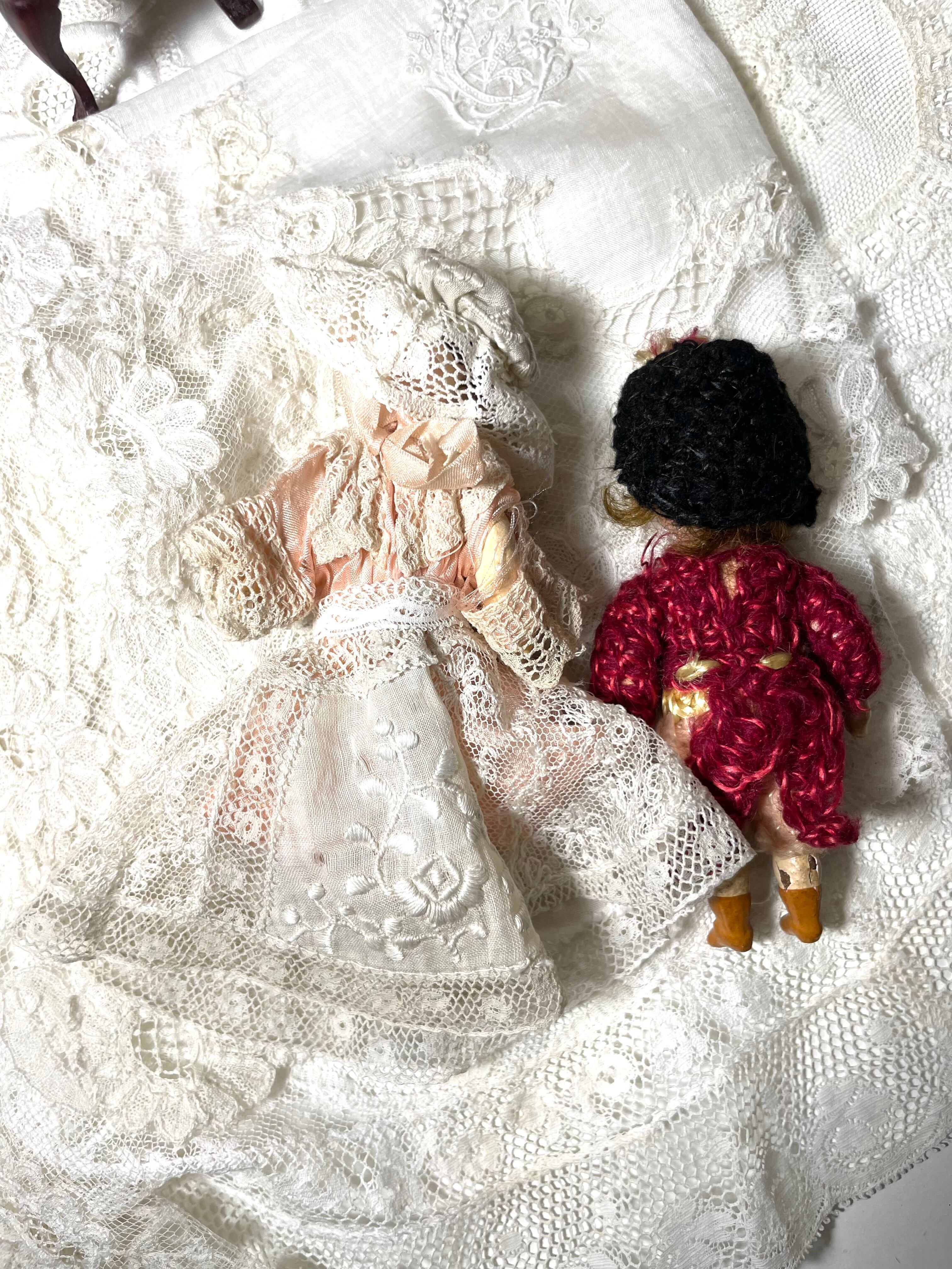 大変希少な、ミニョネットの美しい表情のビスクドールのペア。