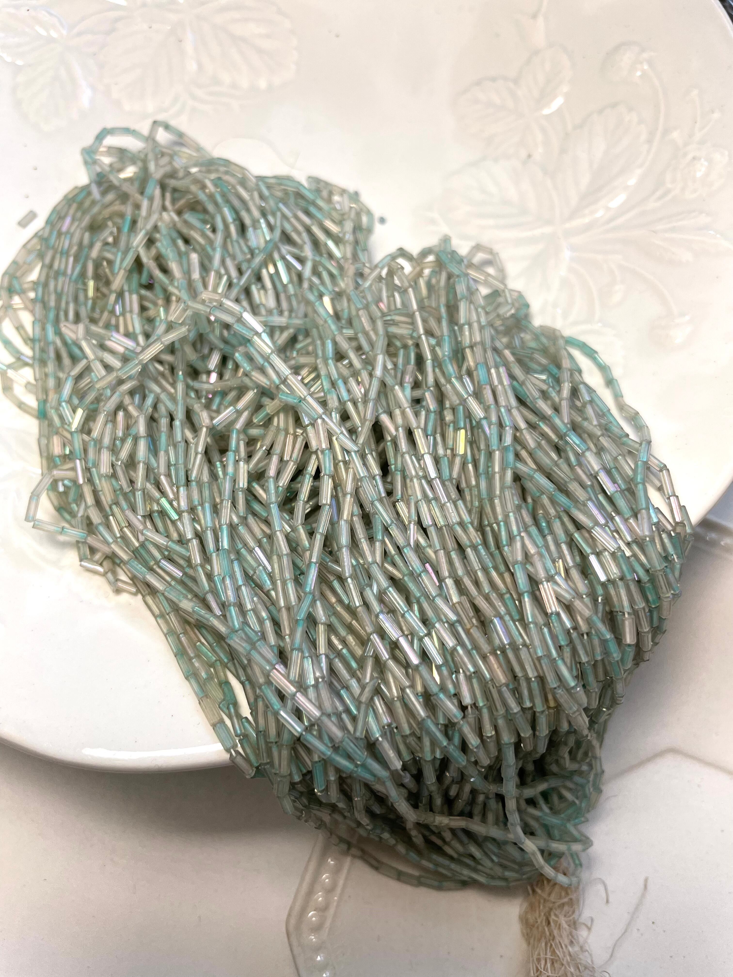 【送料込み表示】ref : Beads 965 アンティーク・ニュアンスエメラルド・ガラスチューブ