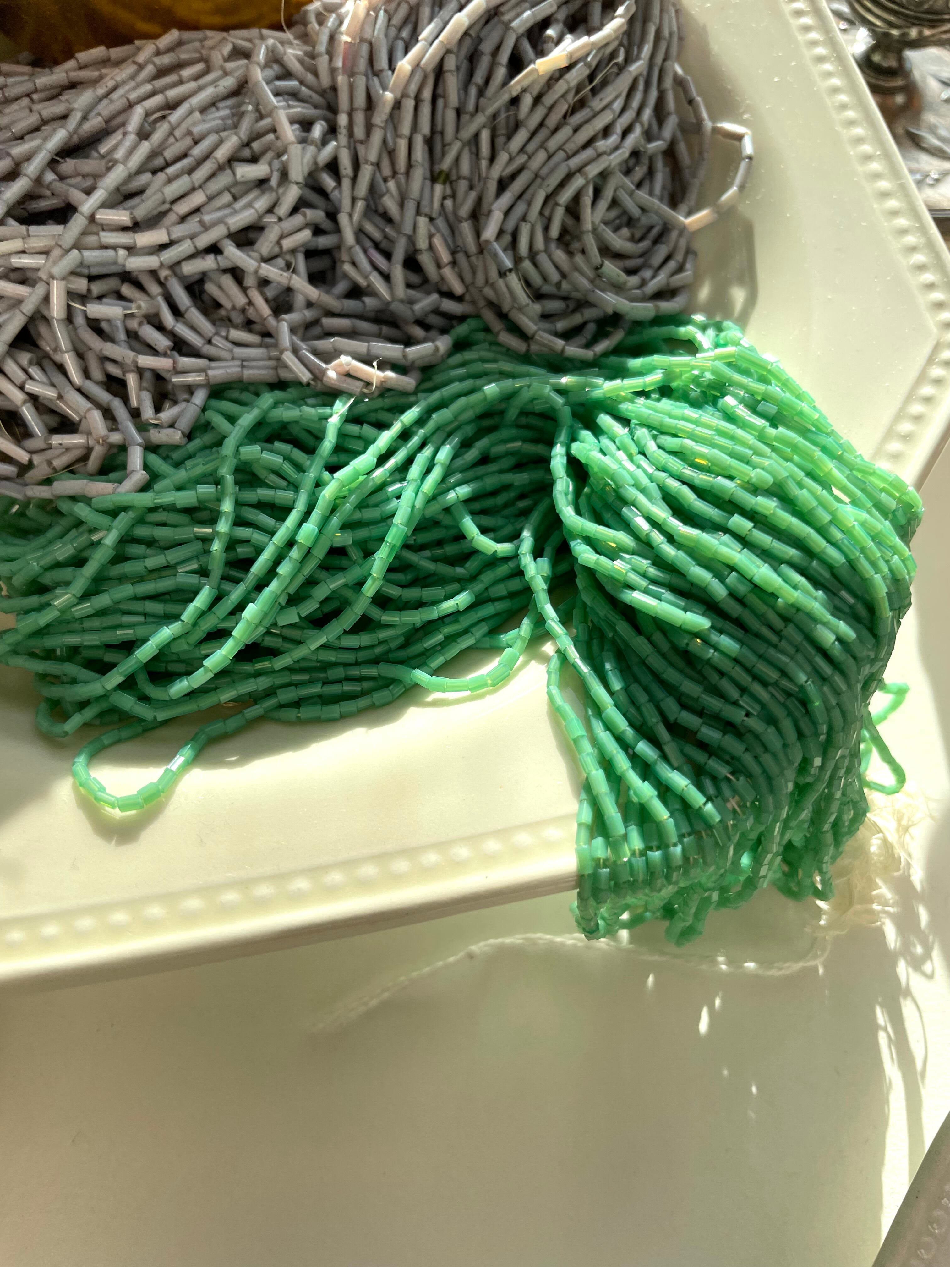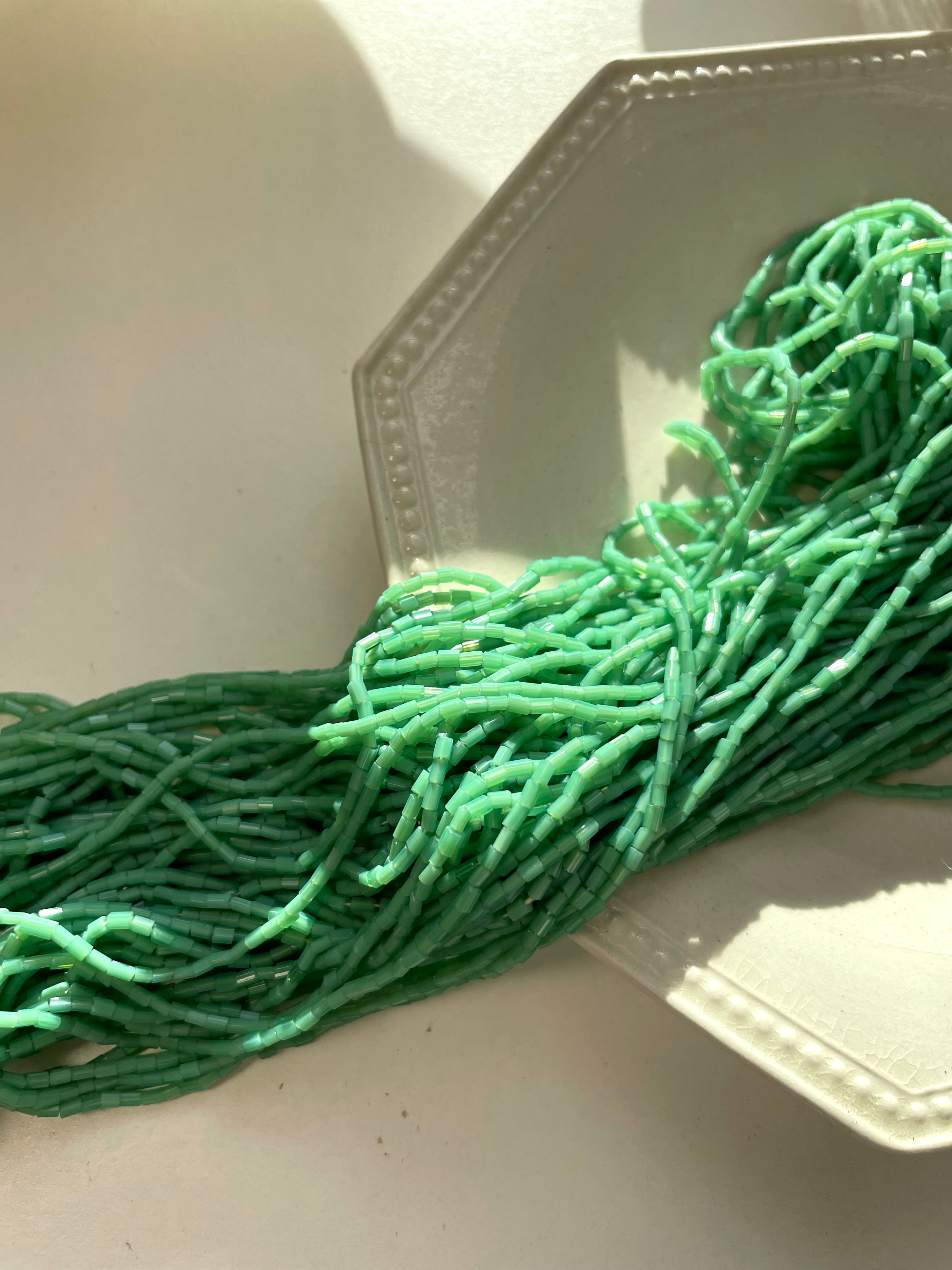 【送料込み表示】ref : Beads 974 アンティーク・エメラルド・ガラスチューブ