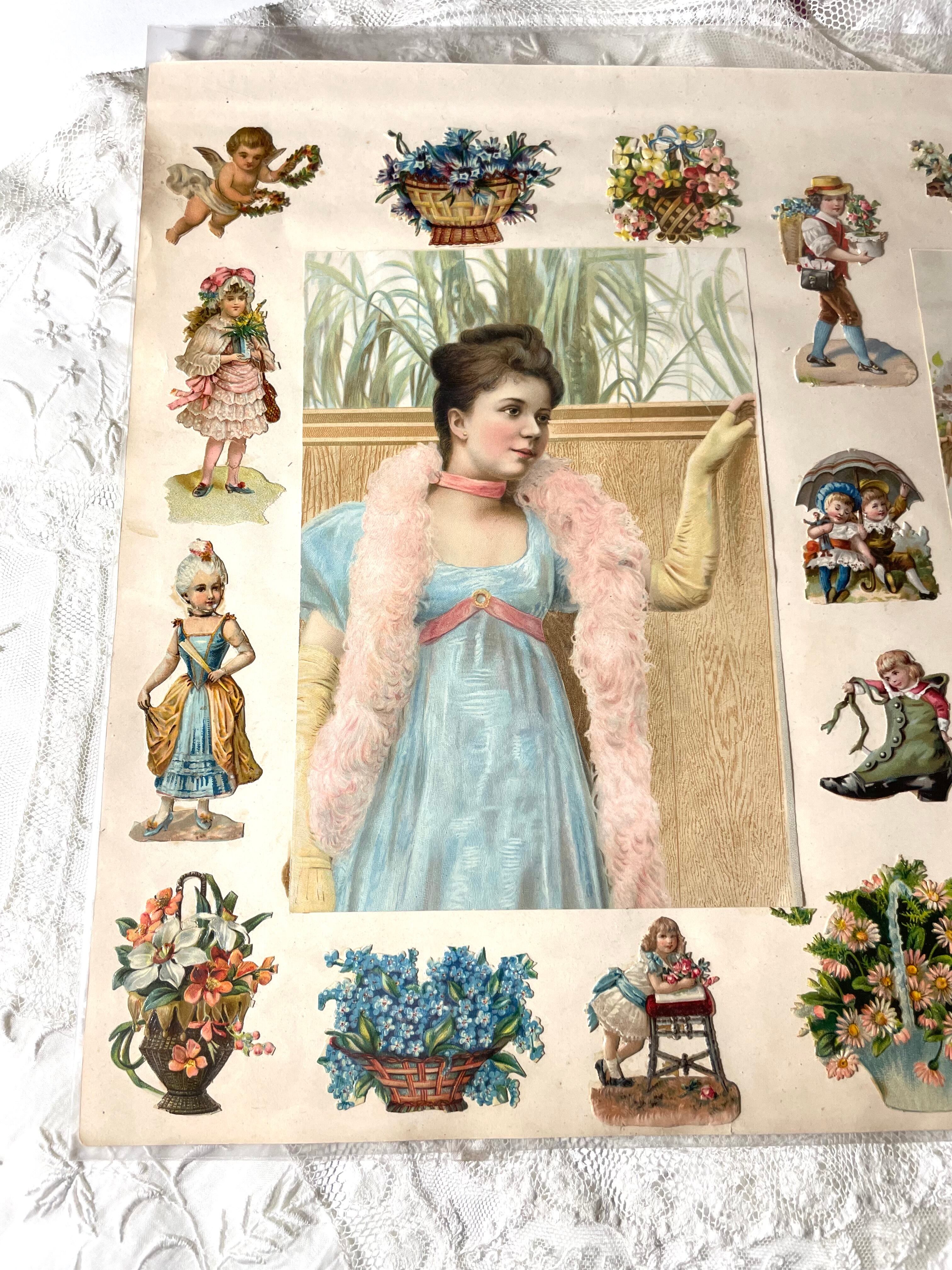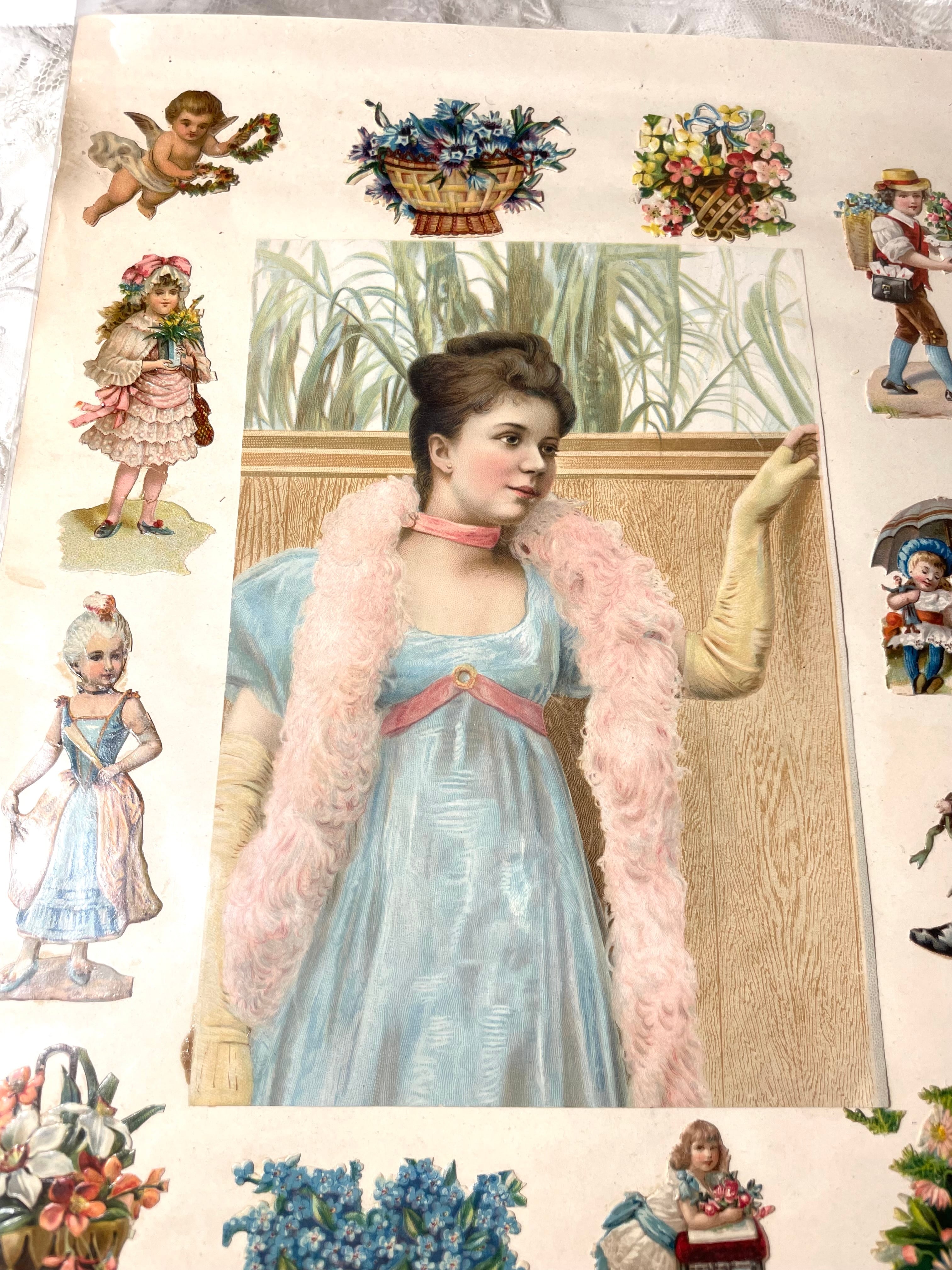 美しいクロモリトグラフ(多色石版印刷)のアンティーク・スクラップシート。