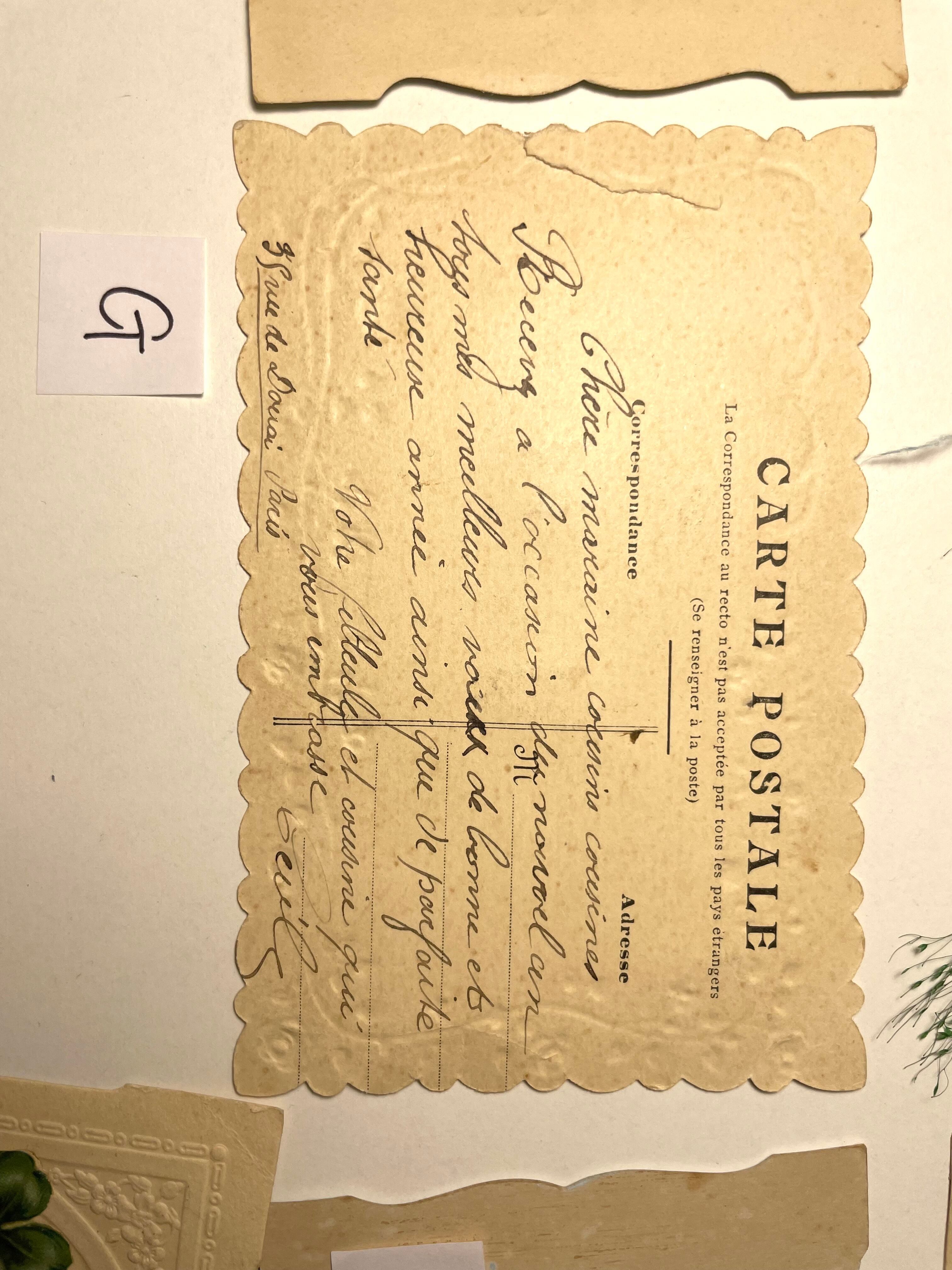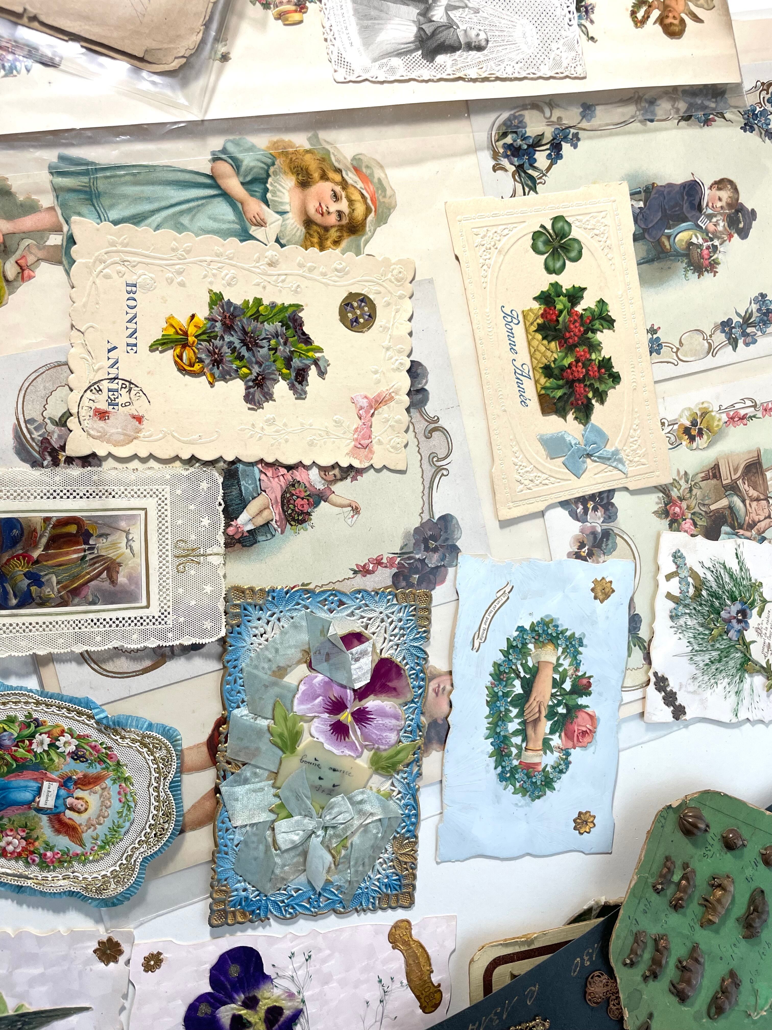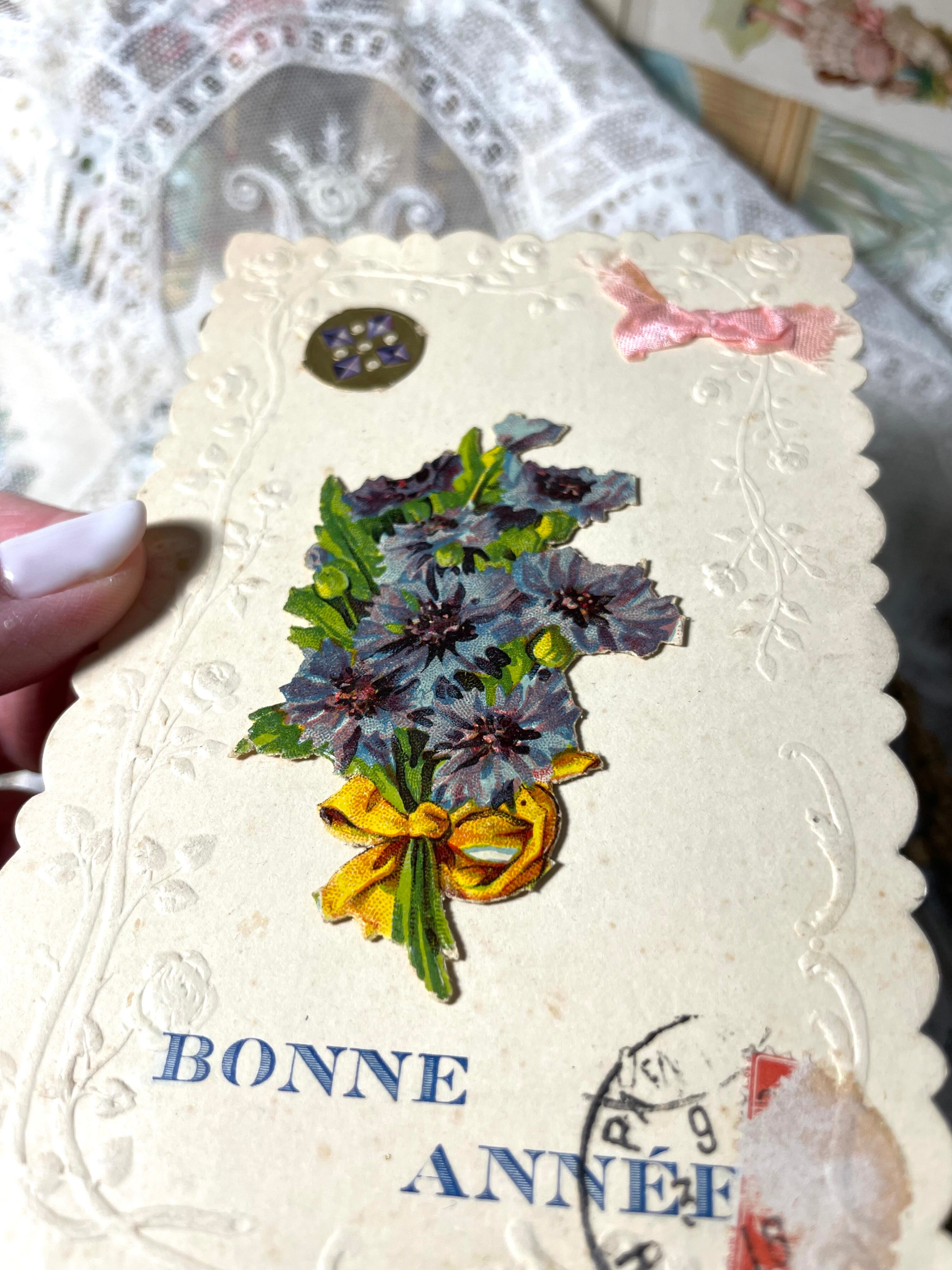 【送料込み表示】ref: 2319G Antique French Chromolithograph Postcard/アンティーク フランス クロモリトグラフ ポストカード《すみれのBONNE ANNÉE》1900年前後 | Epines de Rose Paris Vintage