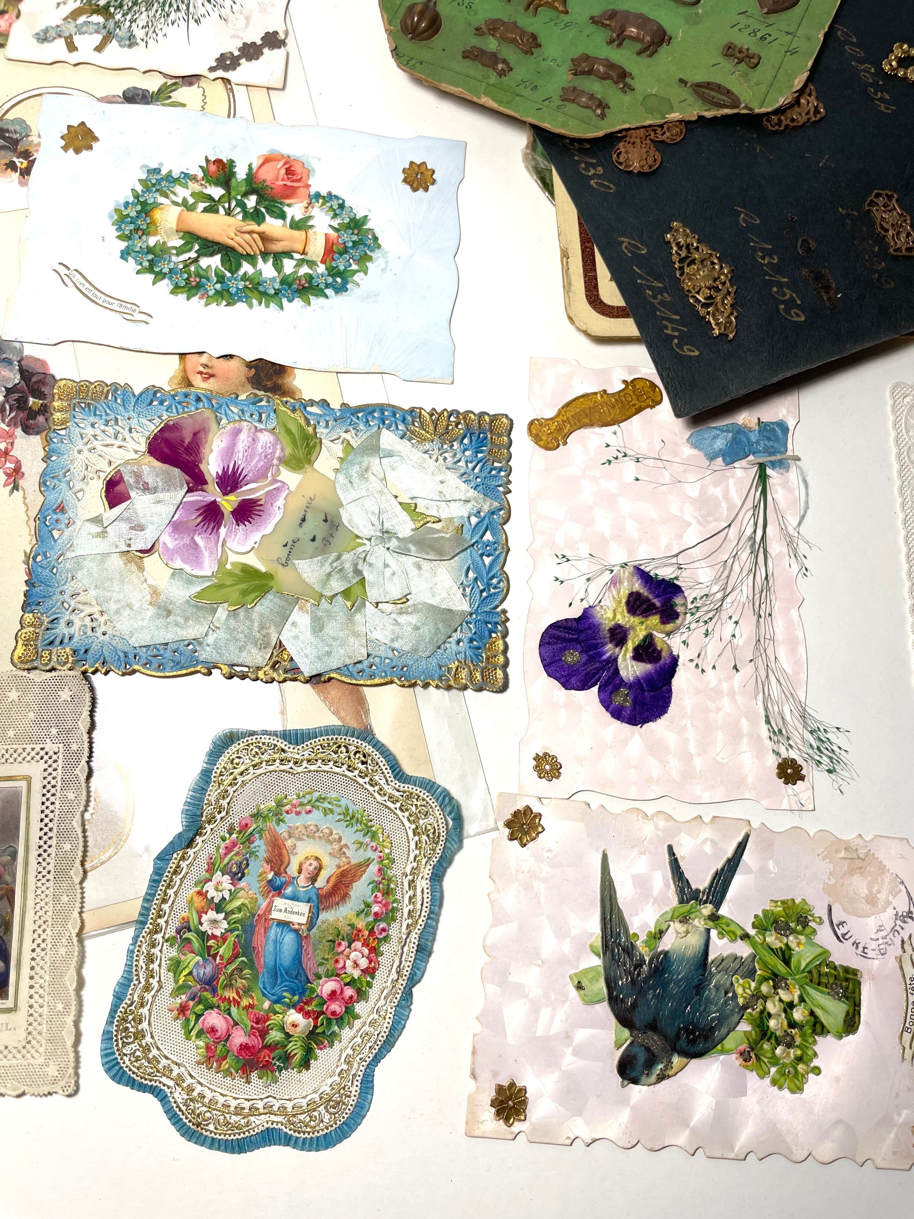 【送料込み表示】ref: 2319H Antique French Chromolithograph Postcard/アンティーク フランス クロモリトグラフ ポストカード《クローバーとヒイラギ》1900年前後