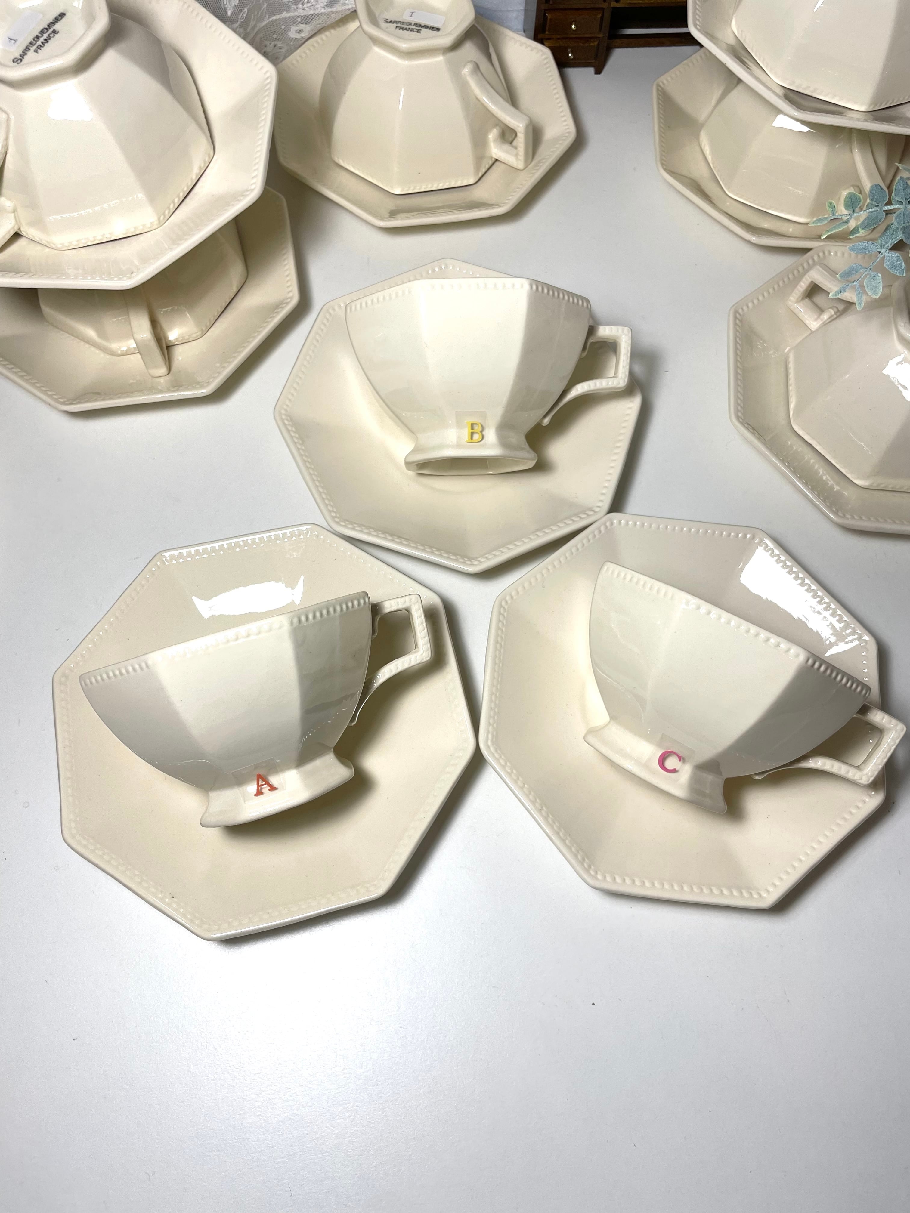 ref : OCT-SMT-023 アンティーク・ティーカップ・Sarreguemines・オクトゴナルパール