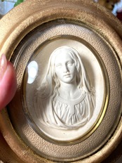 マリア像のせっこう彫刻を収めたドーム入りメダイヨンです。