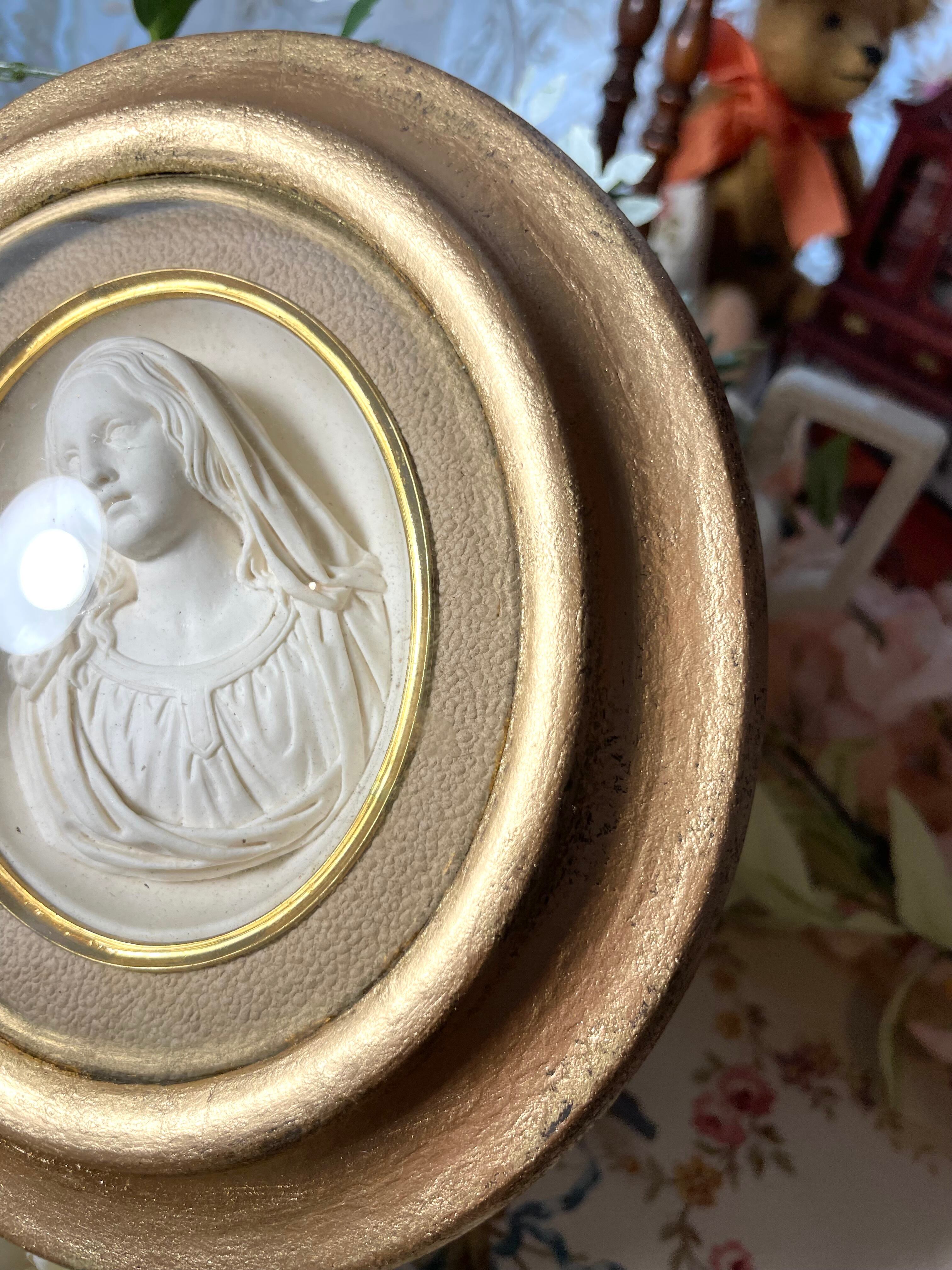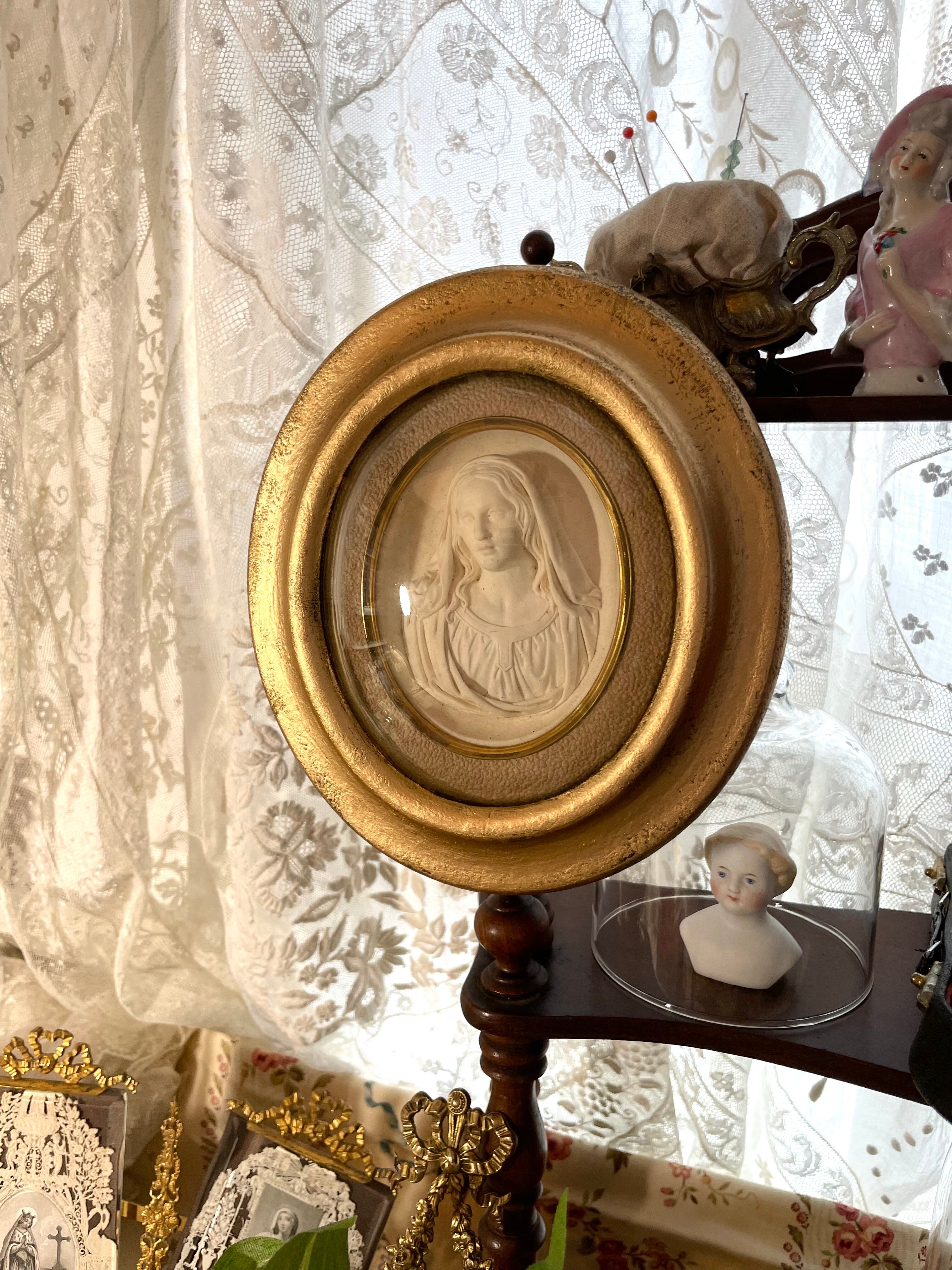 ref: 2339 アンティーク・マリア像 石膏ドームメダイヨン・木製ゴールドフレーム・19世紀