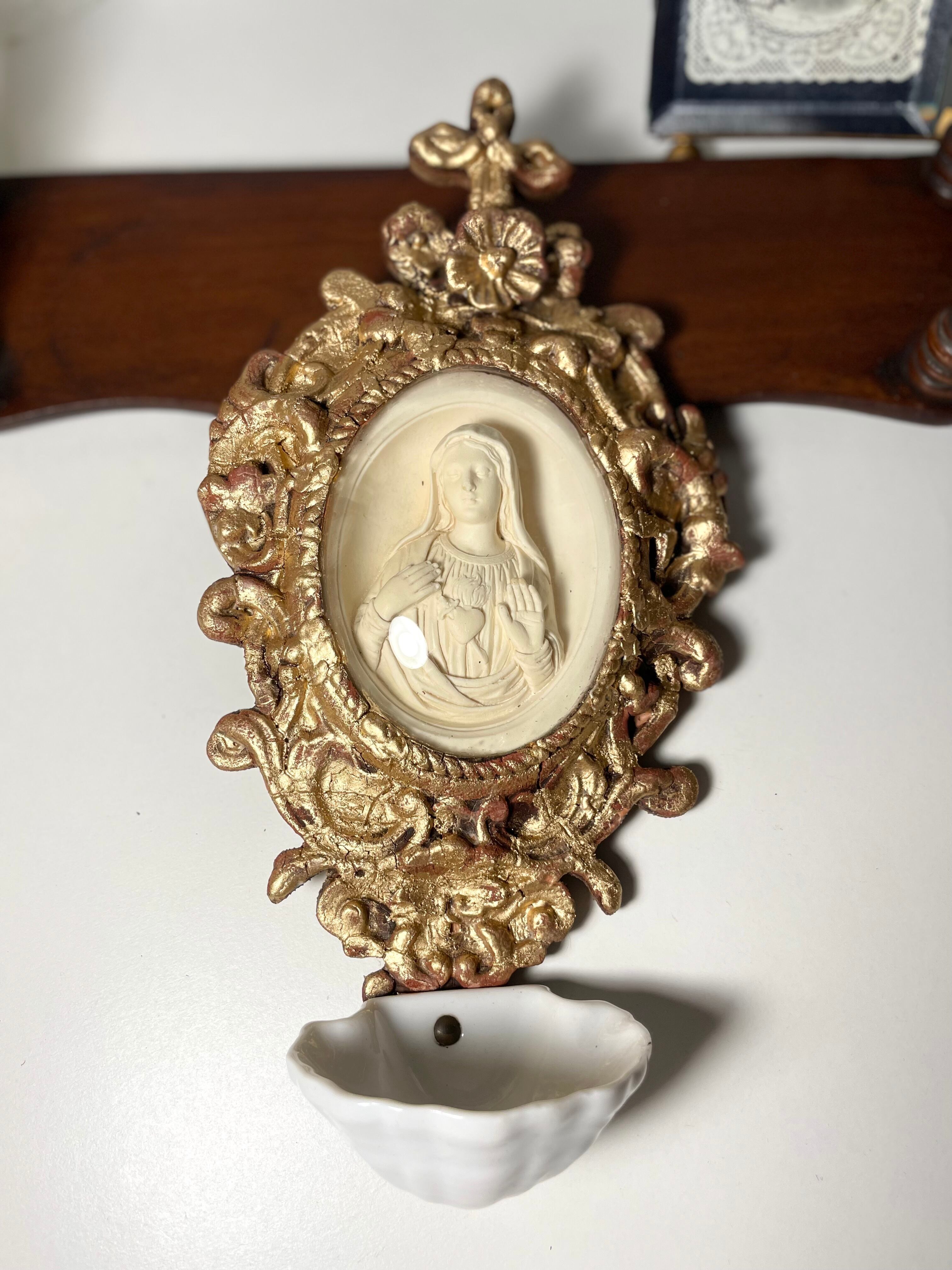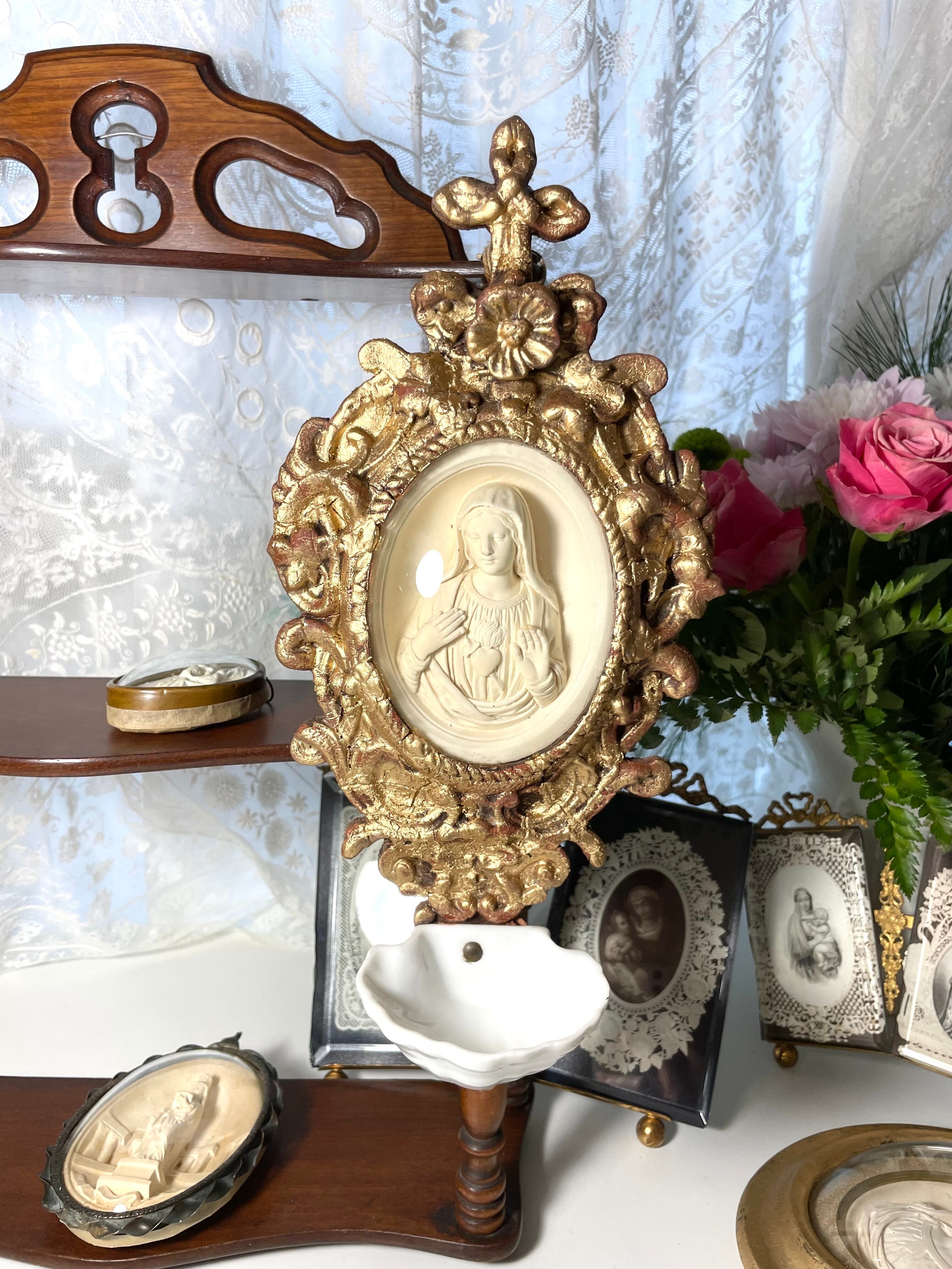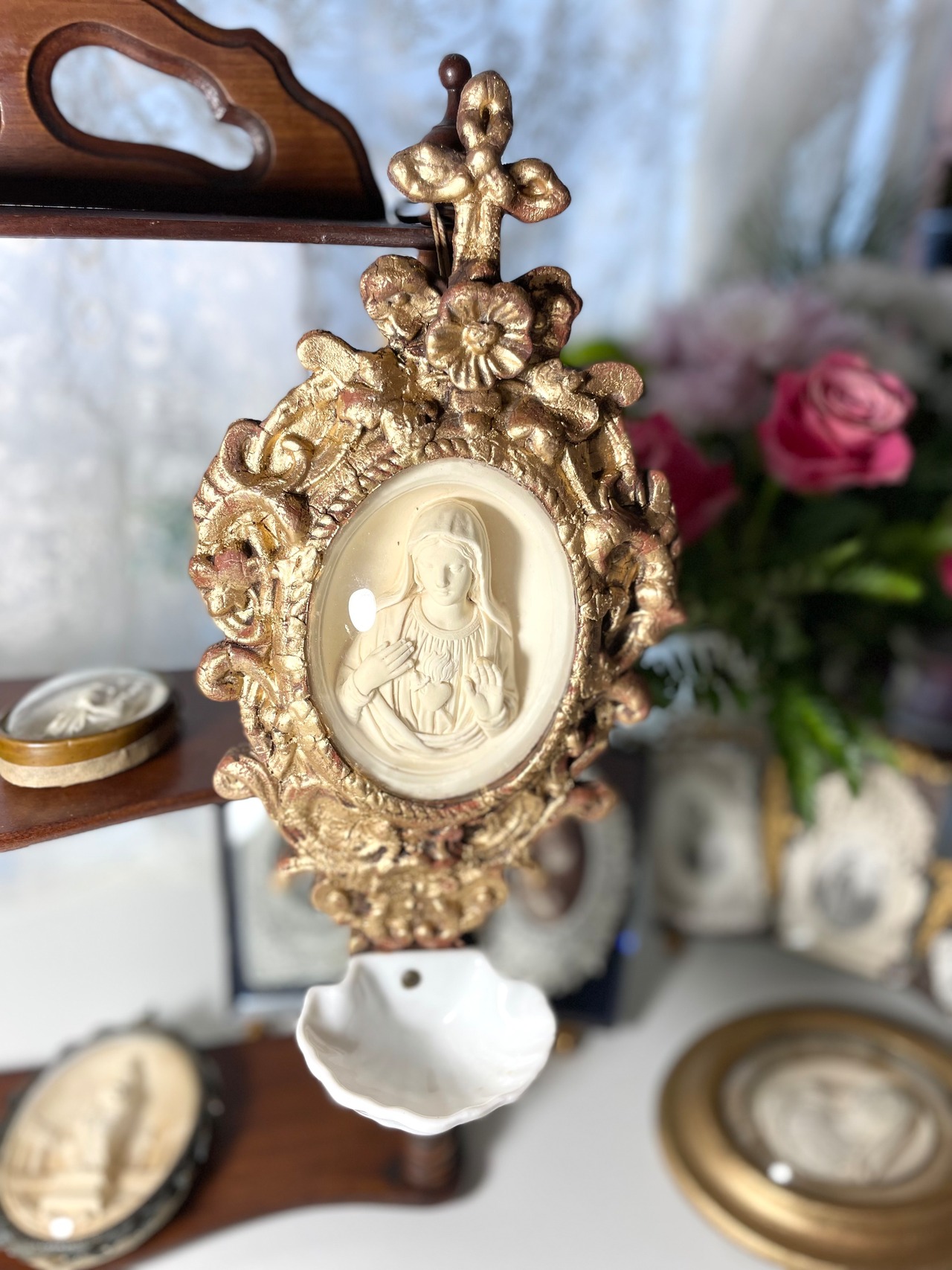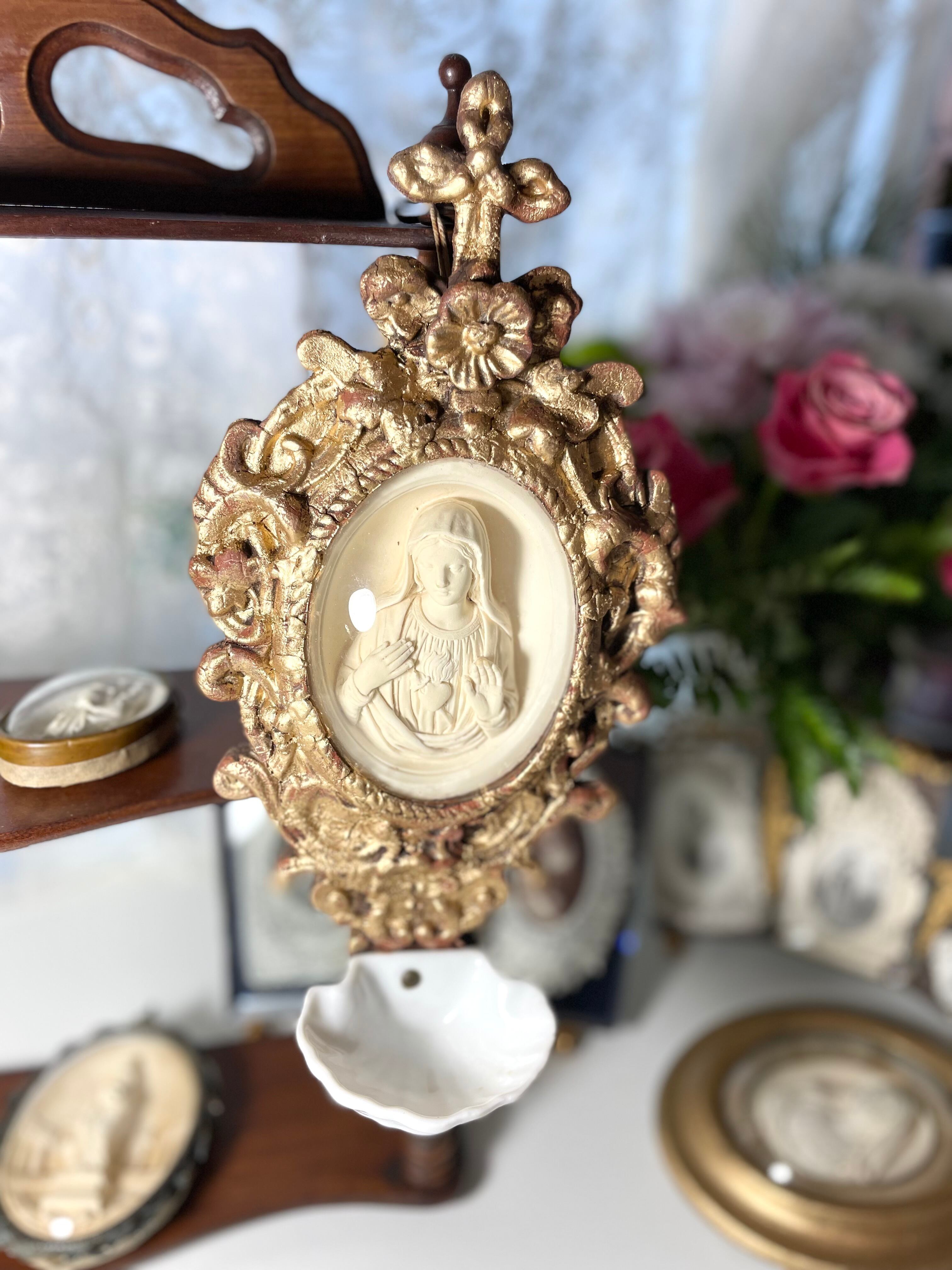 ref: 2349 アンティーク・聖母マリア・石膏ドームメダイヨンの聖水盤・19世紀