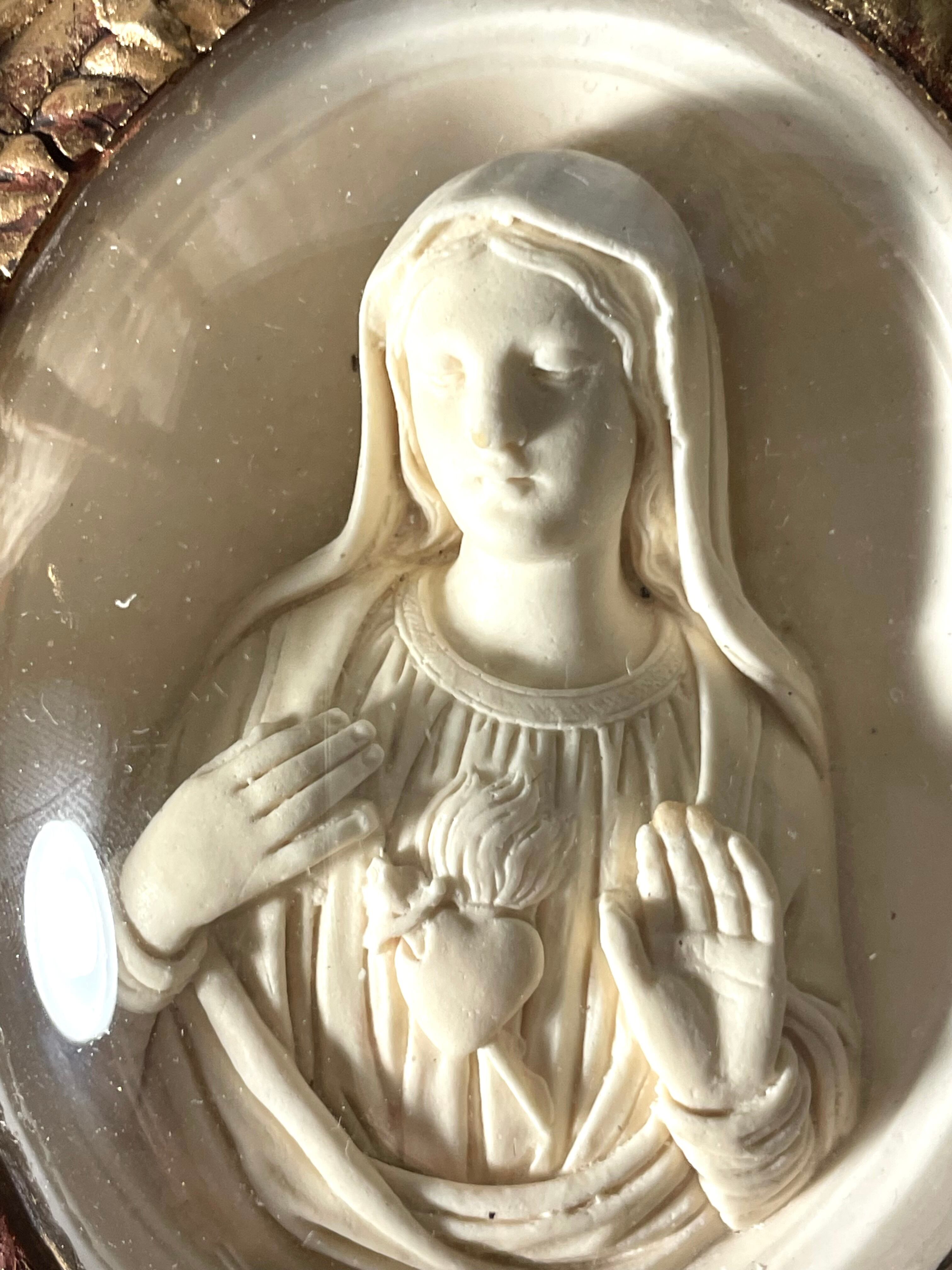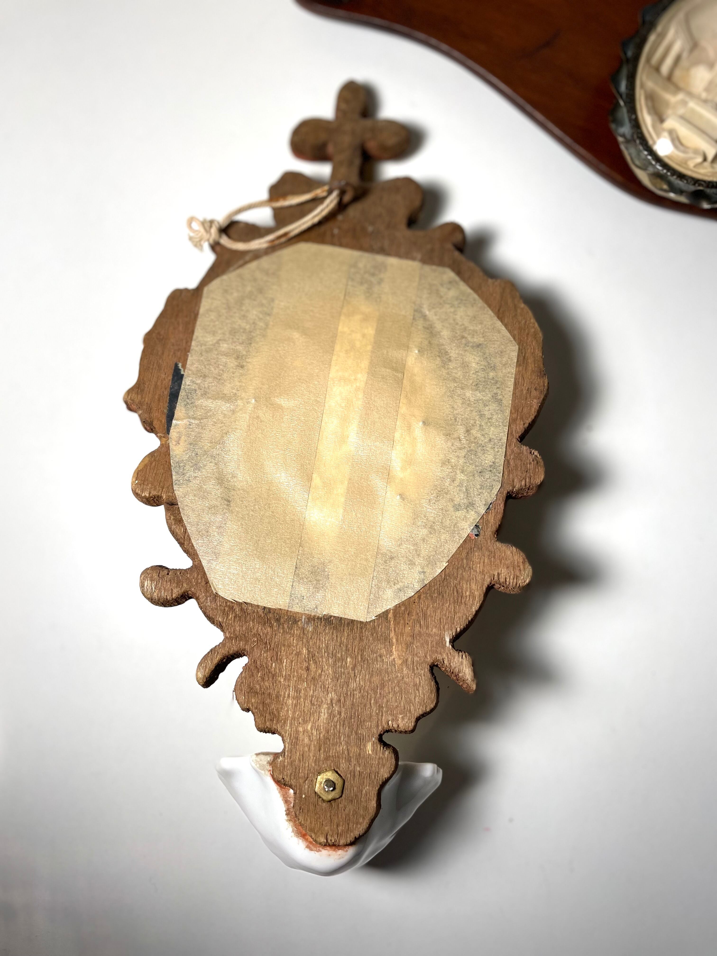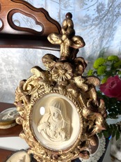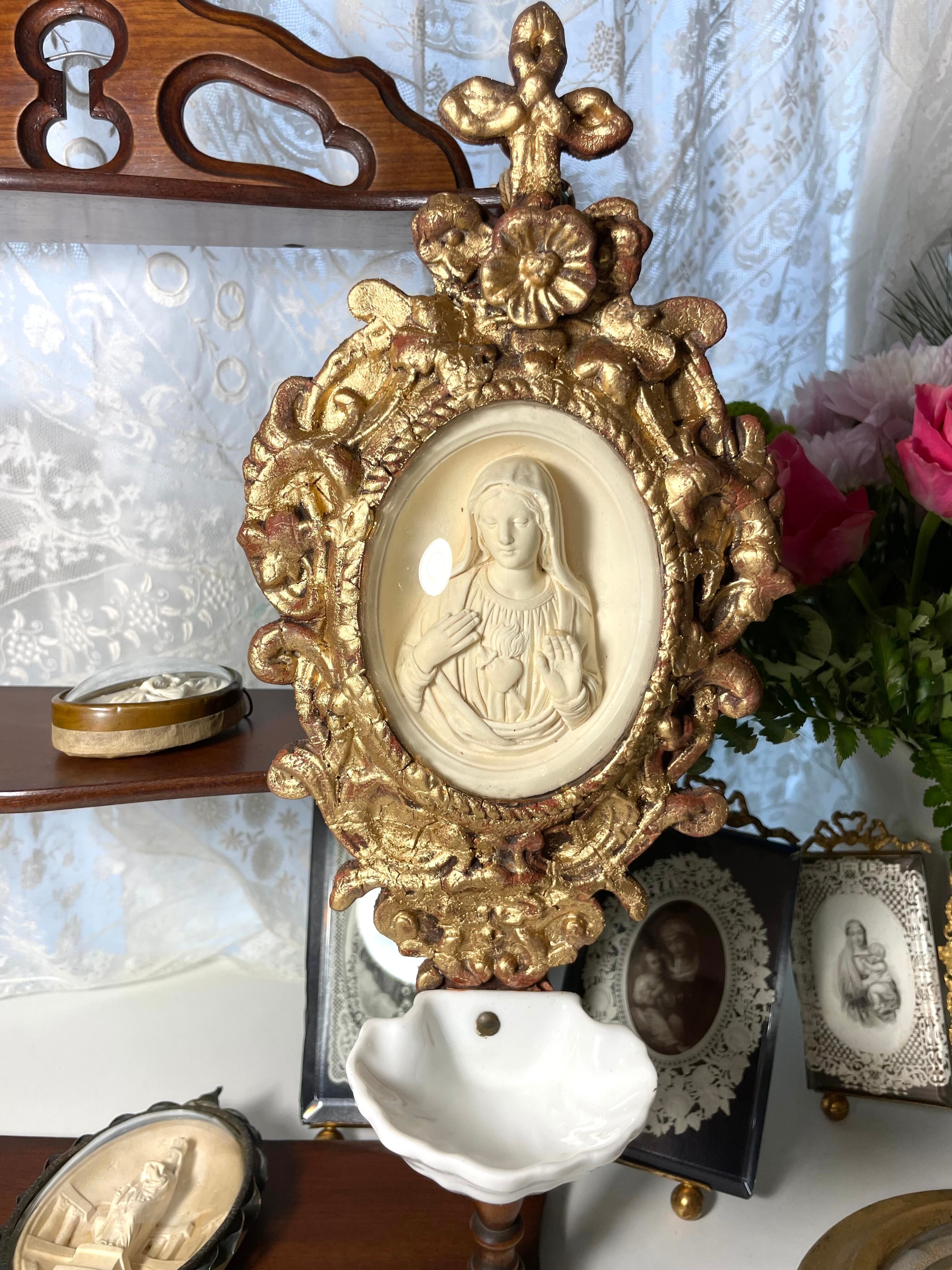 ref: 2349 アンティーク・聖母マリア・石膏ドームメダイヨンの聖水盤・19世紀