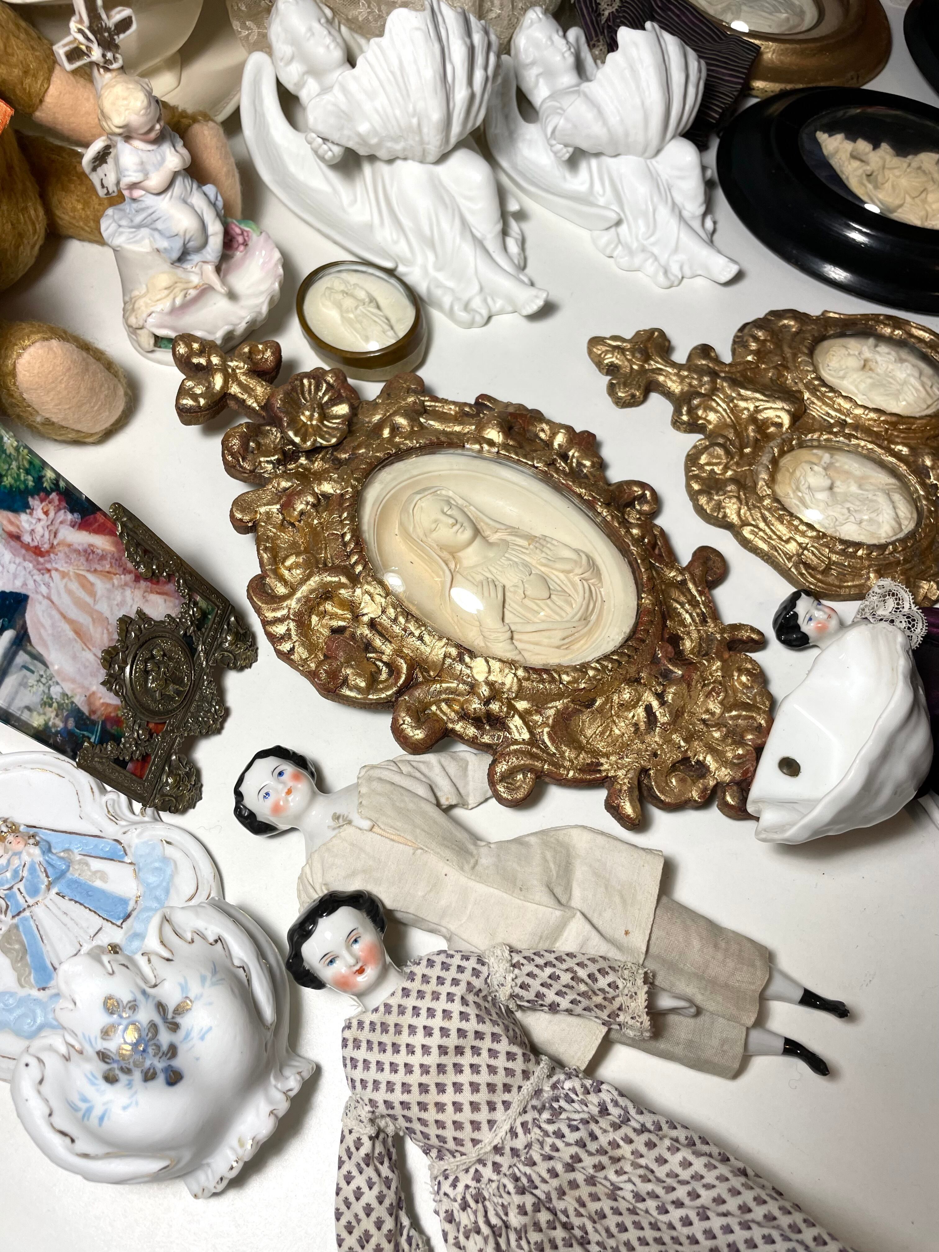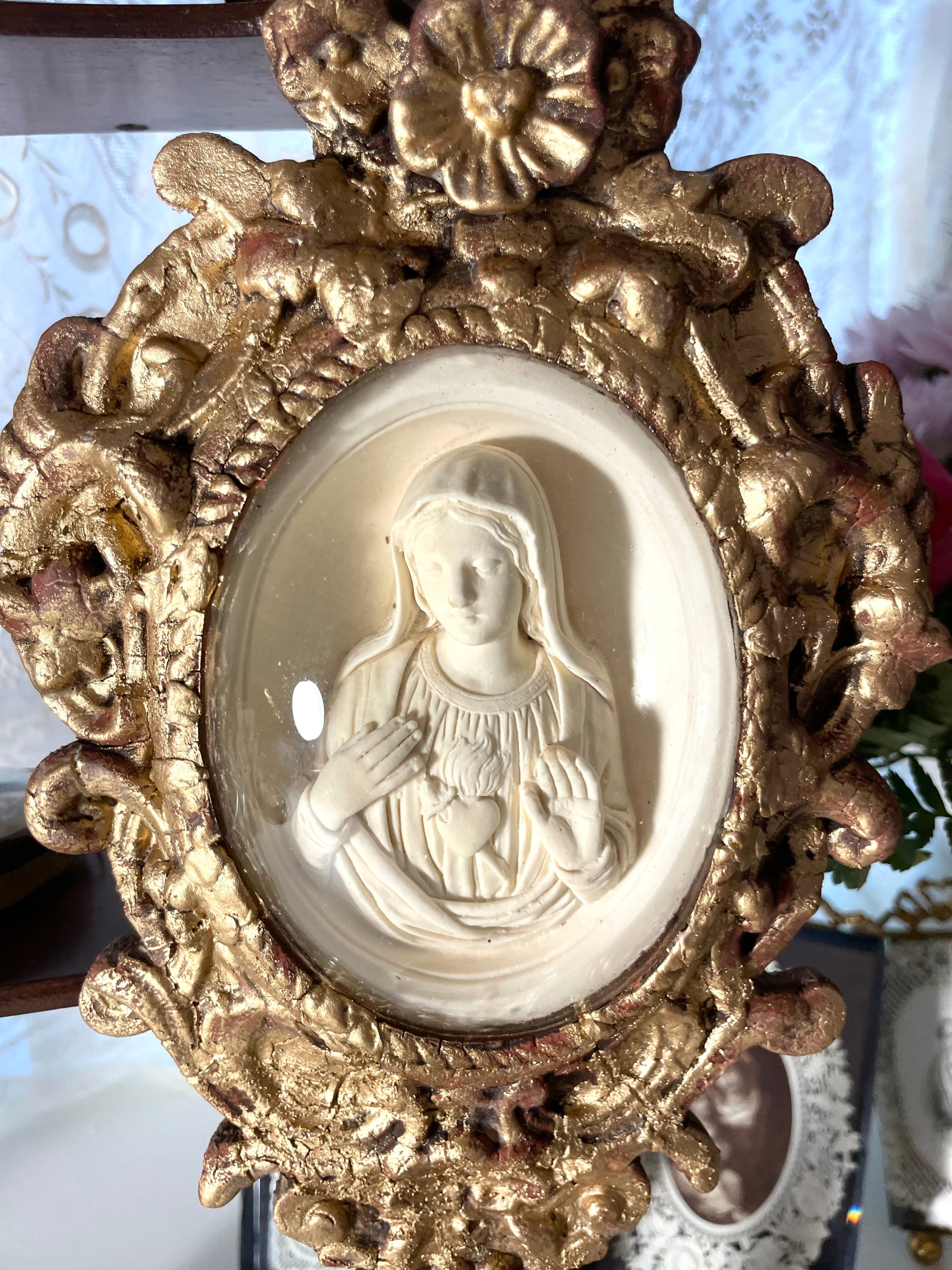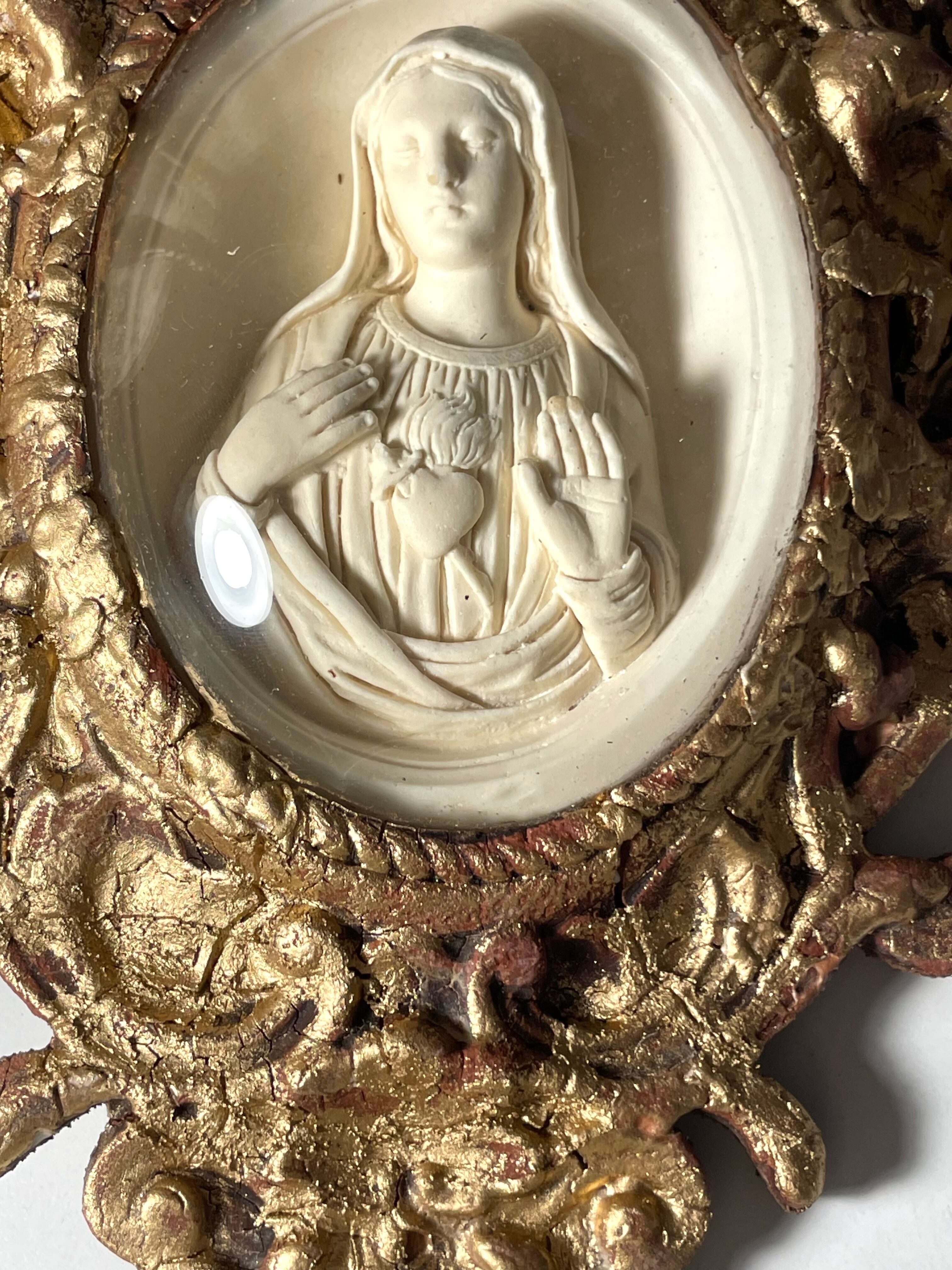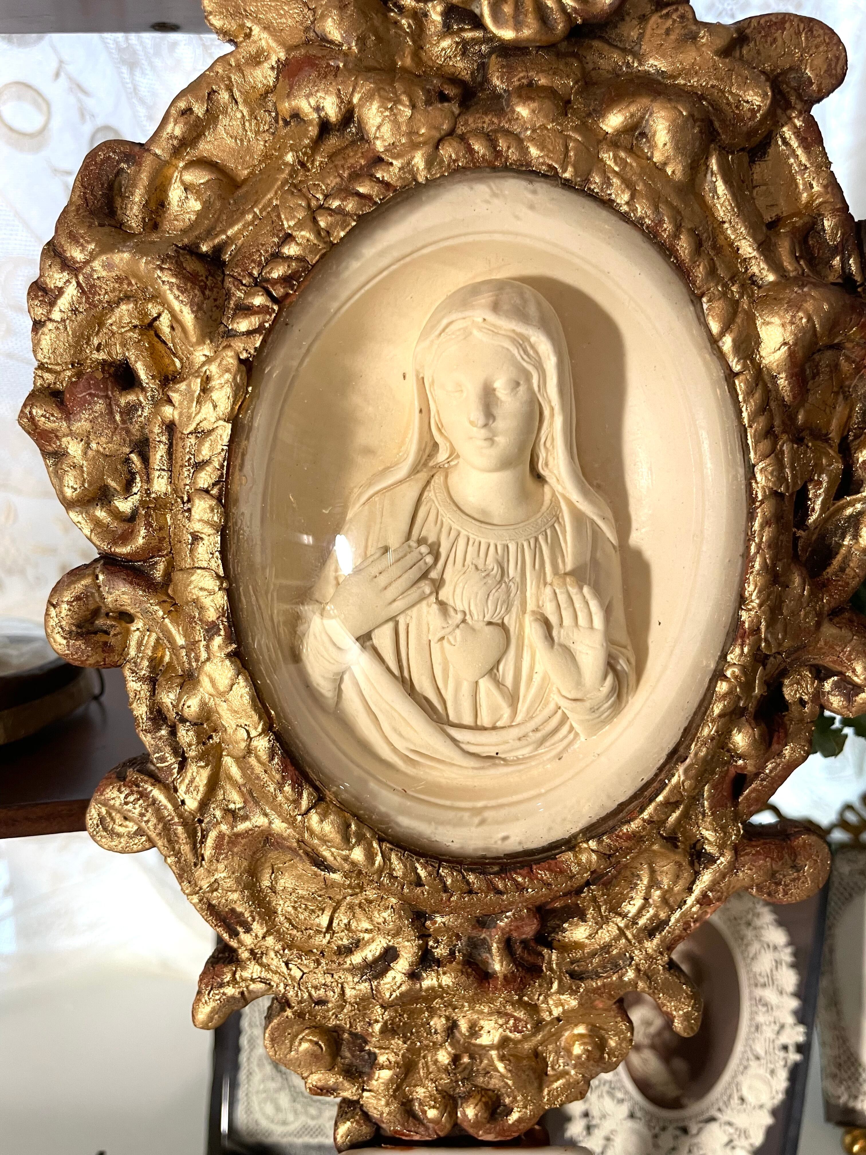 ref: 2349 アンティーク・聖母マリア・石膏ドームメダイヨンの聖水盤・19世紀