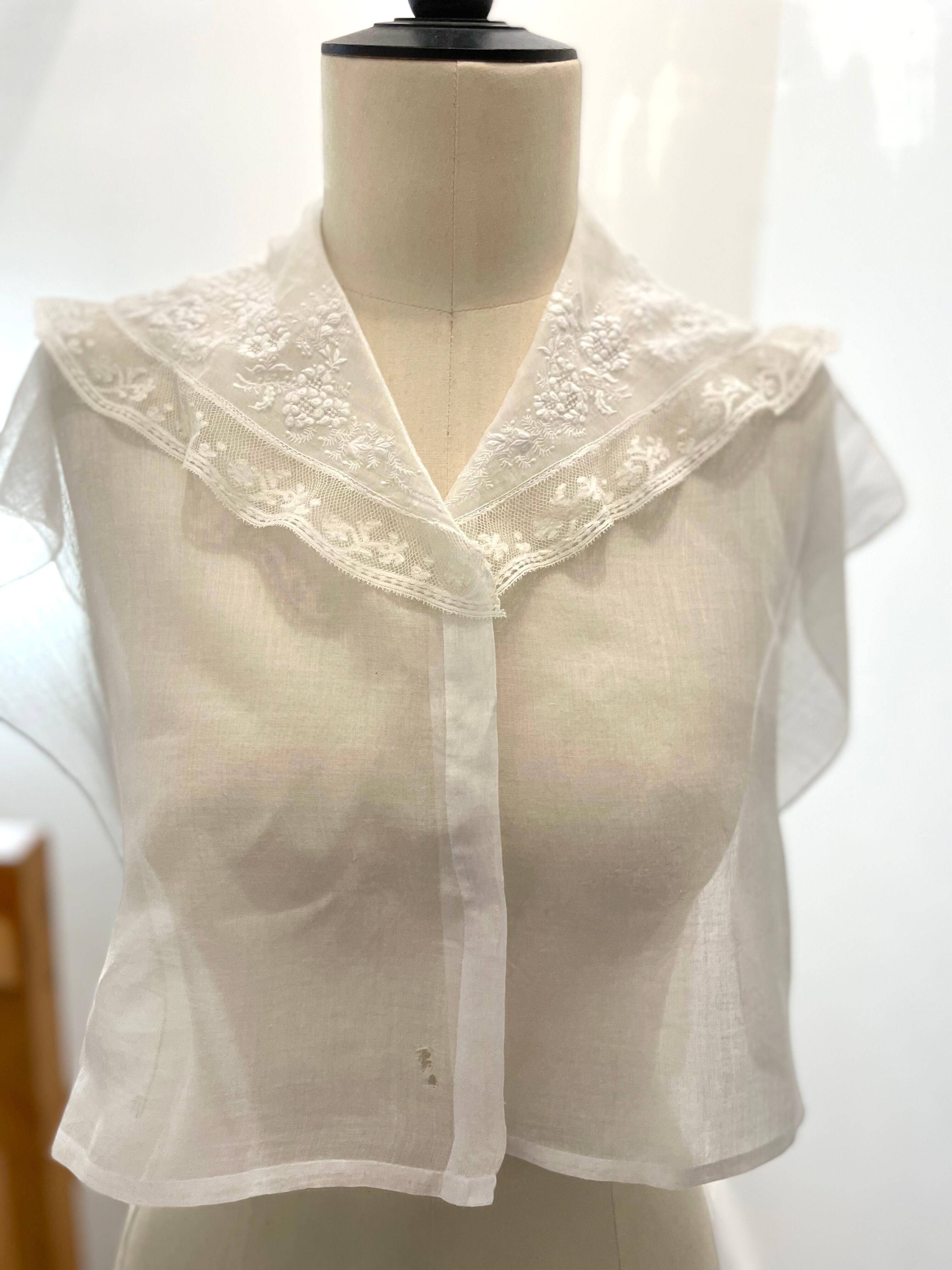 大きめの襟元の刺繍レースの素晴らしい