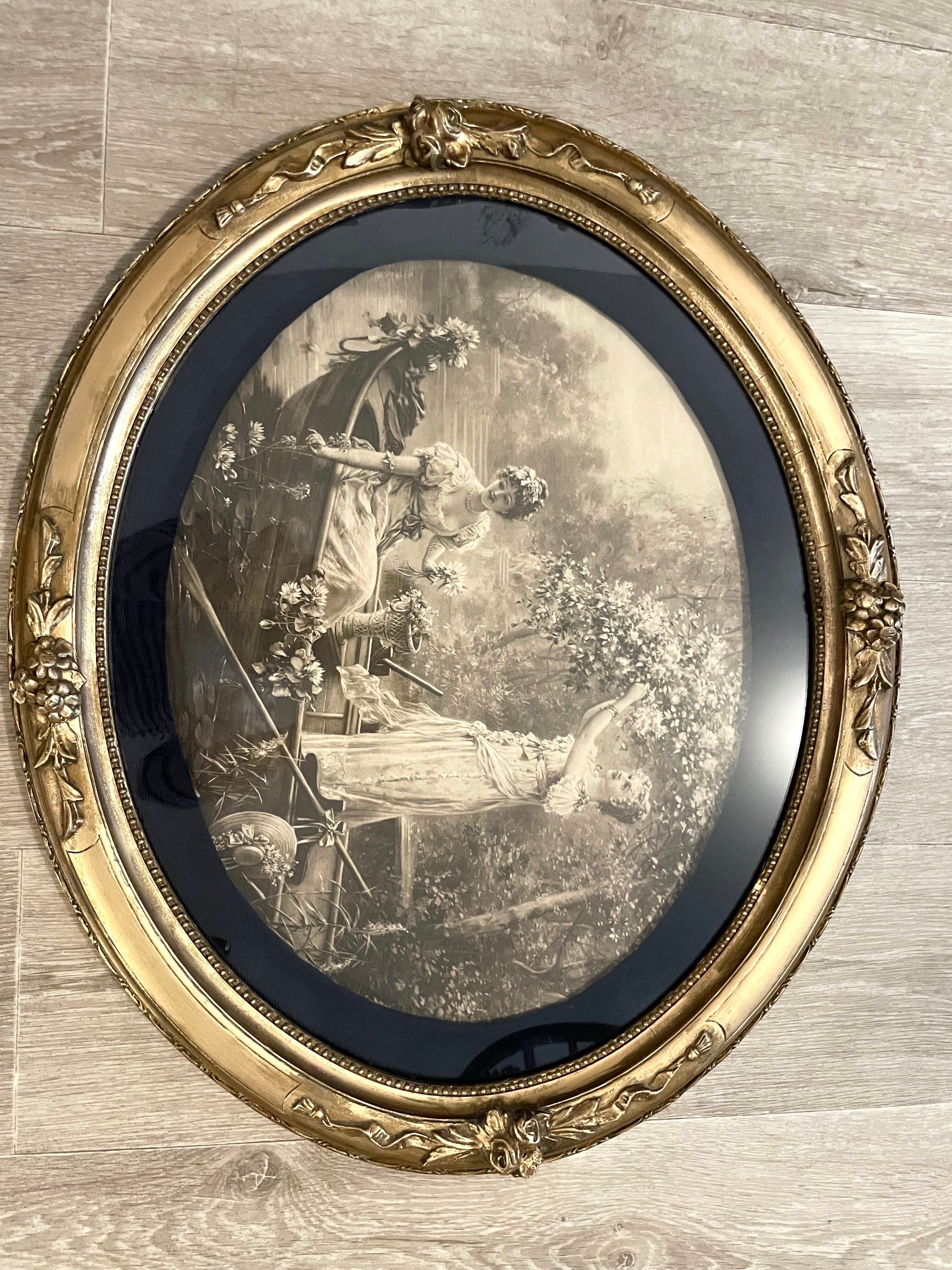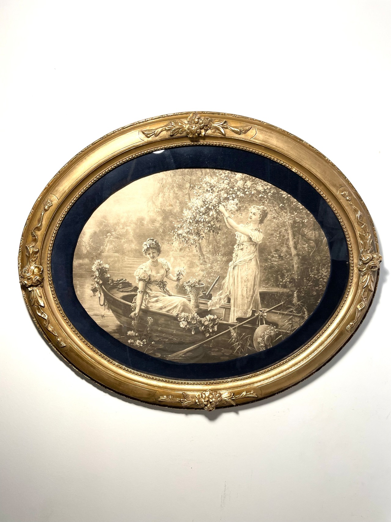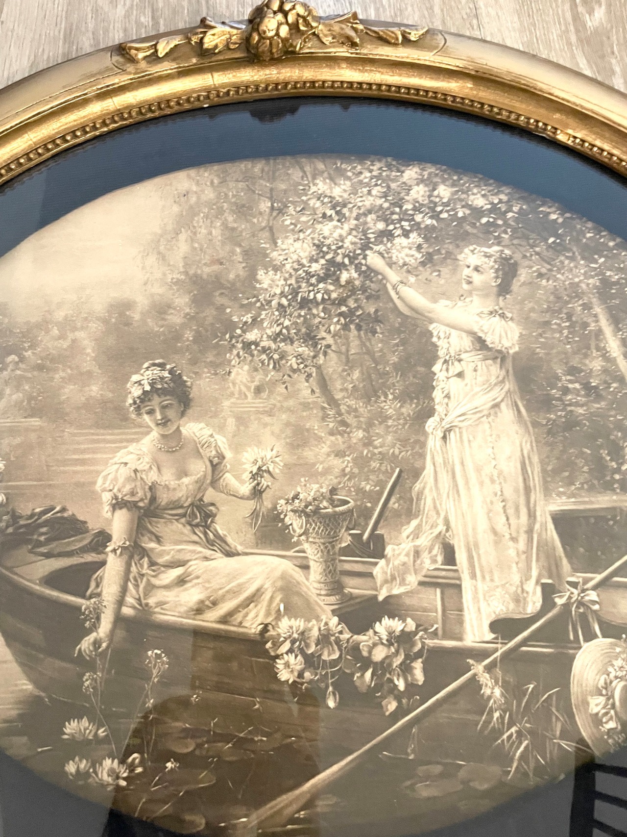 楕円形の構図と装飾的なフレームが相まって、空間を上品に演出してくれます。