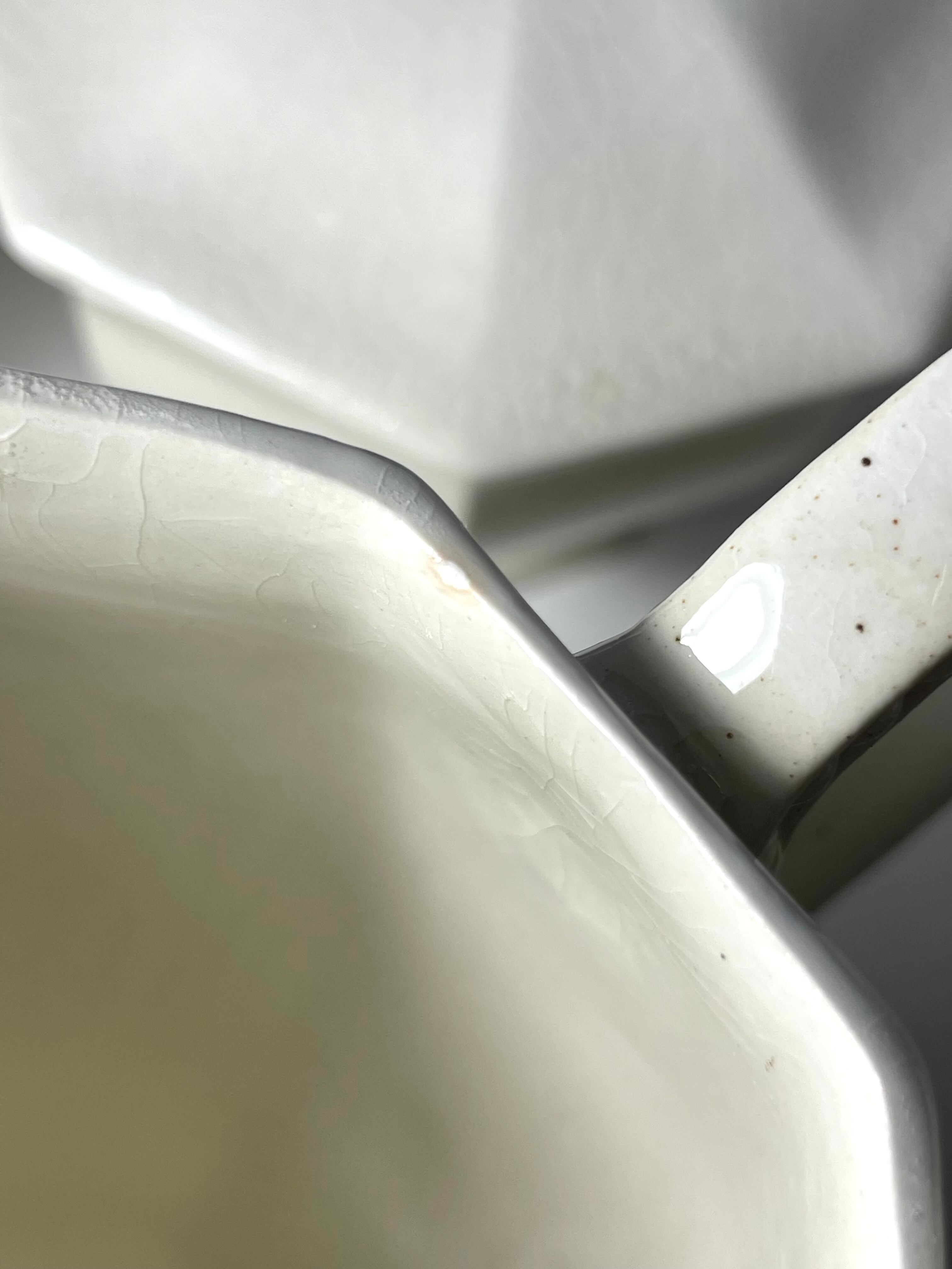 注ぎ口の下側に製造時のものと思われる小さな欠けがありますが上から釉薬がかかっております。