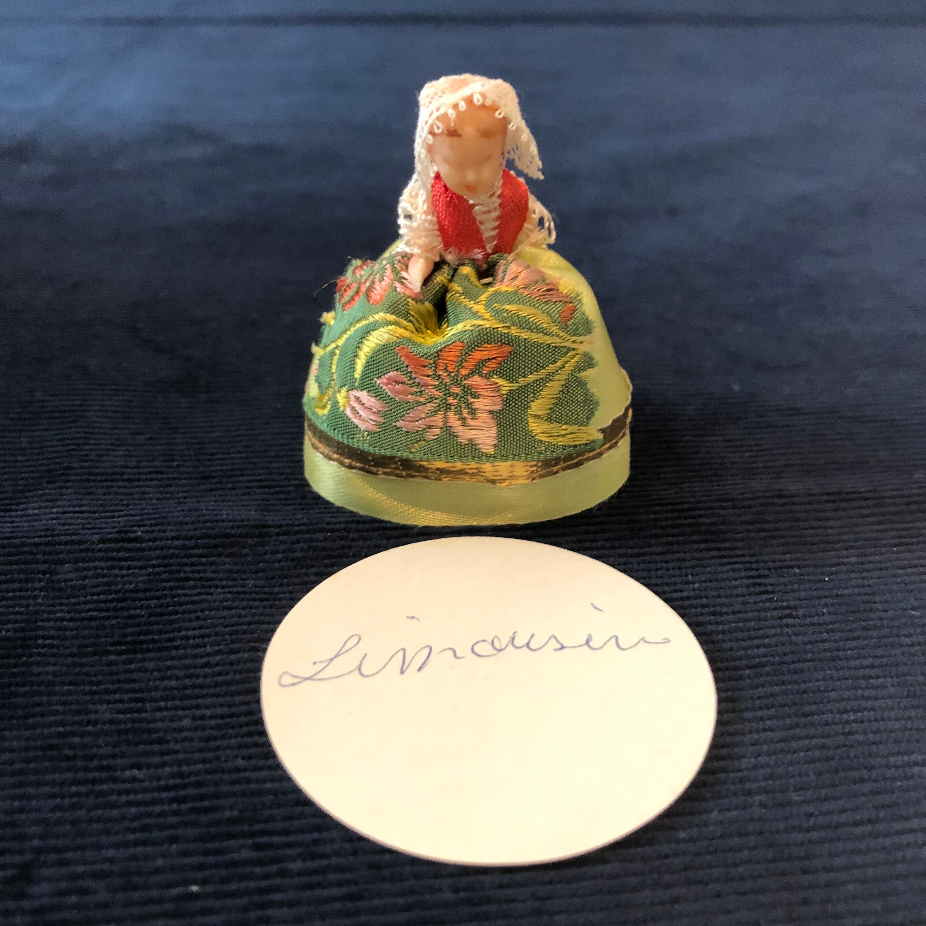 一つ一つにノルマンディー、チェコスロバキア、アルザス、バスク等地名が入っています。ケース付きですが、いくつかヒビや欠けが有ります。お店で売っていただいても、コレクションしていただいても良いのではないかと思います。衣装の素敵なミニチュアドールです!