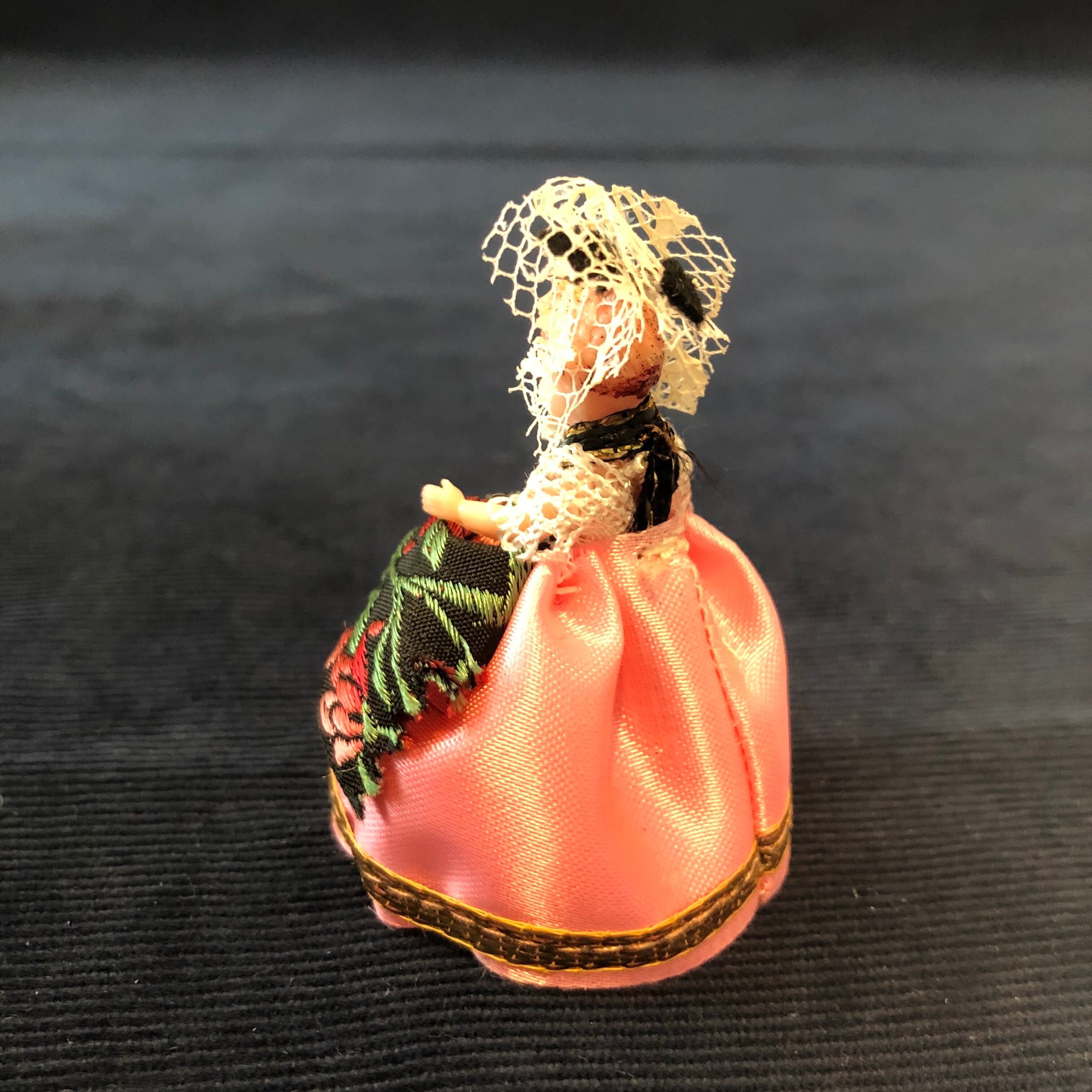 一つ一つにノルマンディー、チェコスロバキア、アルザス、バスク等地名が入っています。ケース付きですが、いくつかヒビや欠けが有ります。お店で売っていただいても、コレクションしていただいても良いのではないかと思います。衣装の素敵なミニチュアドールです!