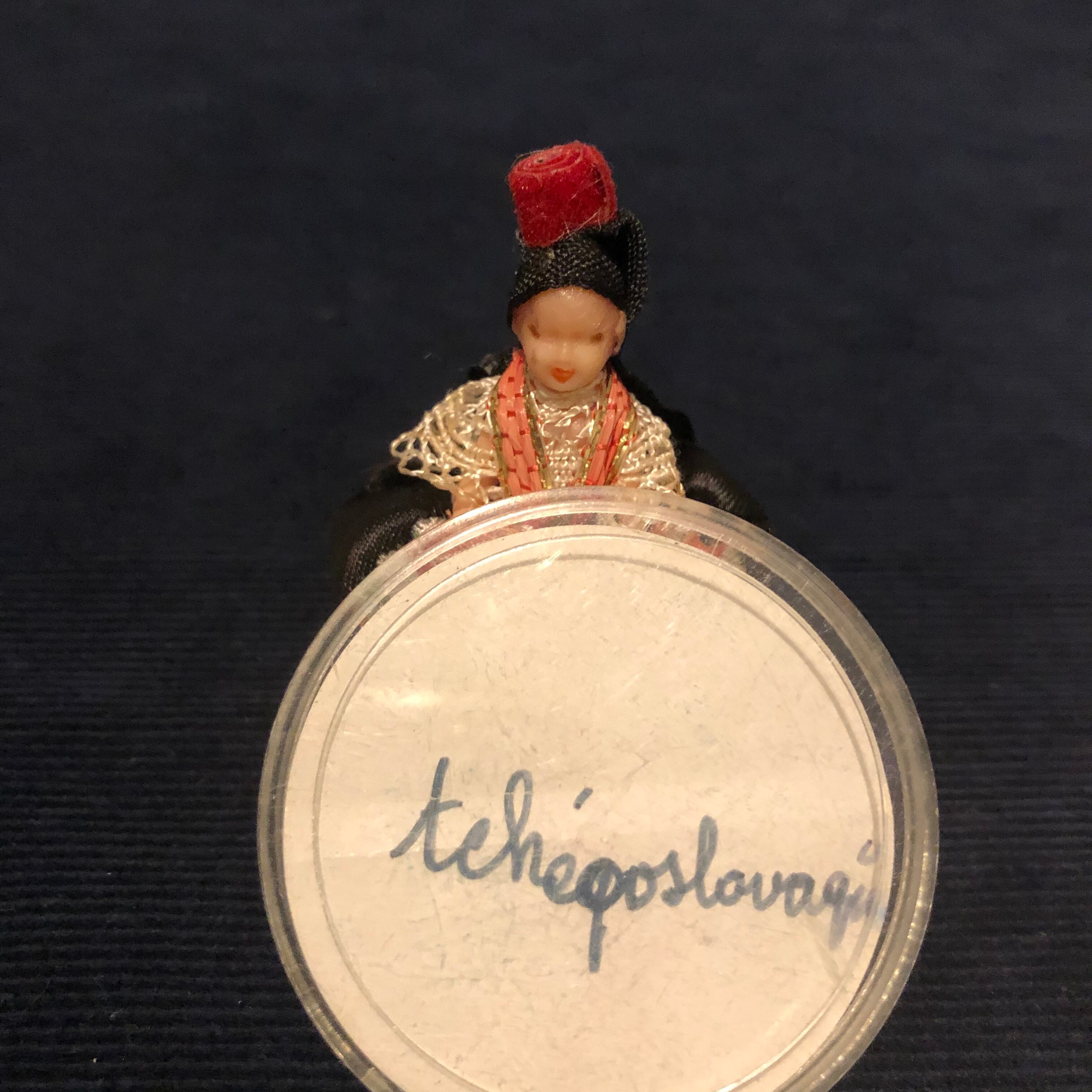 一つ一つにノルマンディー、チェコスロバキア、アルザス、バスク等地名が入っています。ケース付きですが、いくつかヒビや欠けが有ります。お店で売っていただいても、コレクションしていただいても良いのではないかと思います。衣装の素敵なミニチュアドールです!